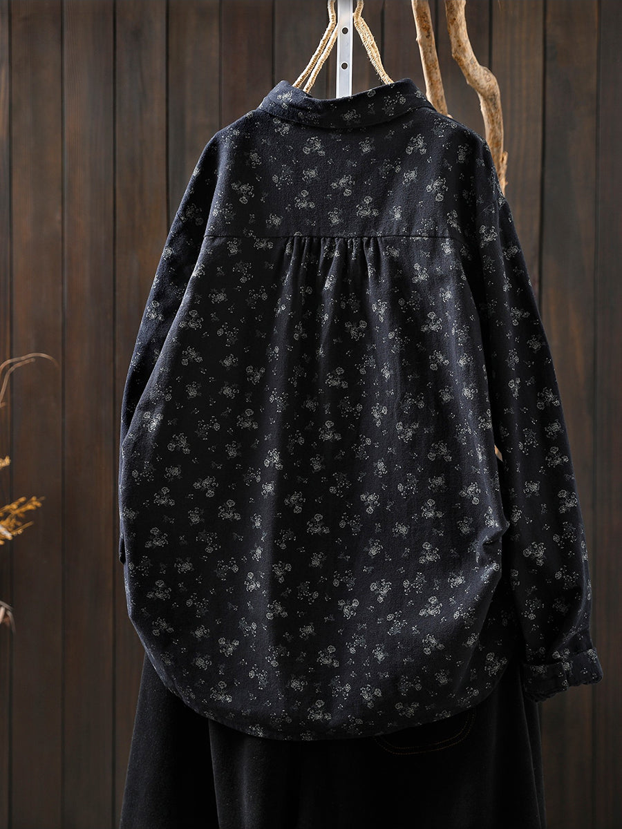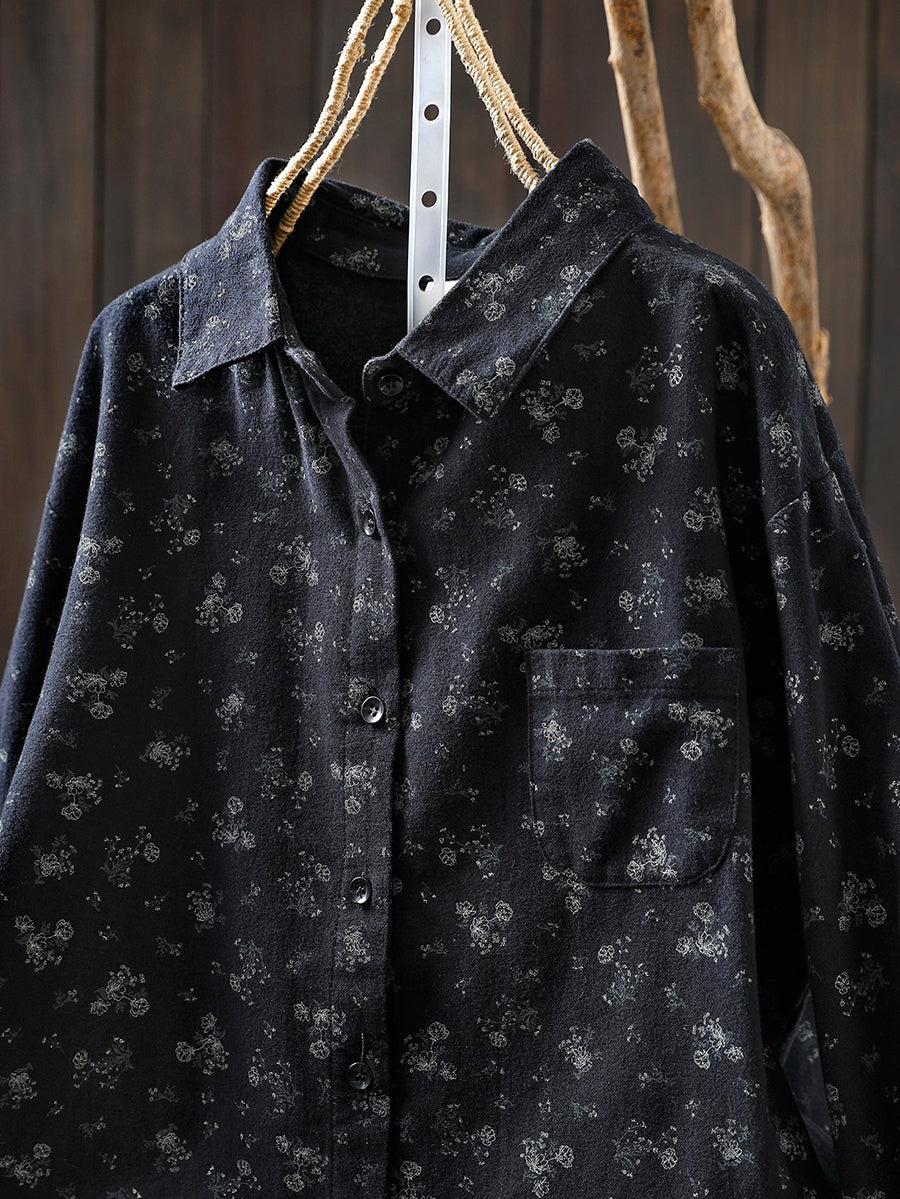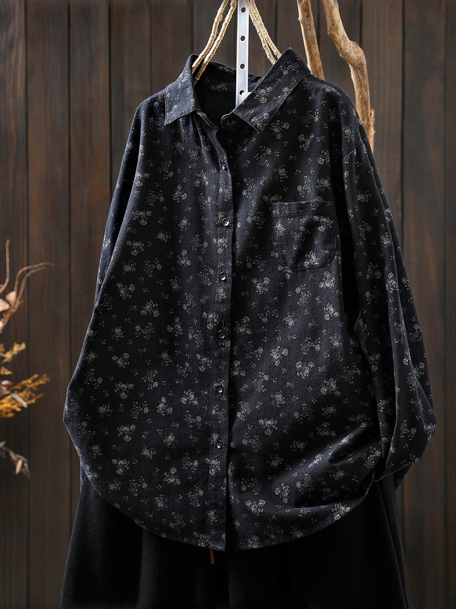 レディース アーティスティック 秋 花柄 ターンダウンカラー コットンブラウス