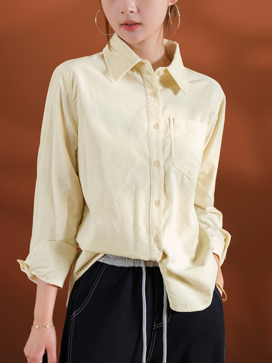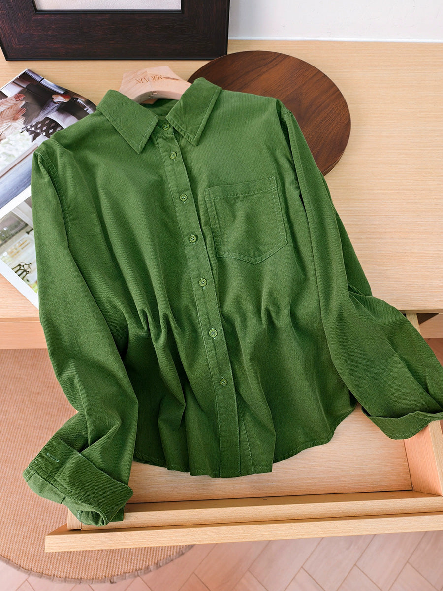 レディース アーティスティック 秋 ピュアカラー コーデュロイ ブラウス