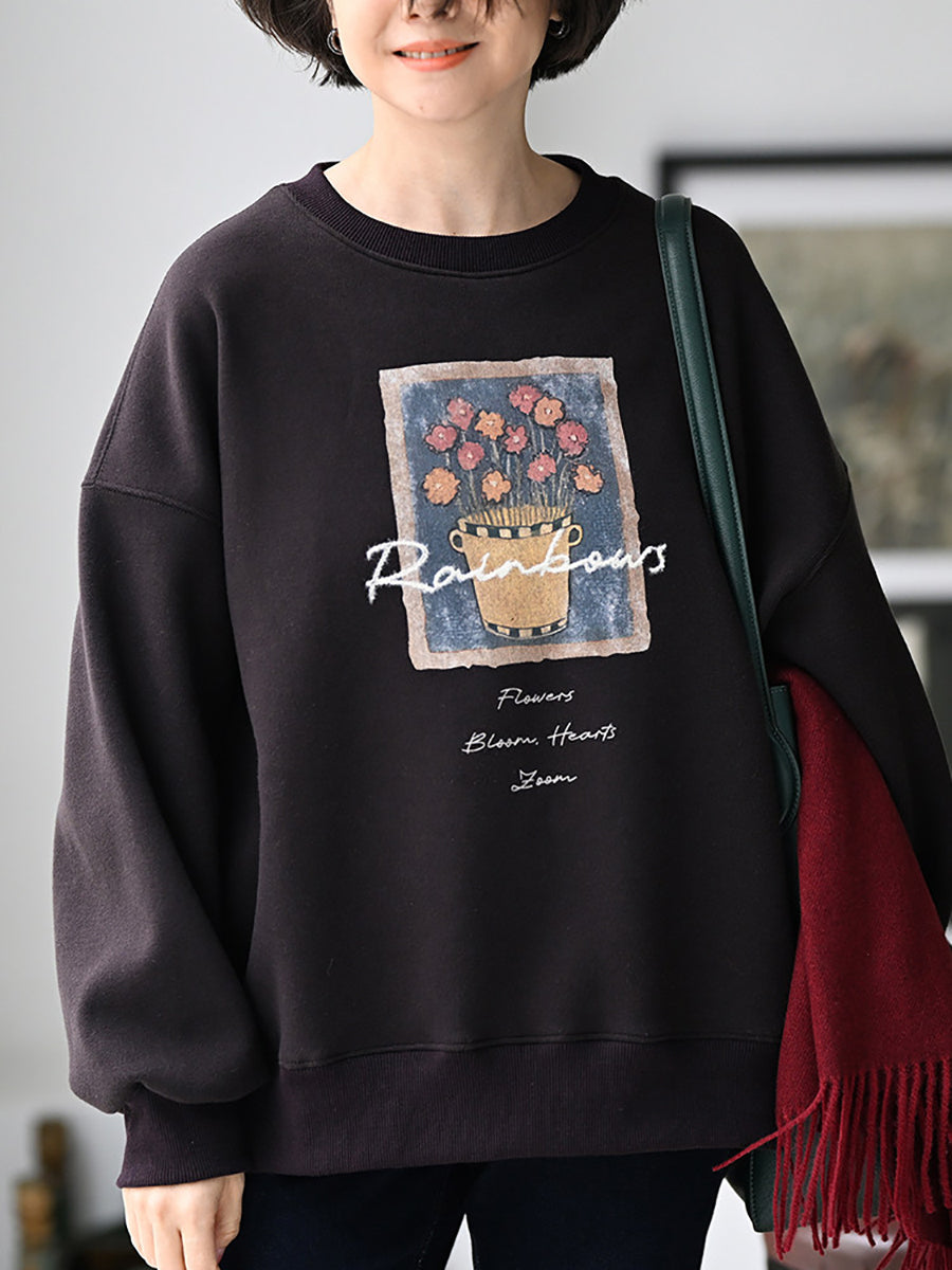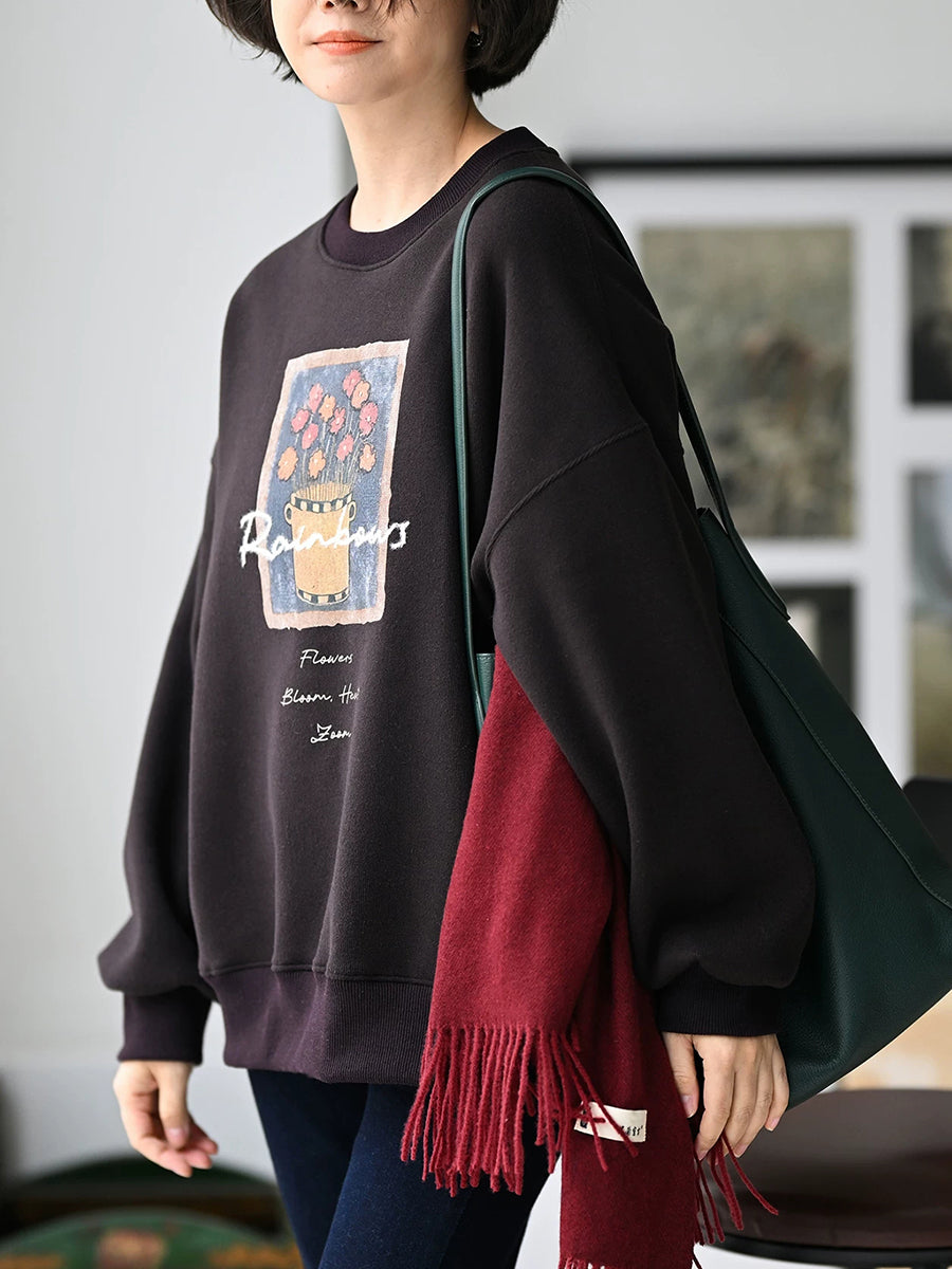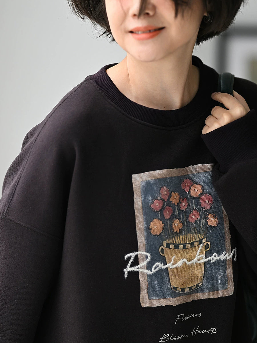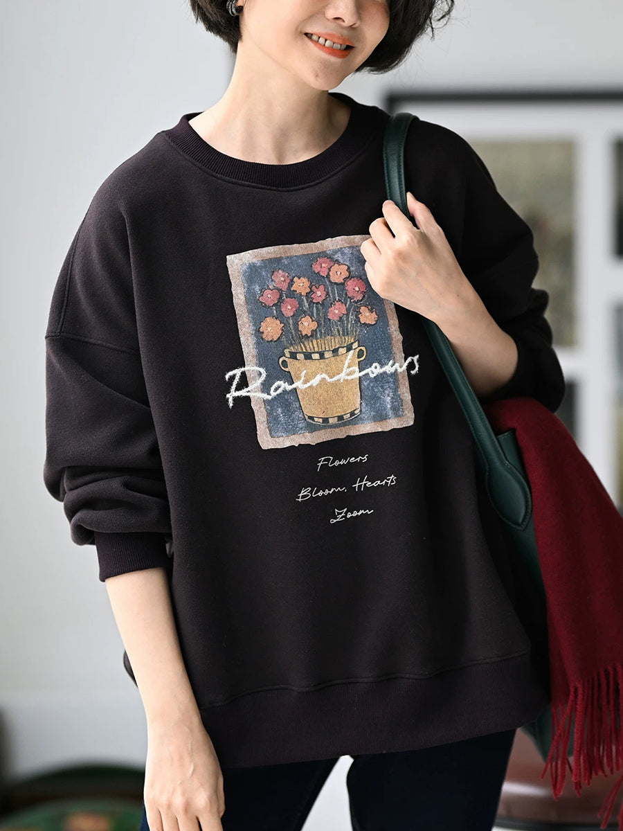 レディース アーティスティック スプリング プリント Oネック ブラウス