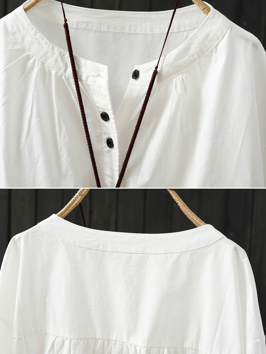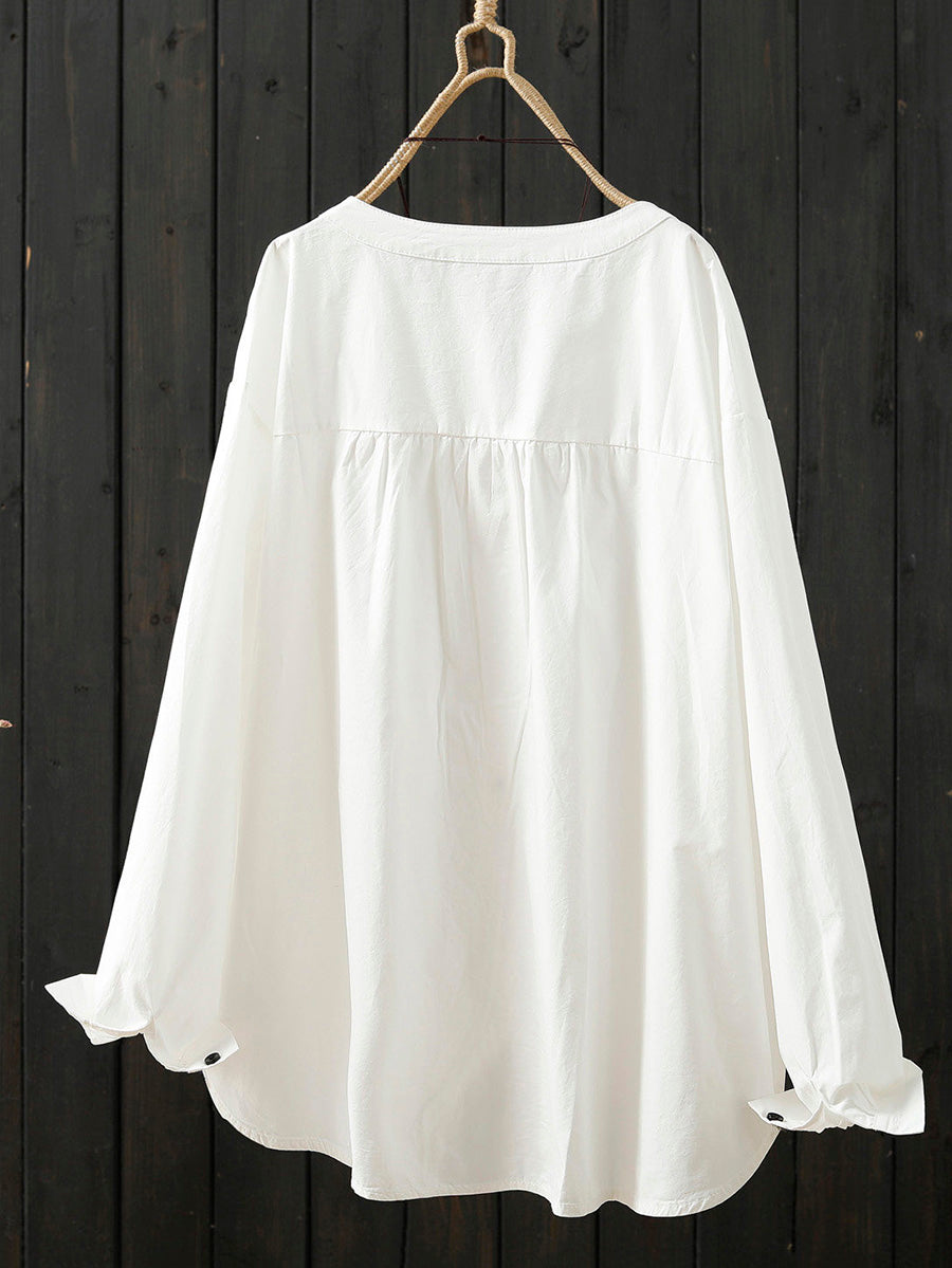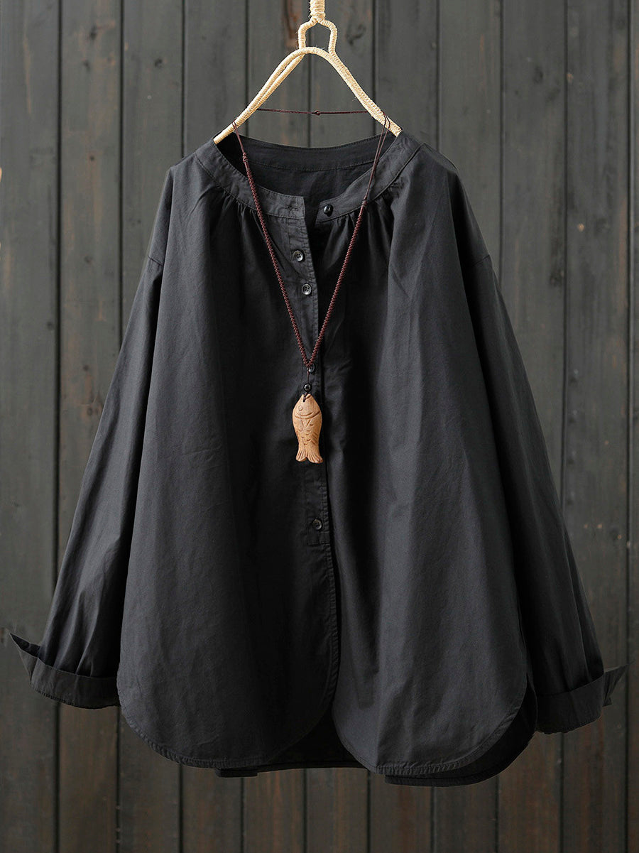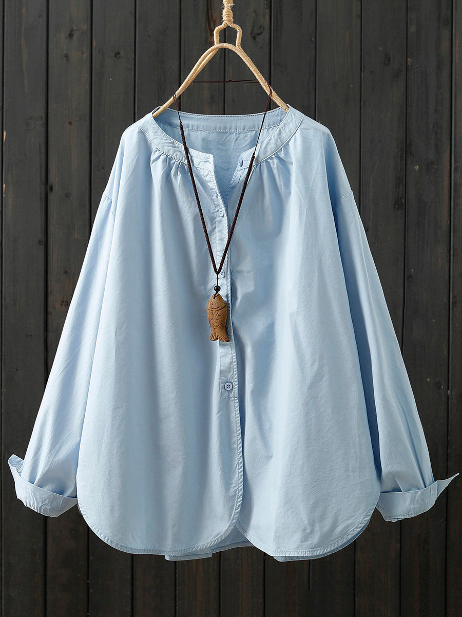 レディース アーティスティック スプリング ピュアカラー 100%コットンシャツ