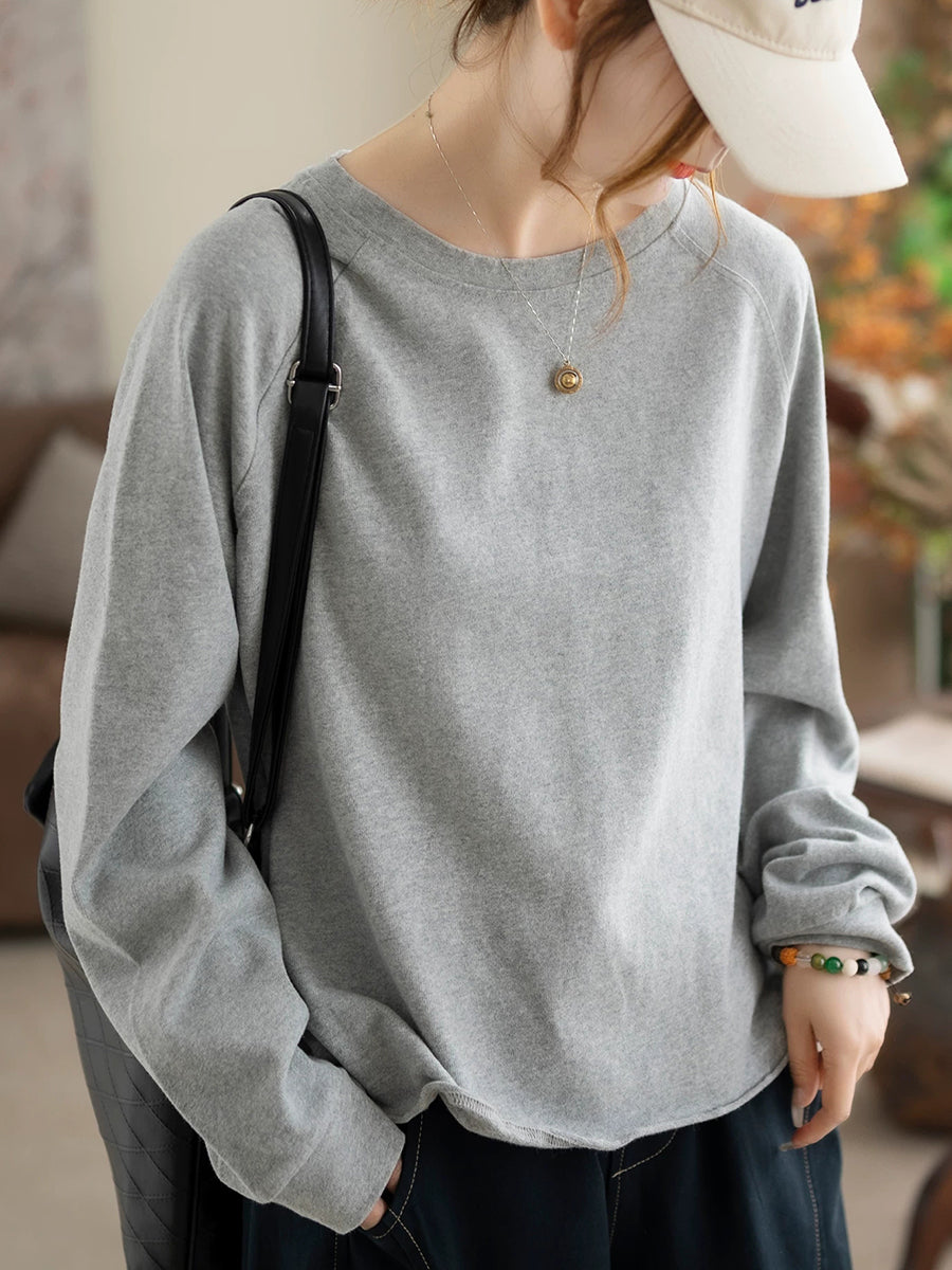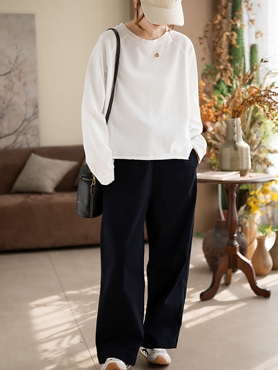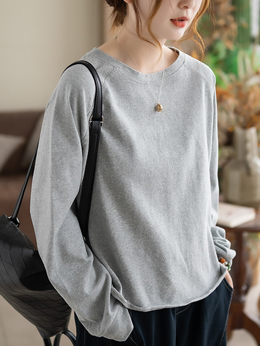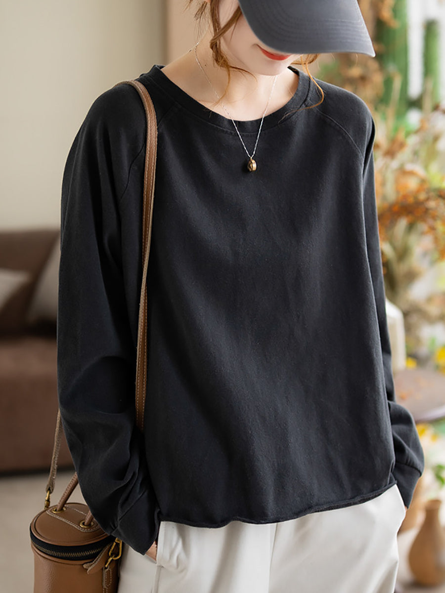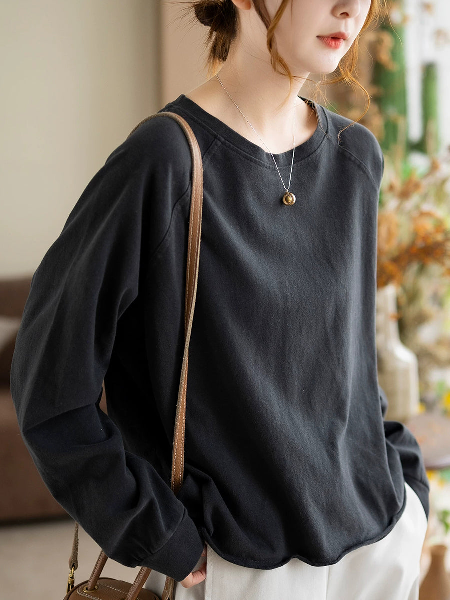 レディース アーティスティック スプリング ピュアカラー Oネック コットンブラウス