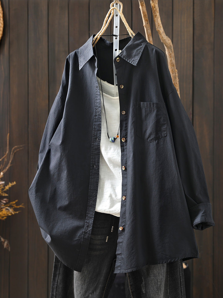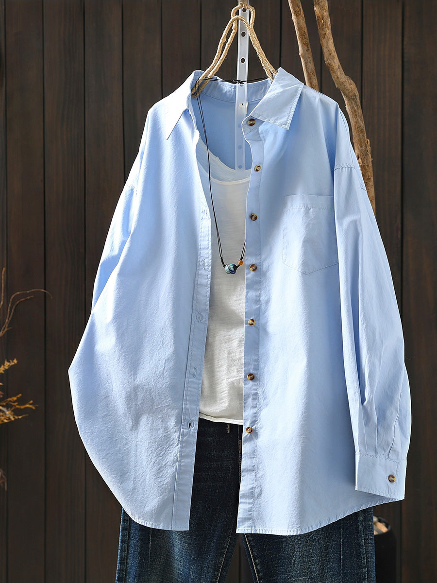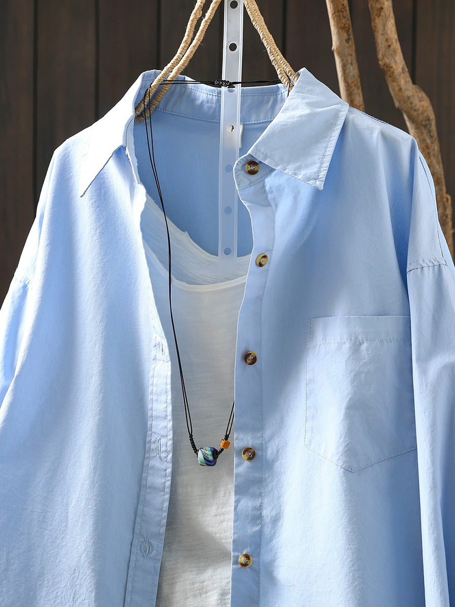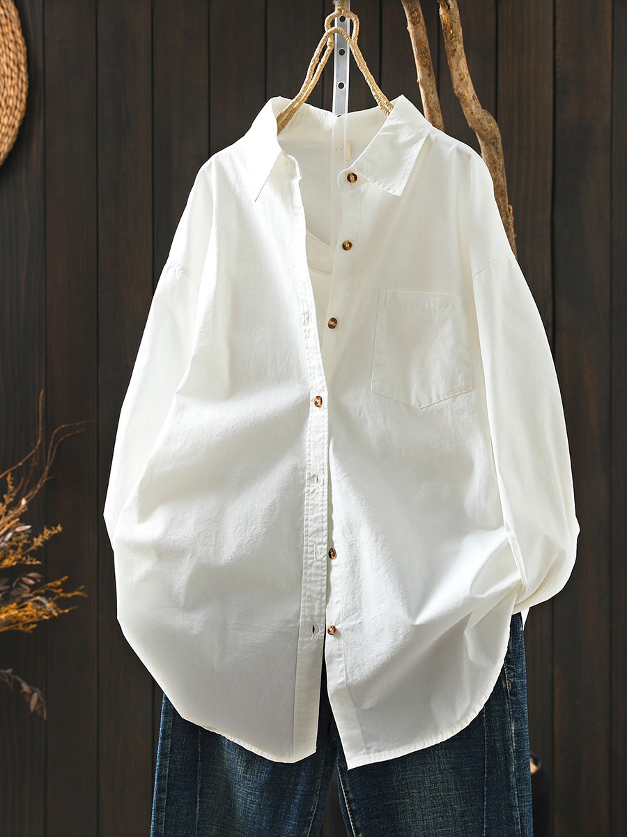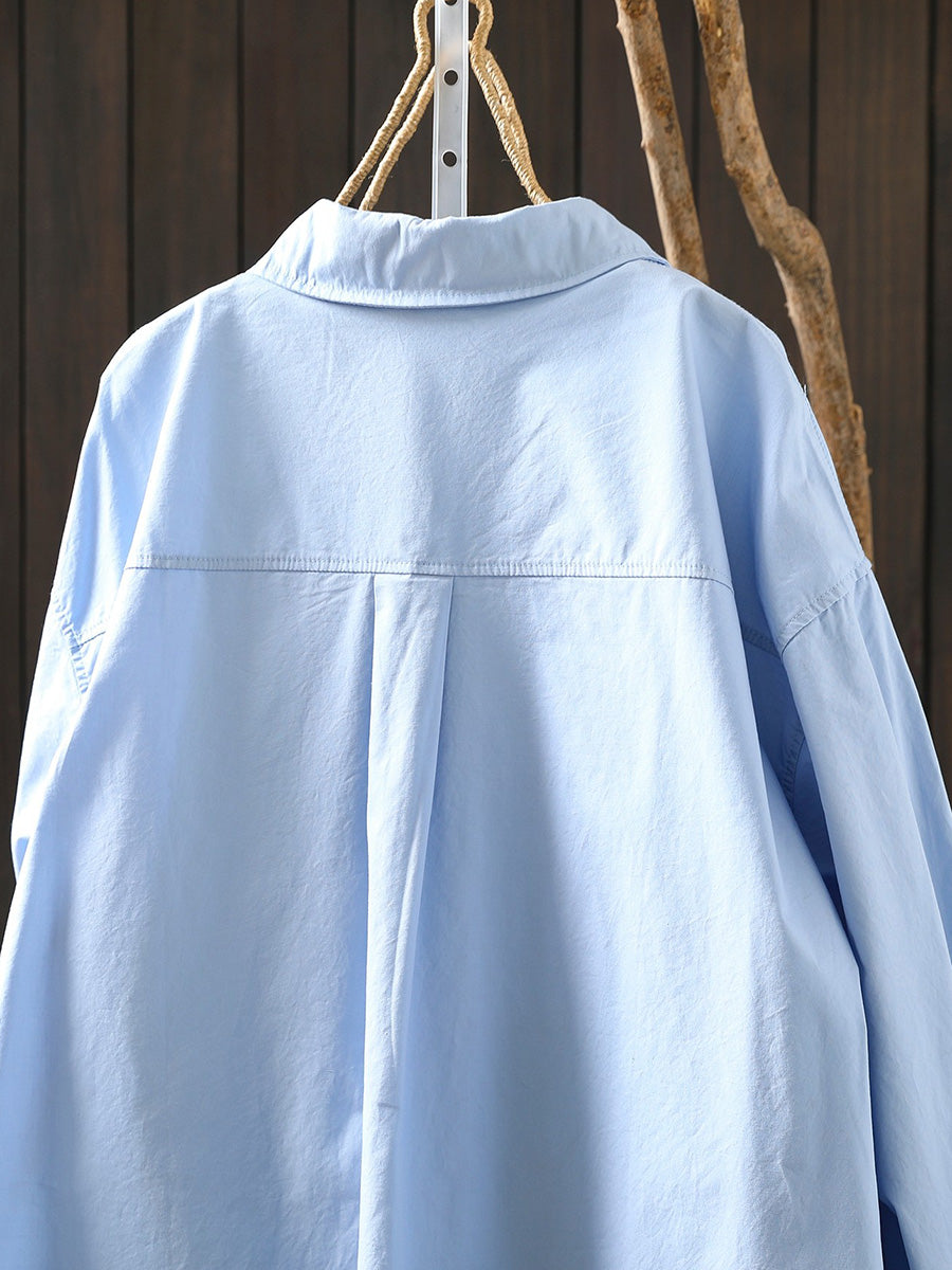 レディース アーティスティック スプリング ターンダウンカラー 100%コットンシャツ