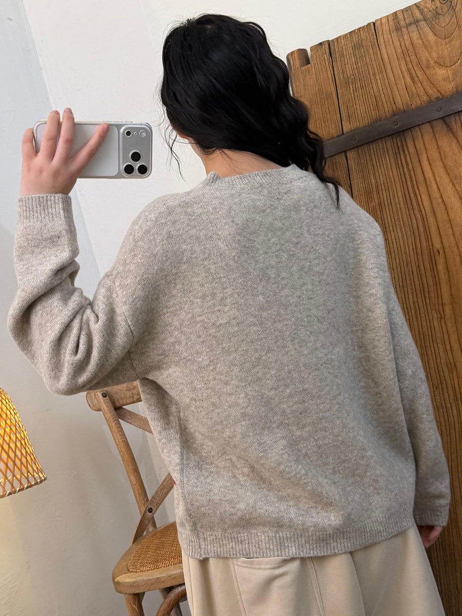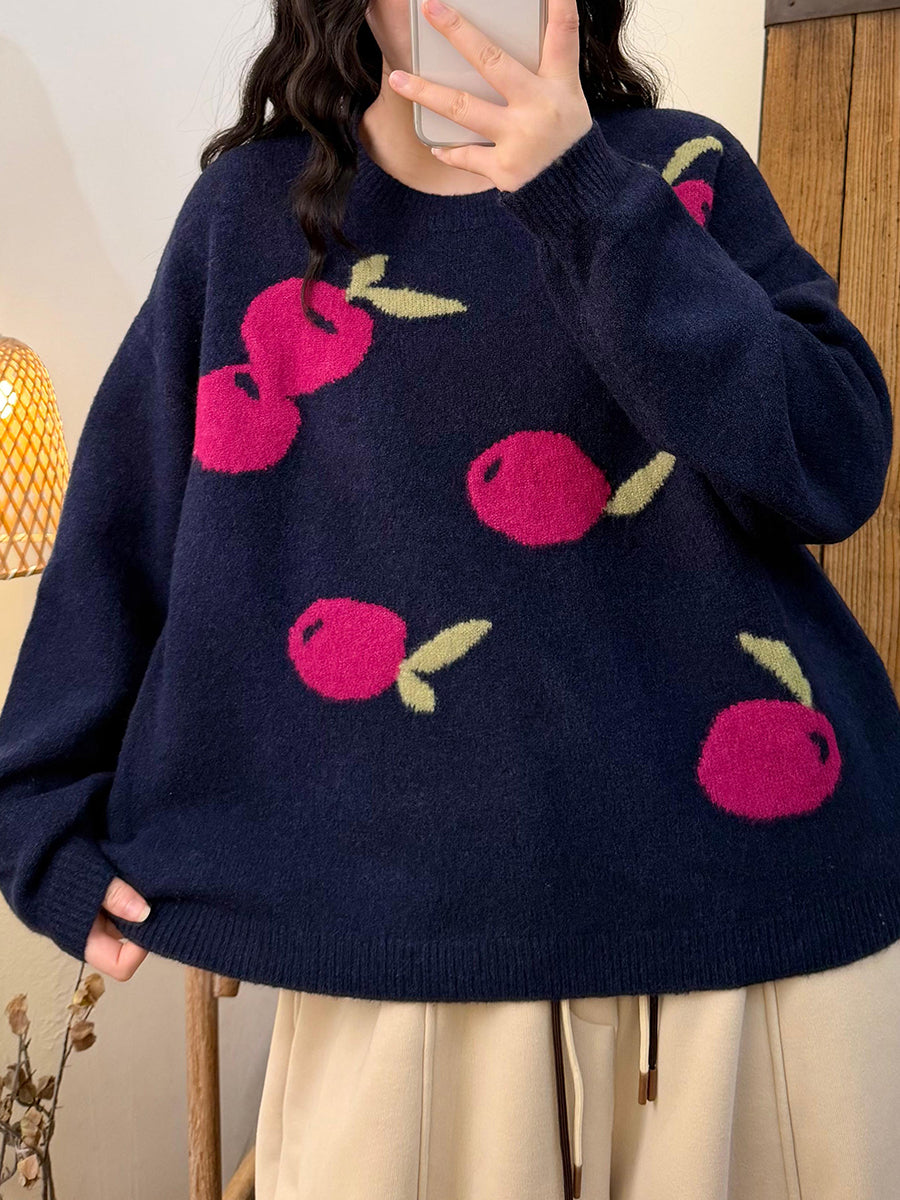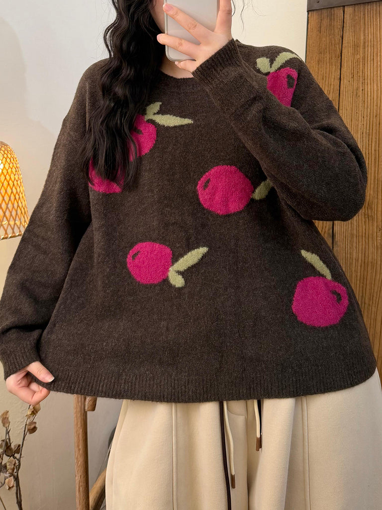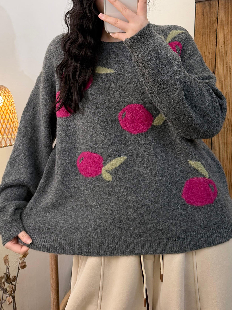 レディース 秋 アーティスティック アップル Oネック ニットセーター