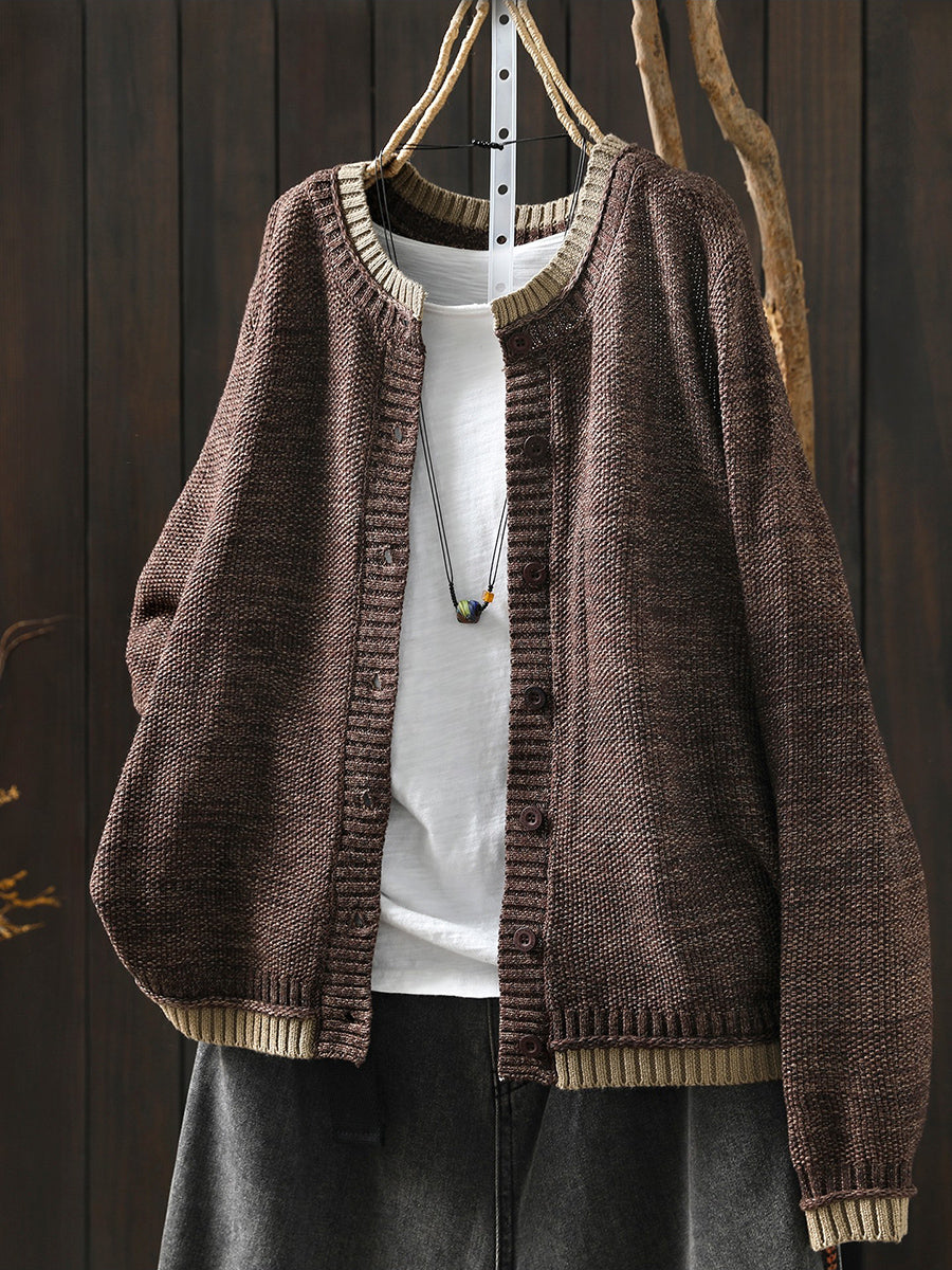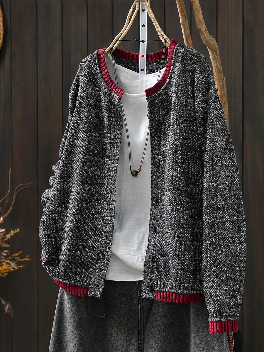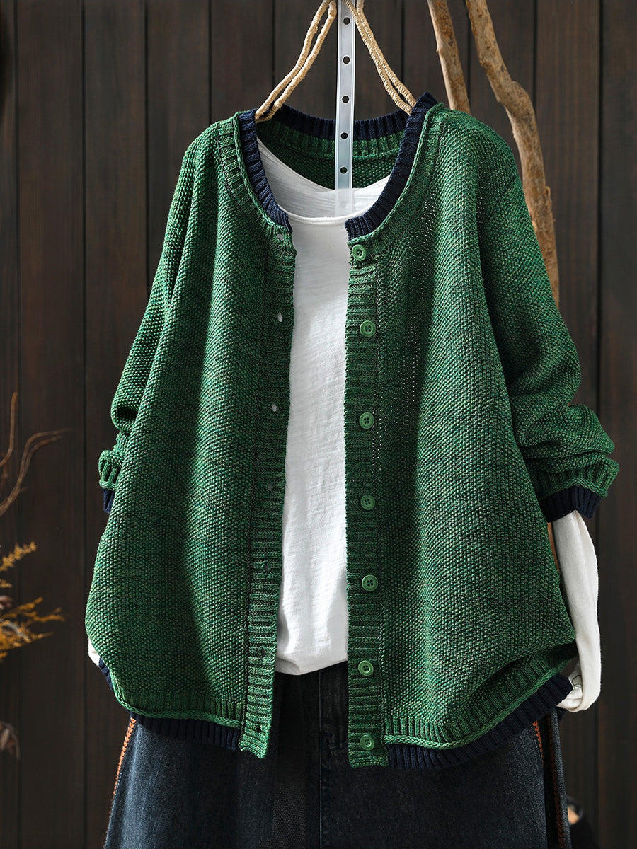 レディース 秋 アーティスティック カラーブロック ニット カーディガン セーター