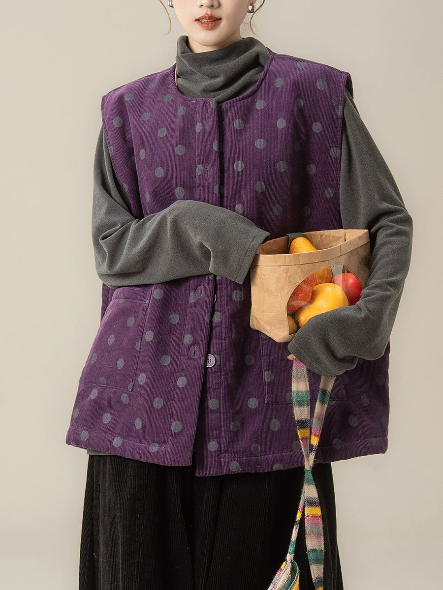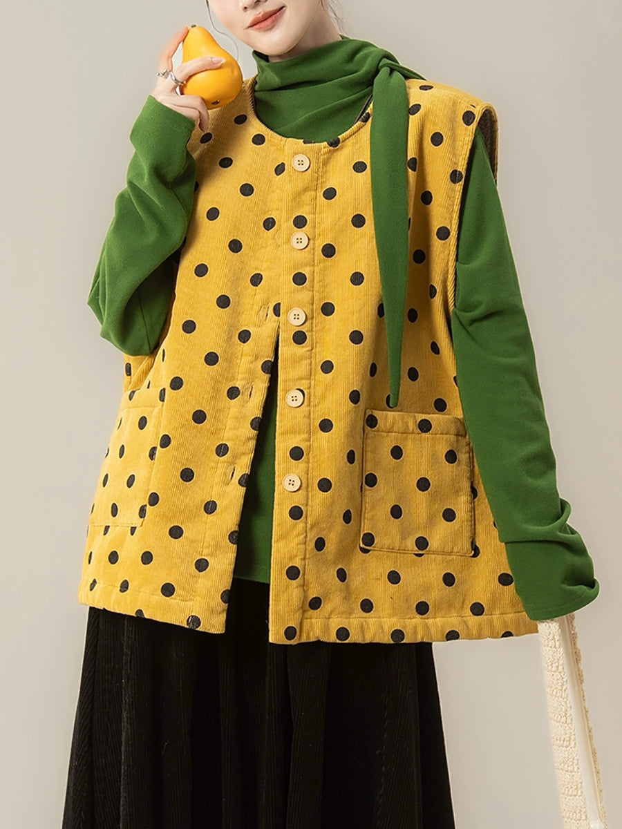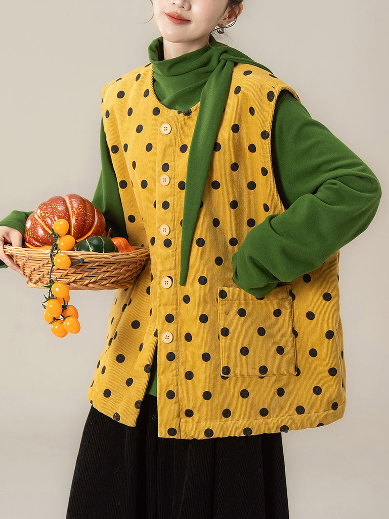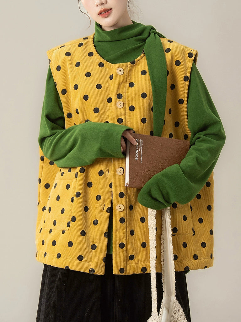 レディース 秋 アーティスティック ドット Oネック コーデュロイ ベスト