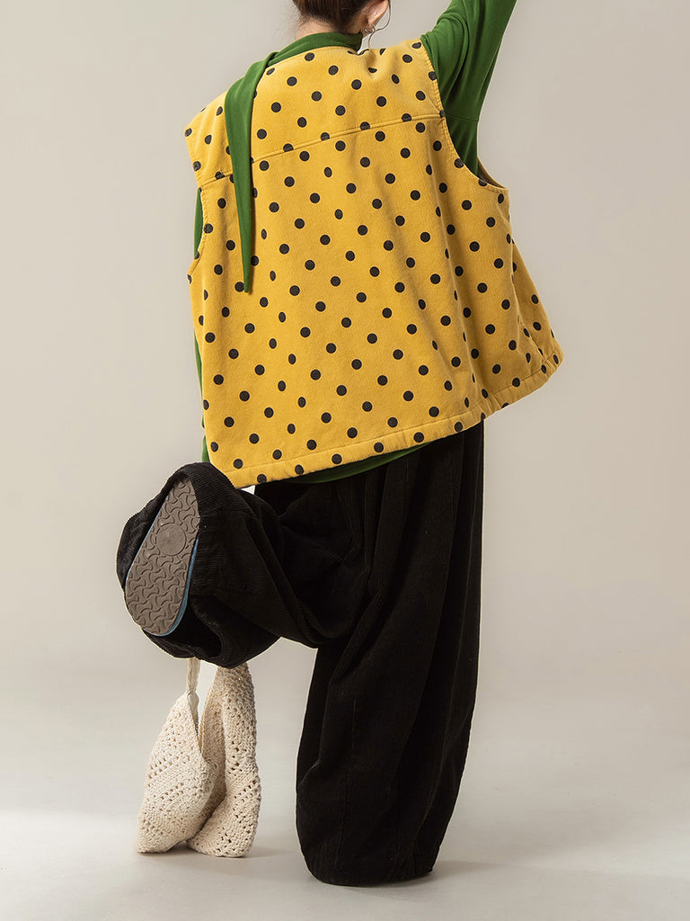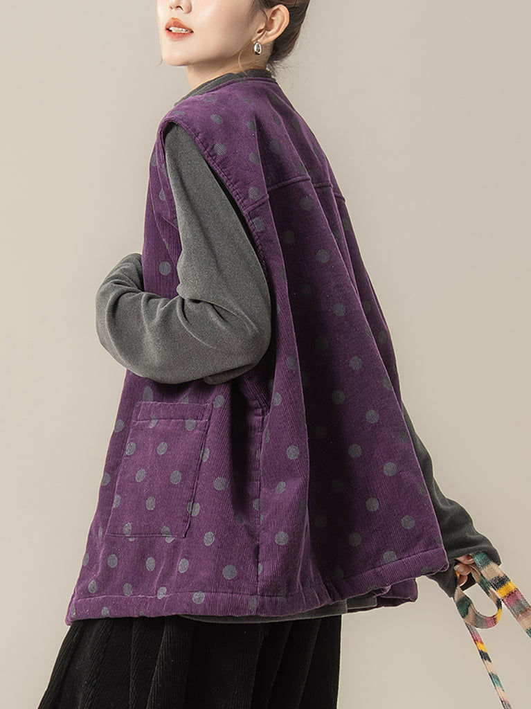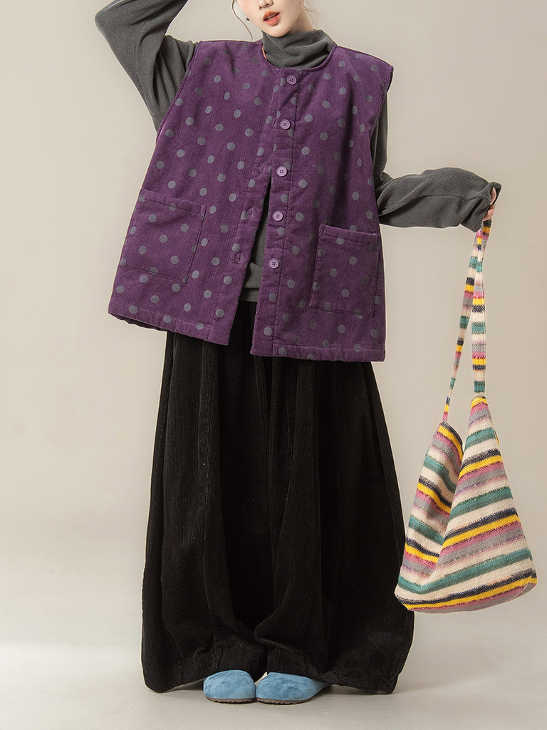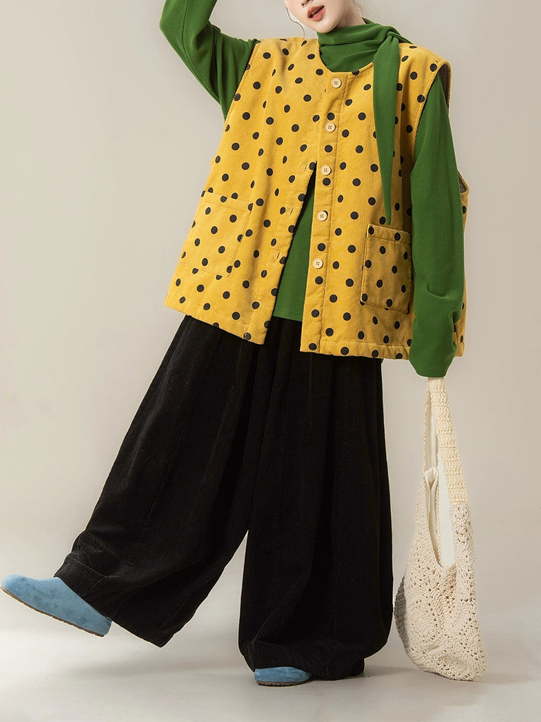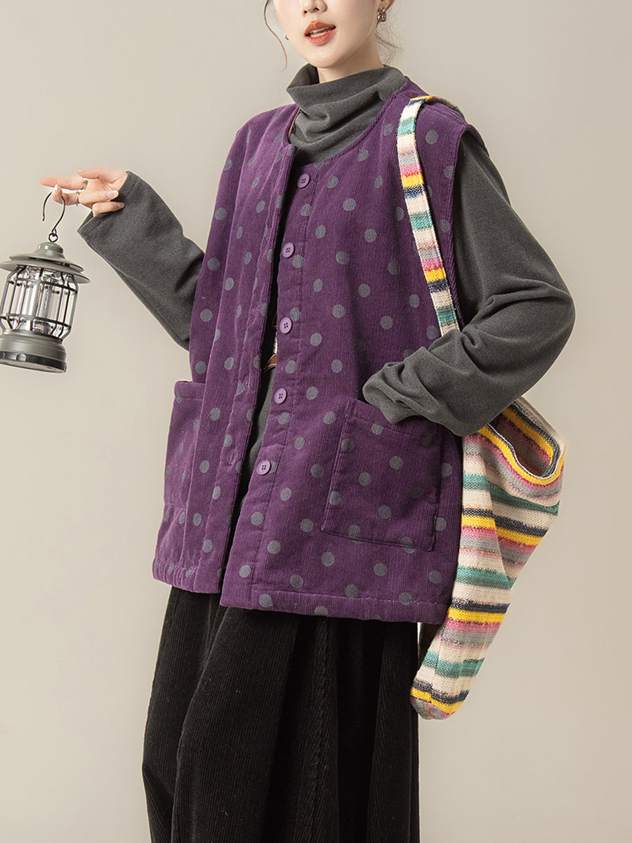 レディース 秋 アーティスティック ドット Oネック コーデュロイ ベスト