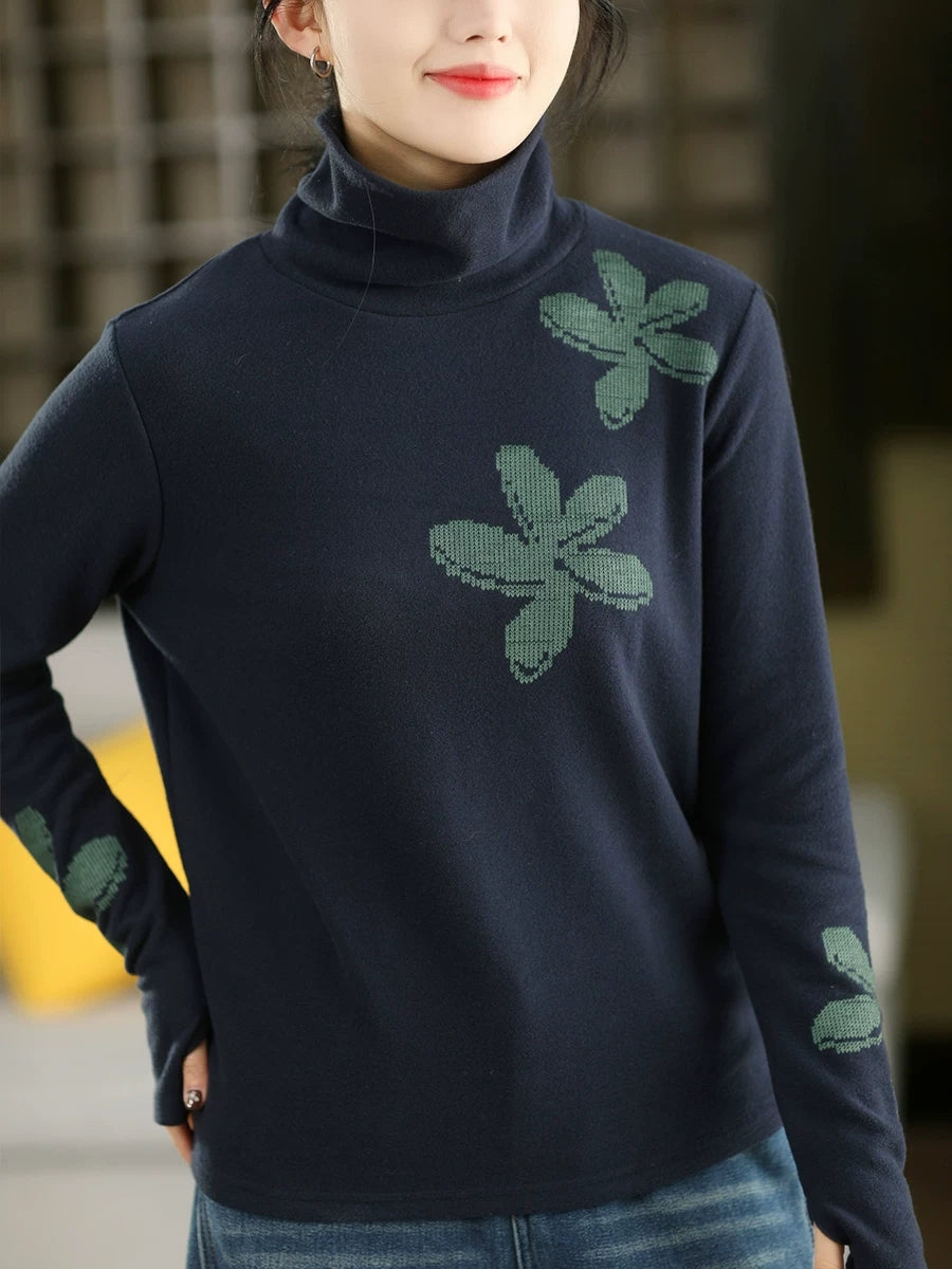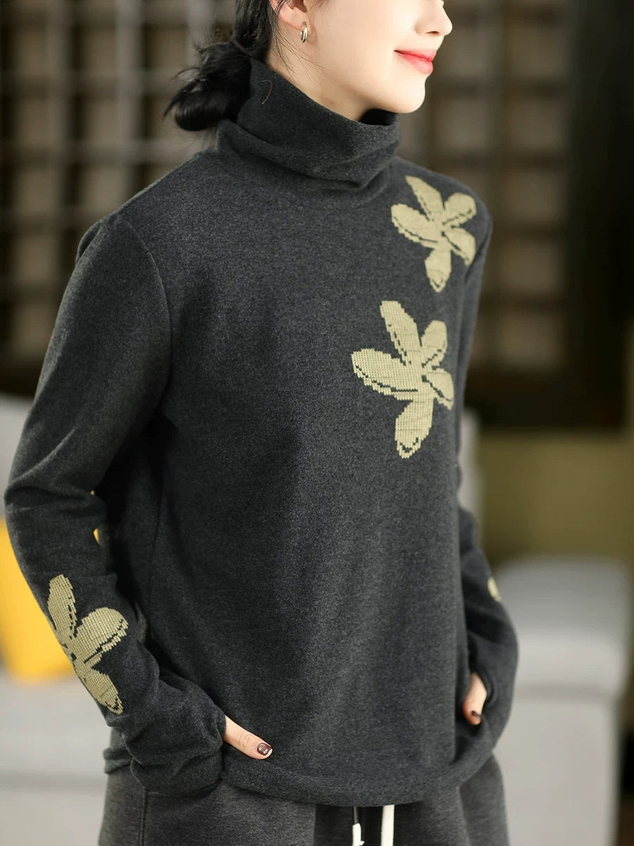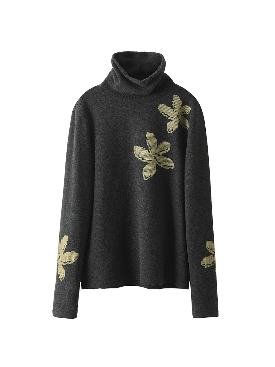 レディース 秋 アーティスティックフラワー タートルネック セーター
