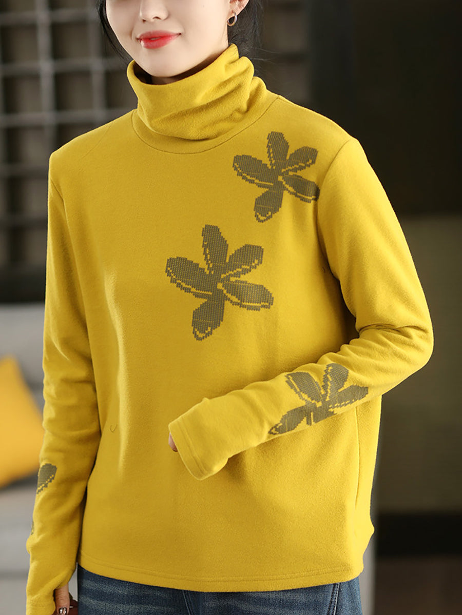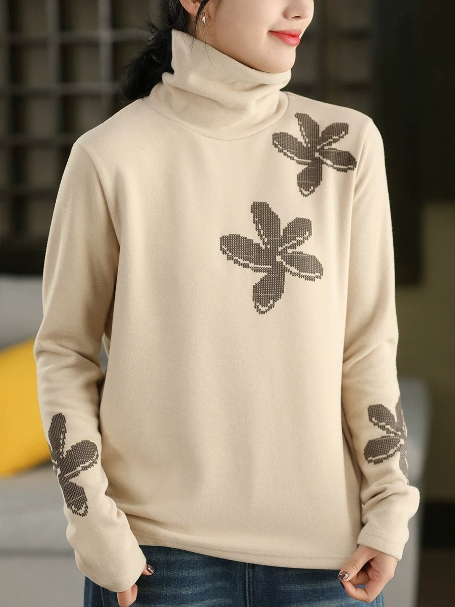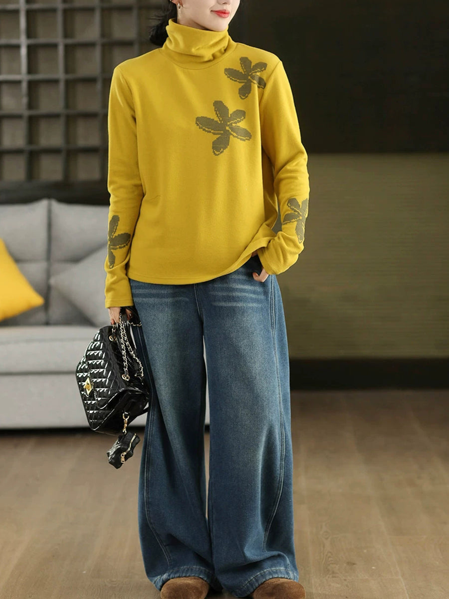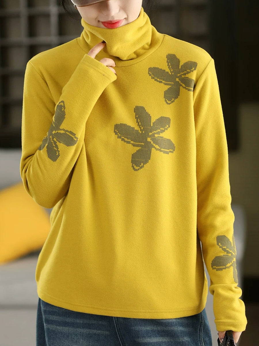 レディース 秋 アーティスティックフラワー タートルネック セーター