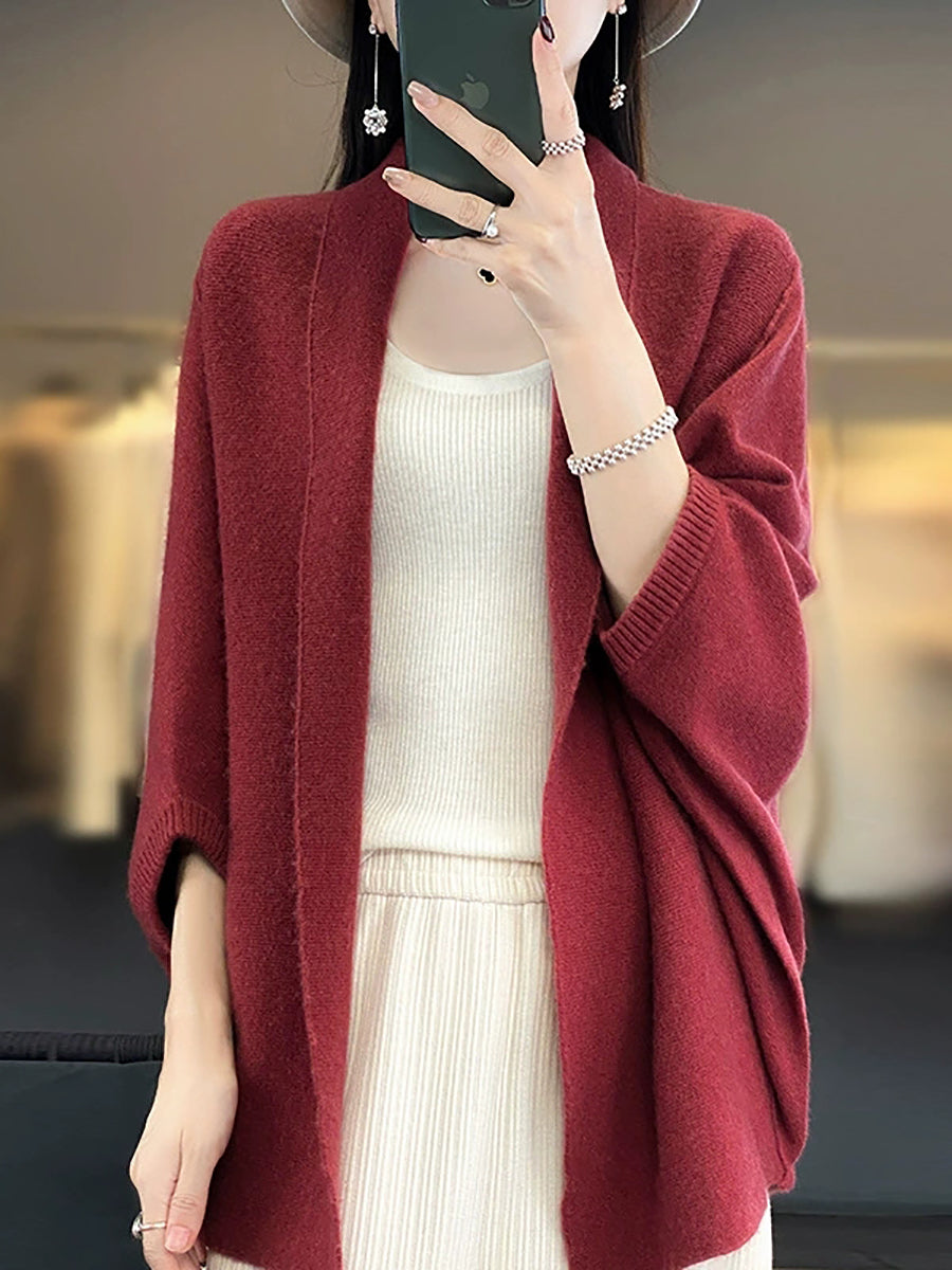 レディース 秋 アーティスティック ピュアカラー カーディガン ウール セーター