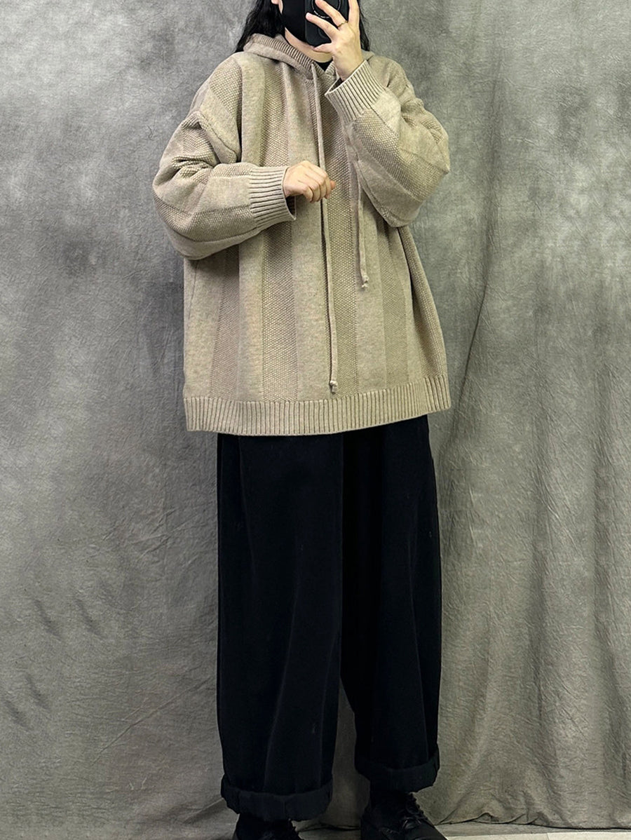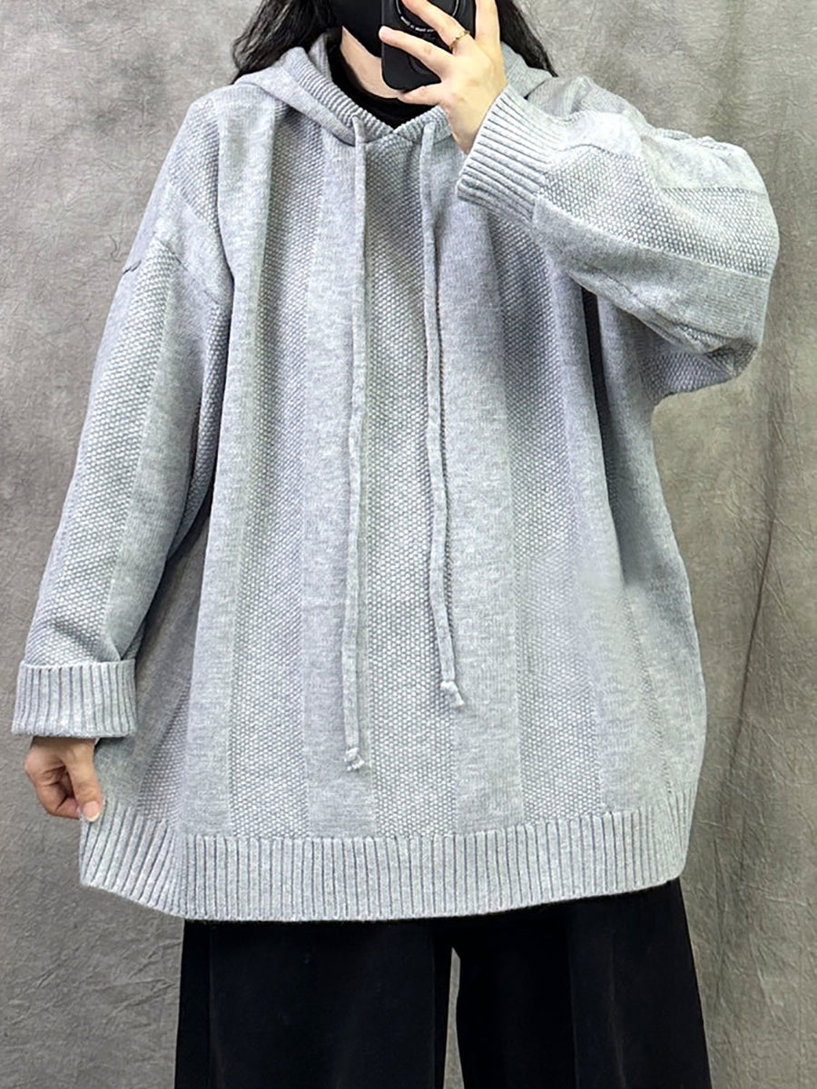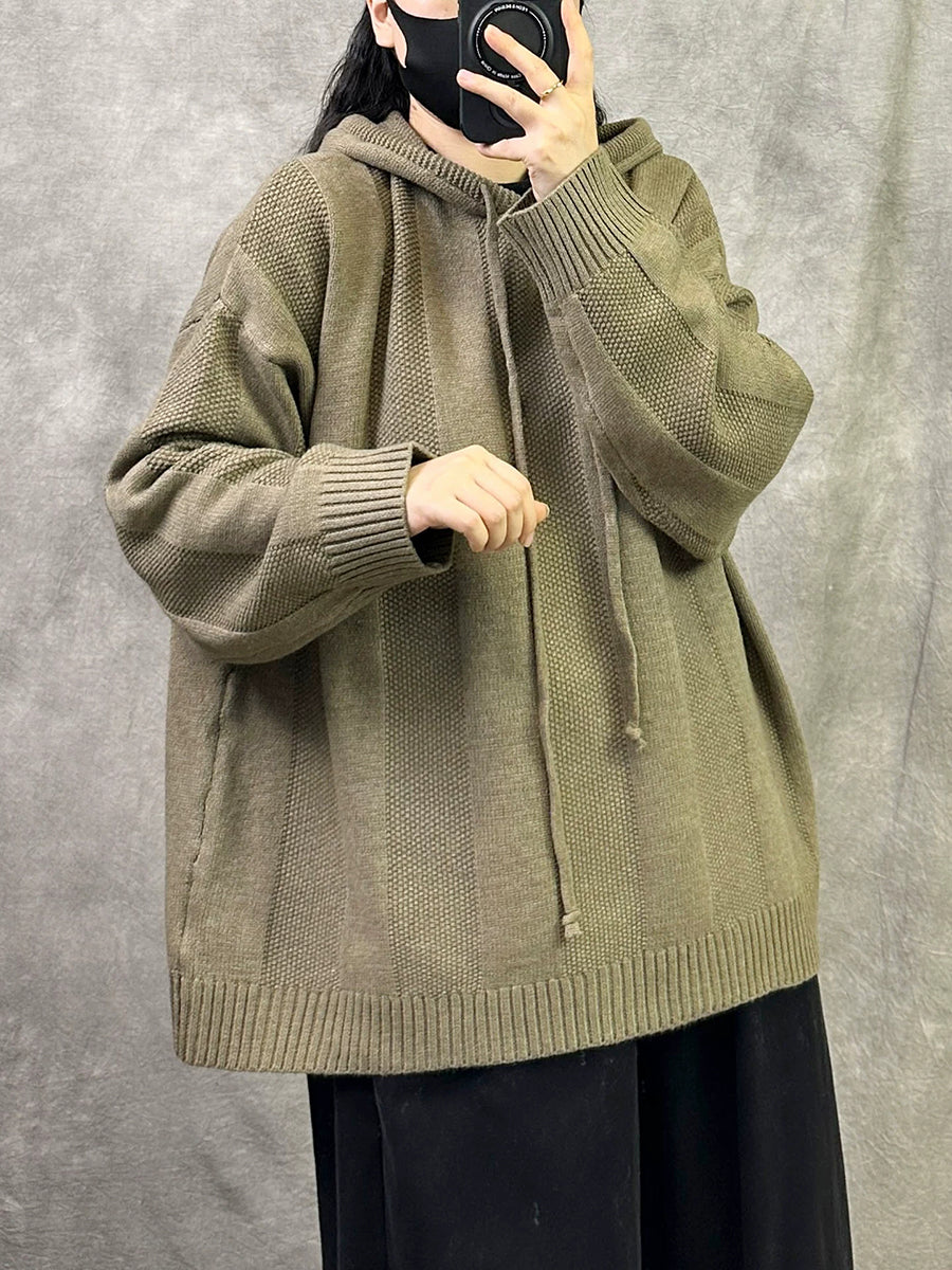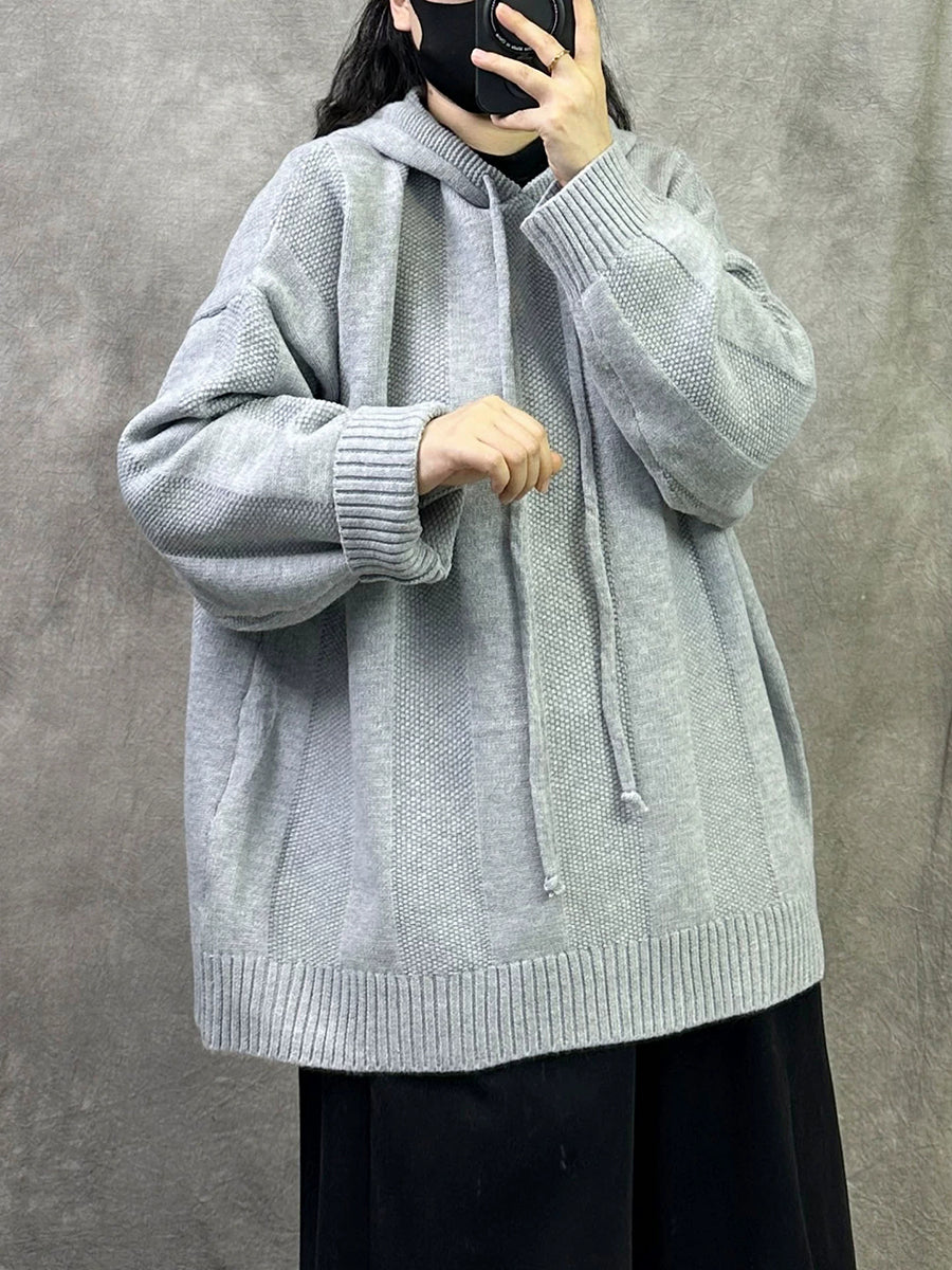 レディース 秋 アーティスティック ピュアカラー フード付きセーター