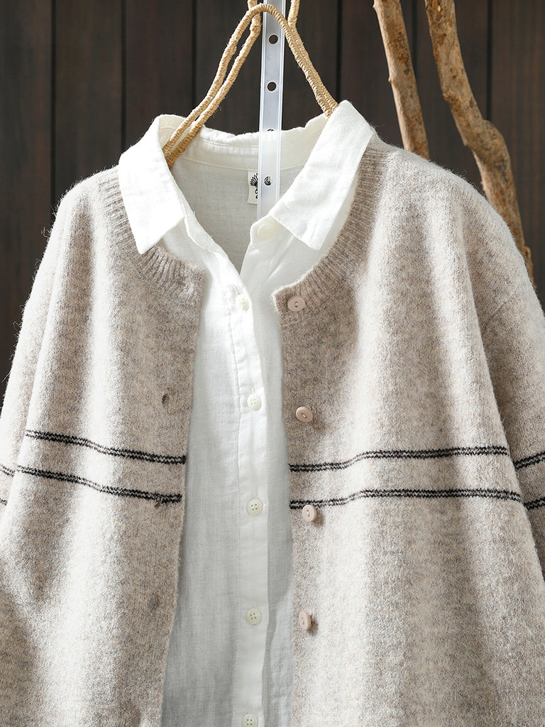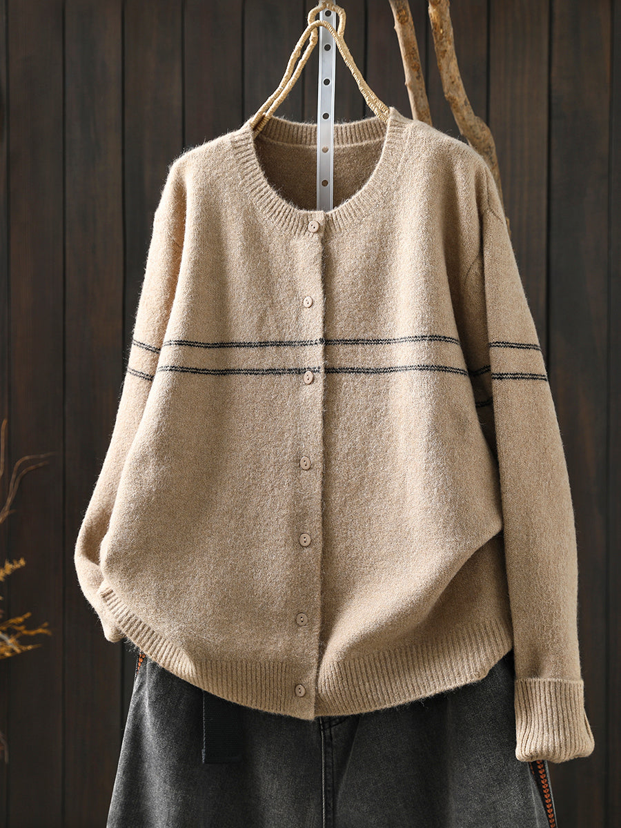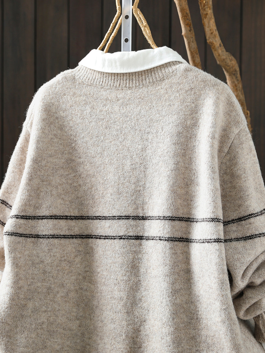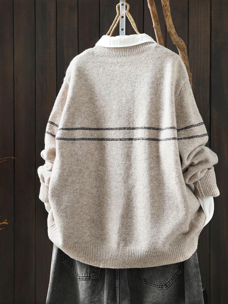 レディース 秋 アーティスティック ストライプ ニット Oネック セーター