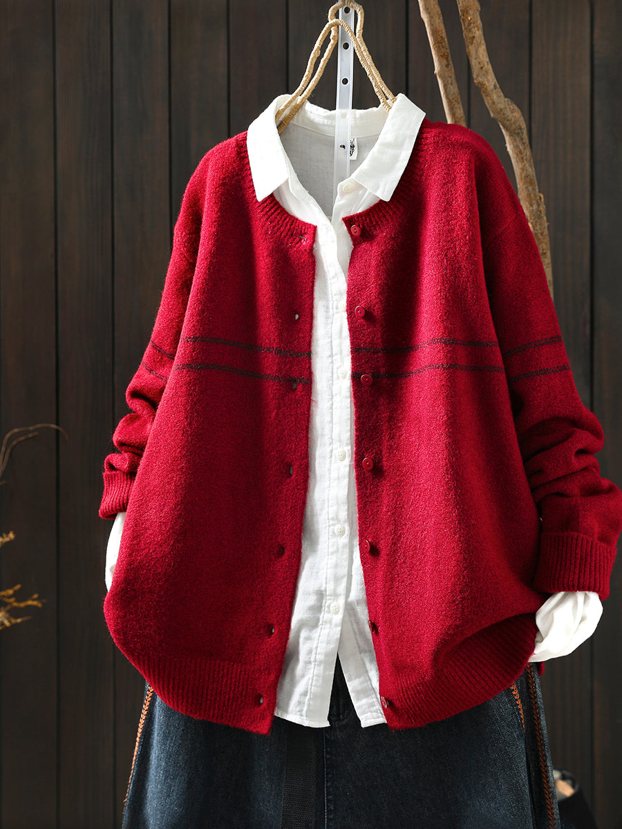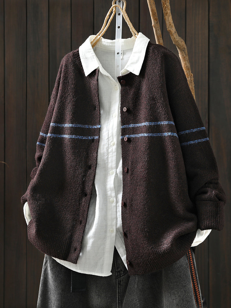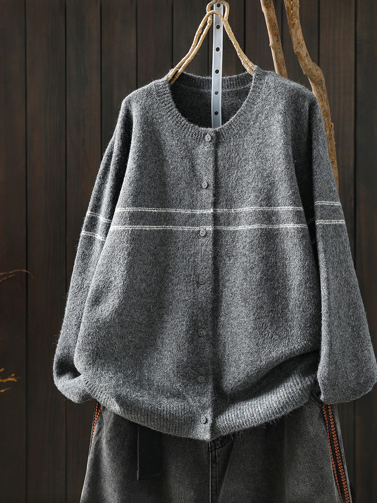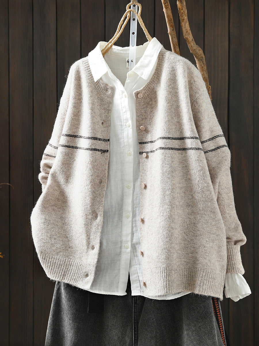 レディース 秋 アーティスティック ストライプ ニット Oネック セーター