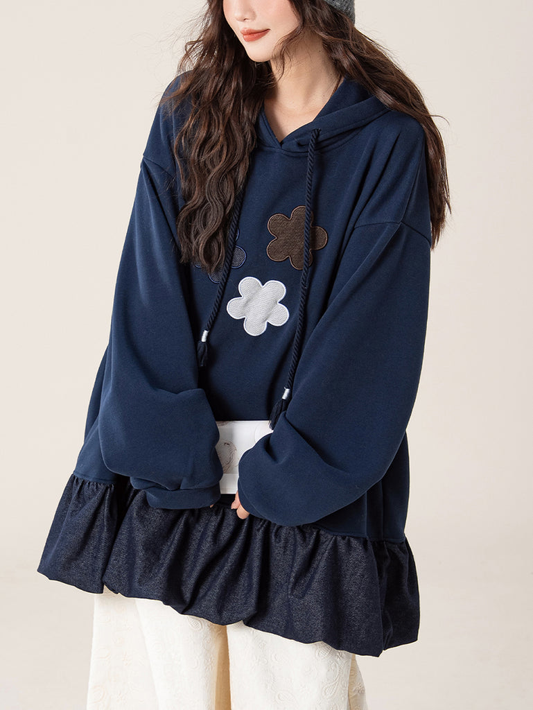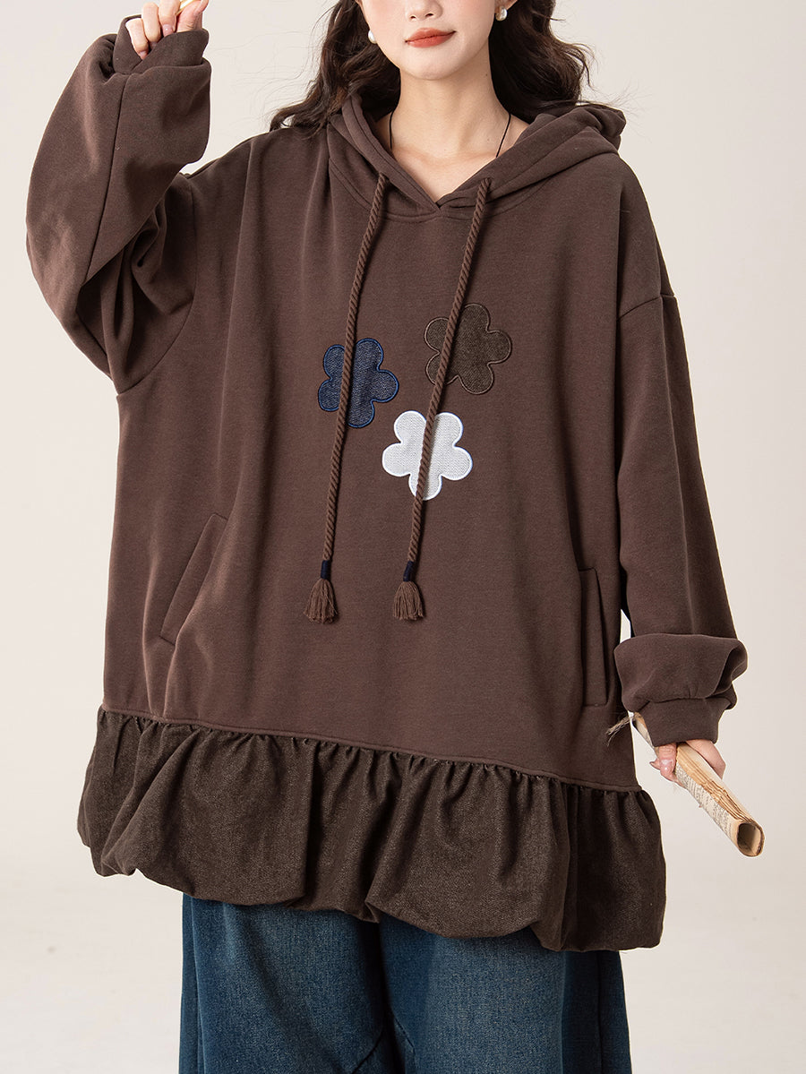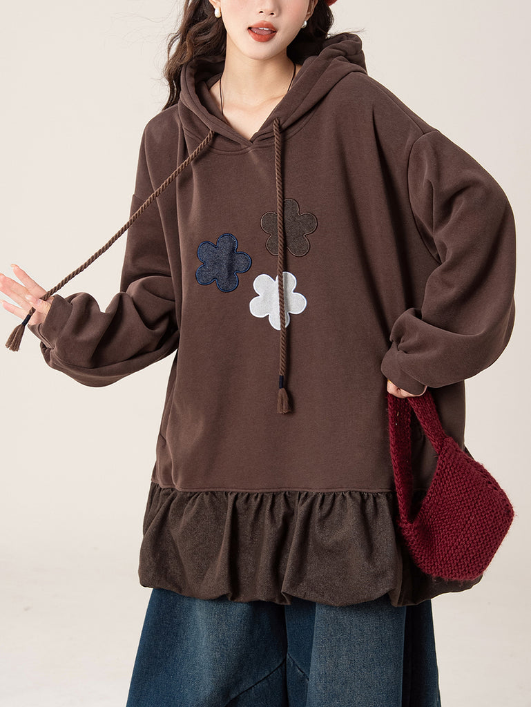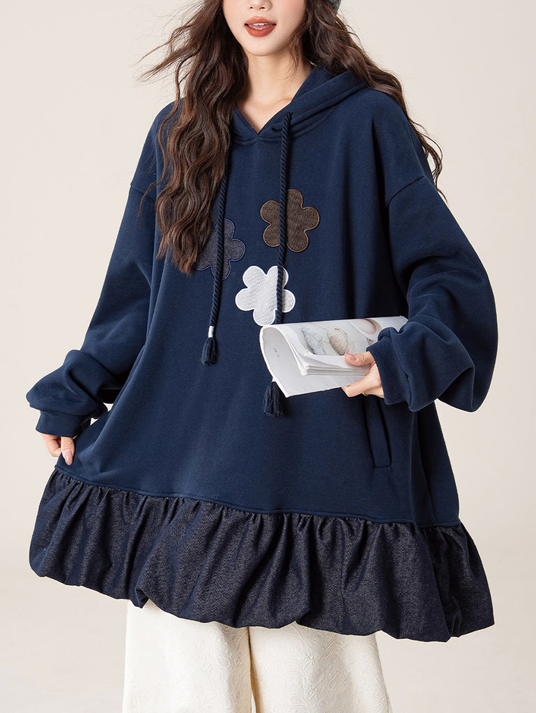 レディース 秋 カジュアル フラワー フード付き スプライス ドレス