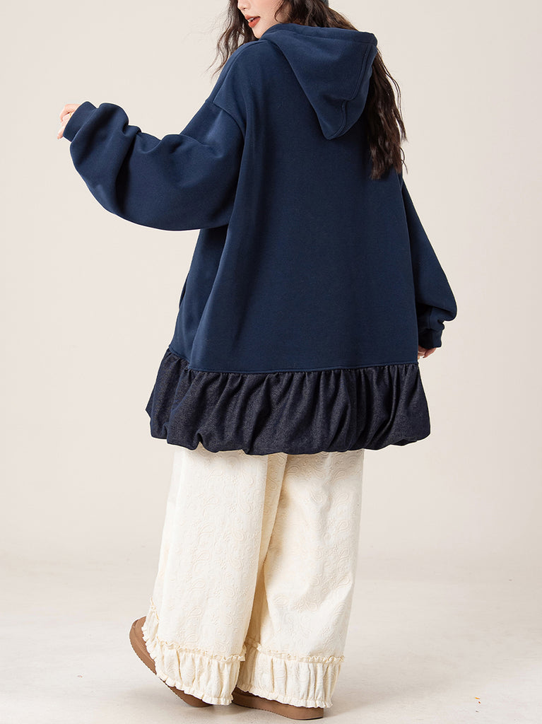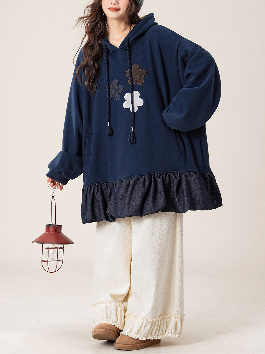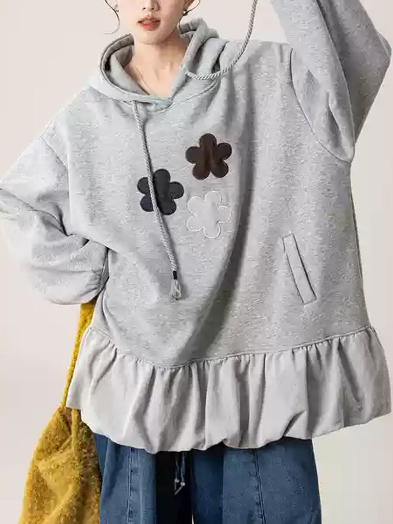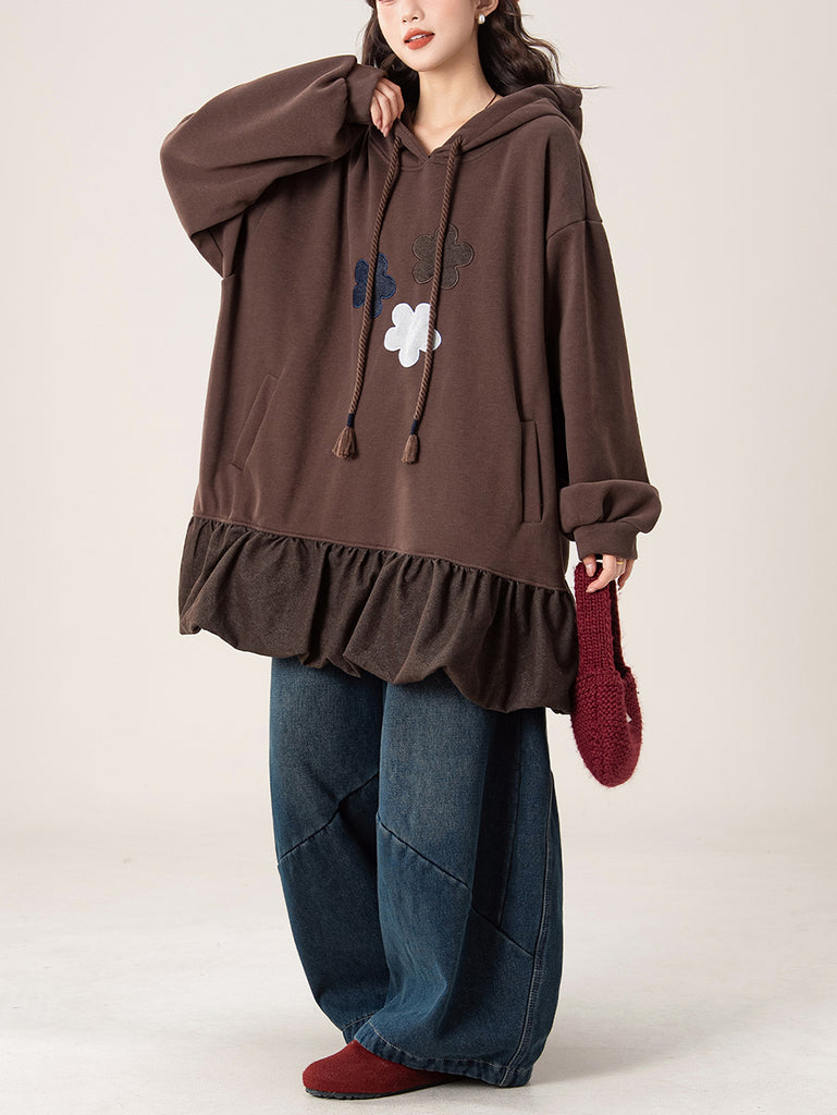 レディース 秋 カジュアル フラワー フード付き スプライス ドレス