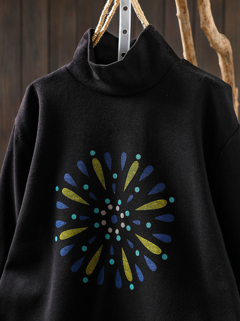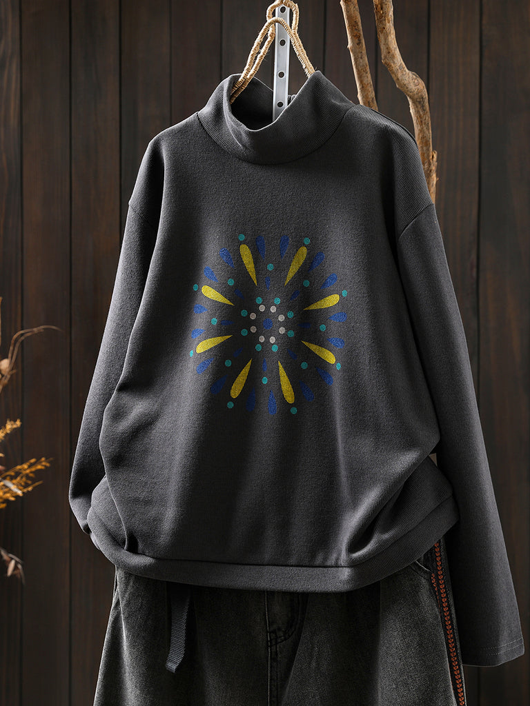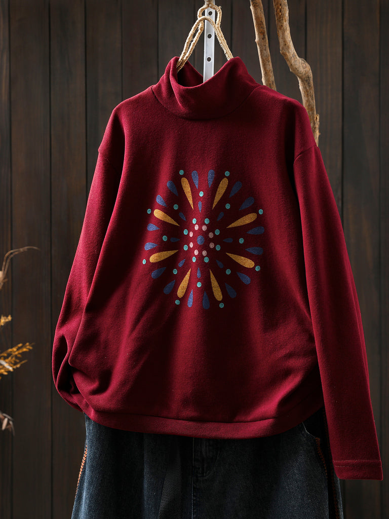 レディース 秋 カジュアル プリント コットン タートルネック シャツ