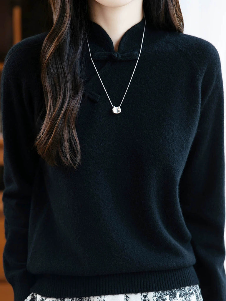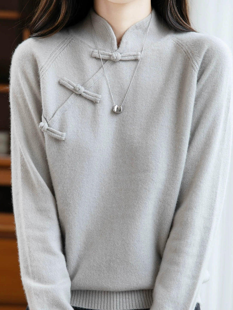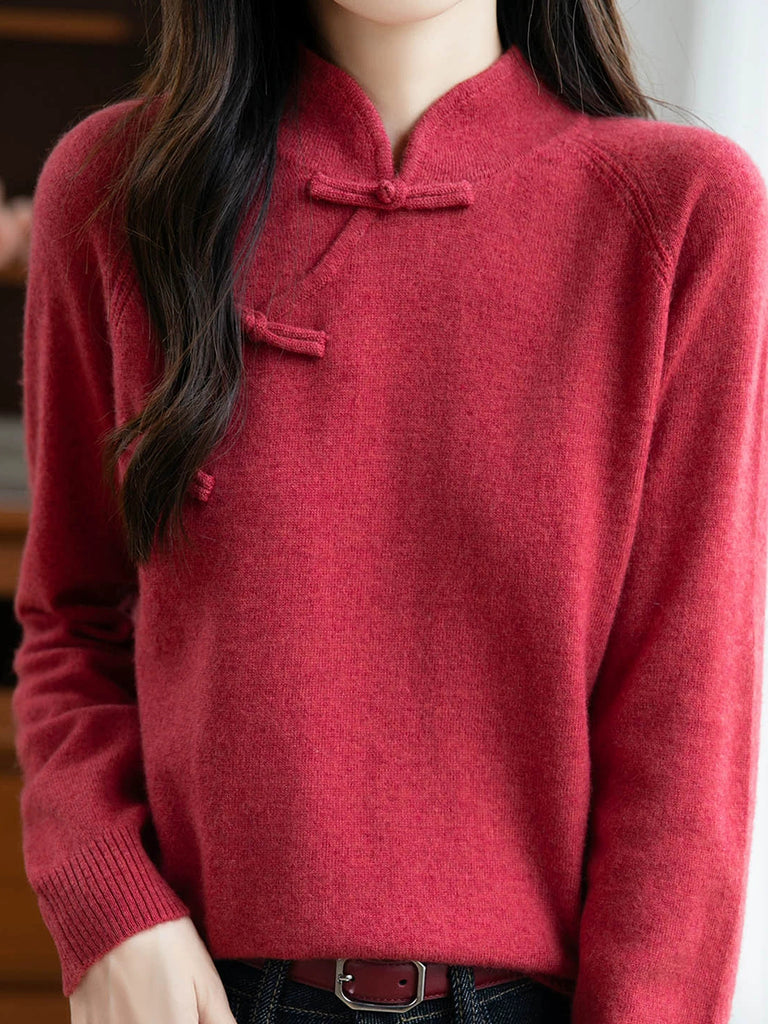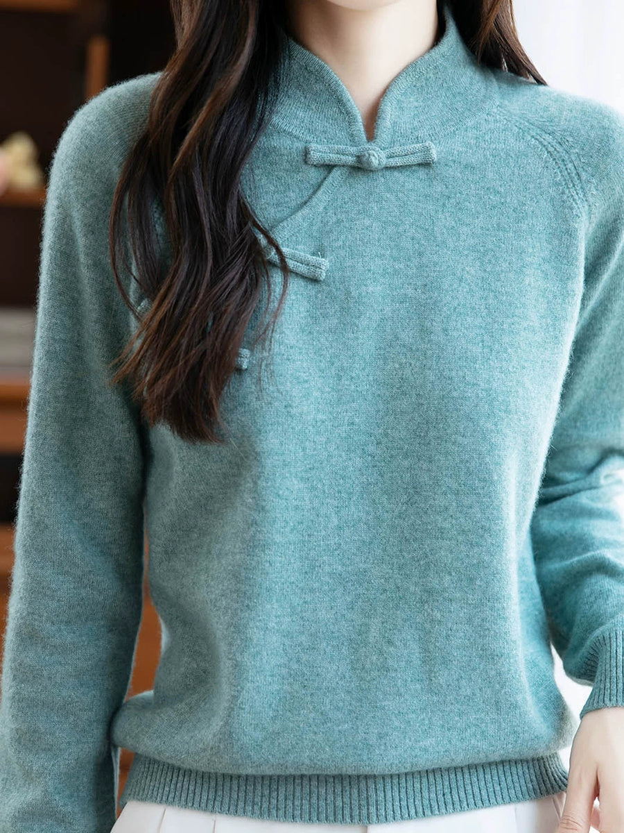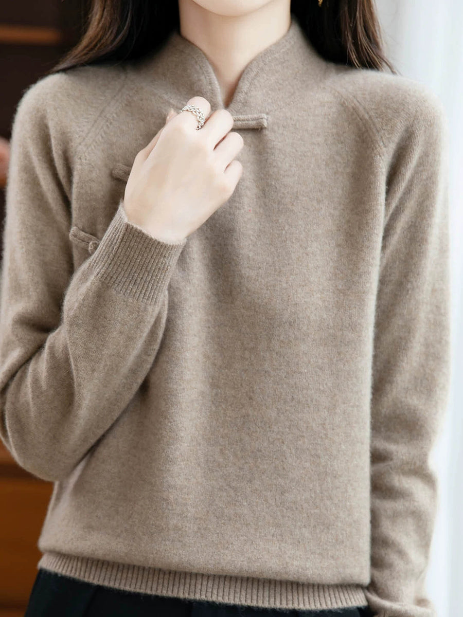 レディース 秋 エスニック ピュアカラー スタンドカラー セーター