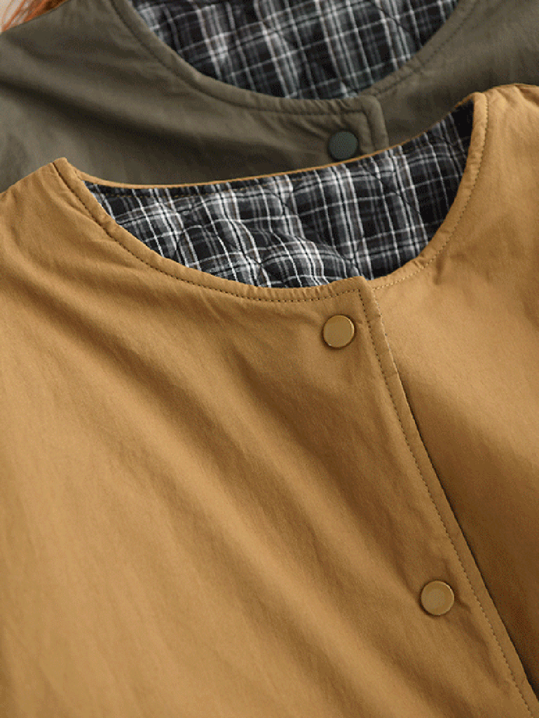 レディース 秋 ピュアカラー 100%コットン Oネック パッド入りジャケット