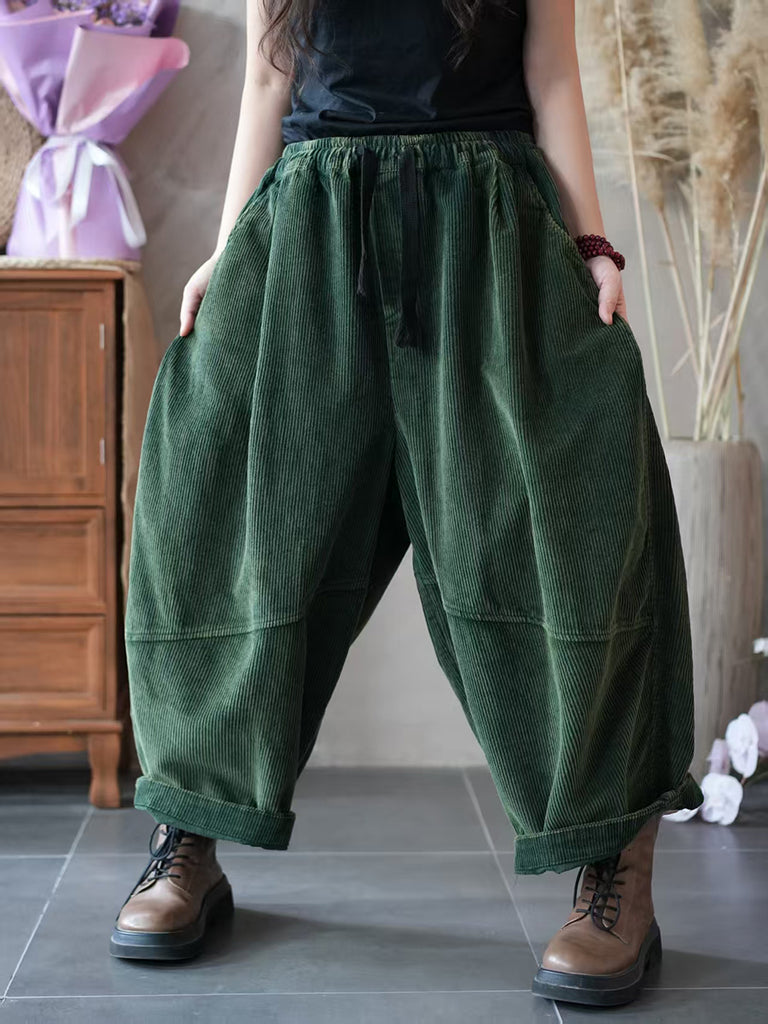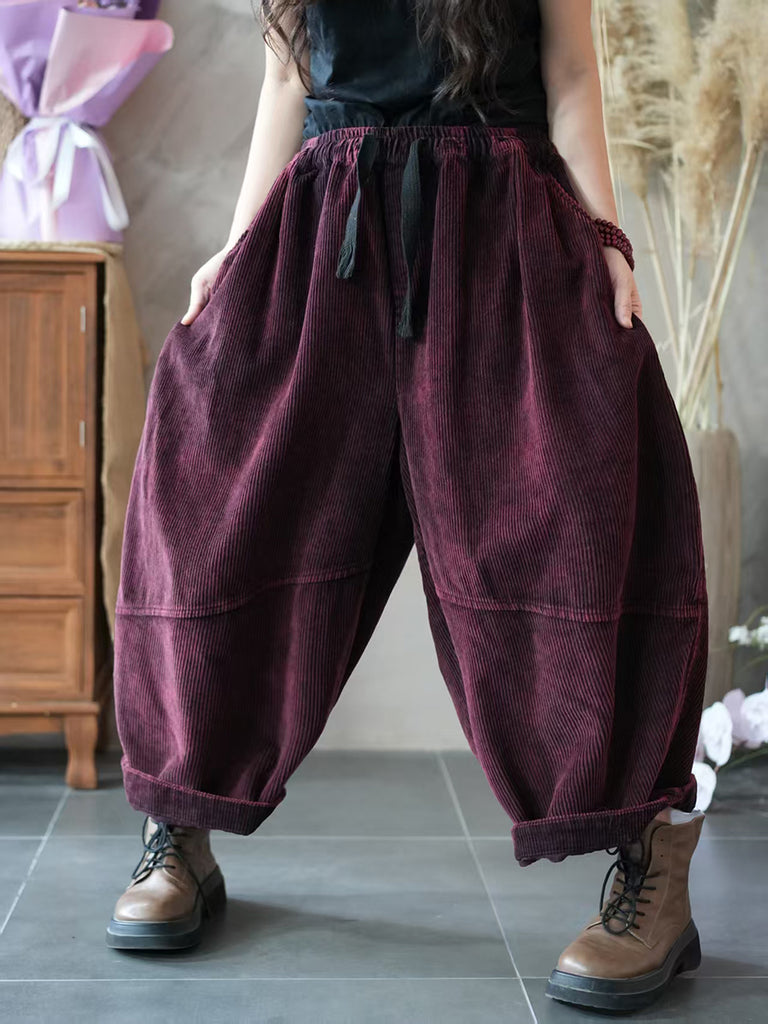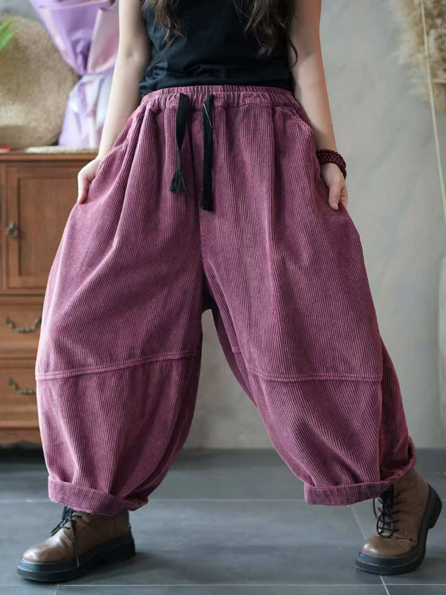 レディース 秋 ピュアカラー スプライスコーデュロイ ハーレムパンツ