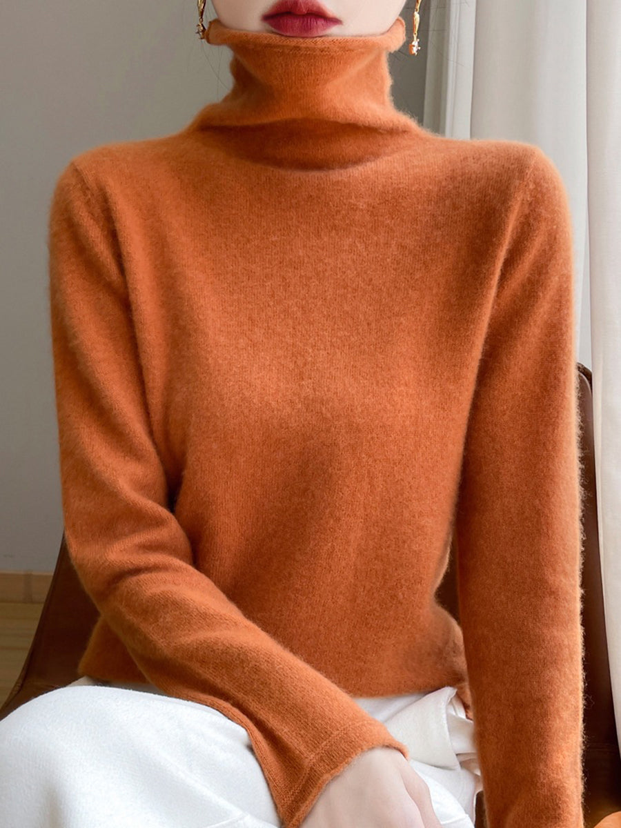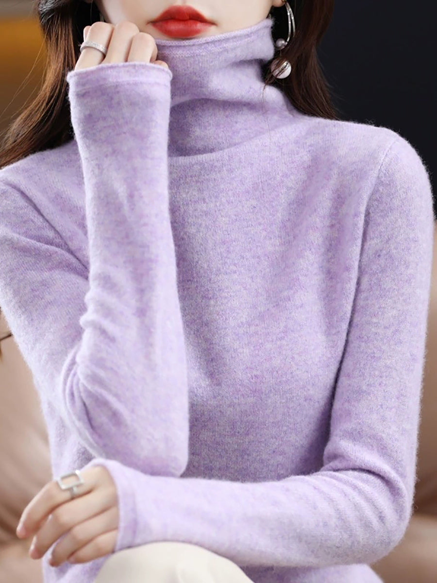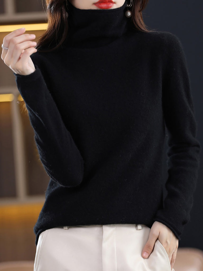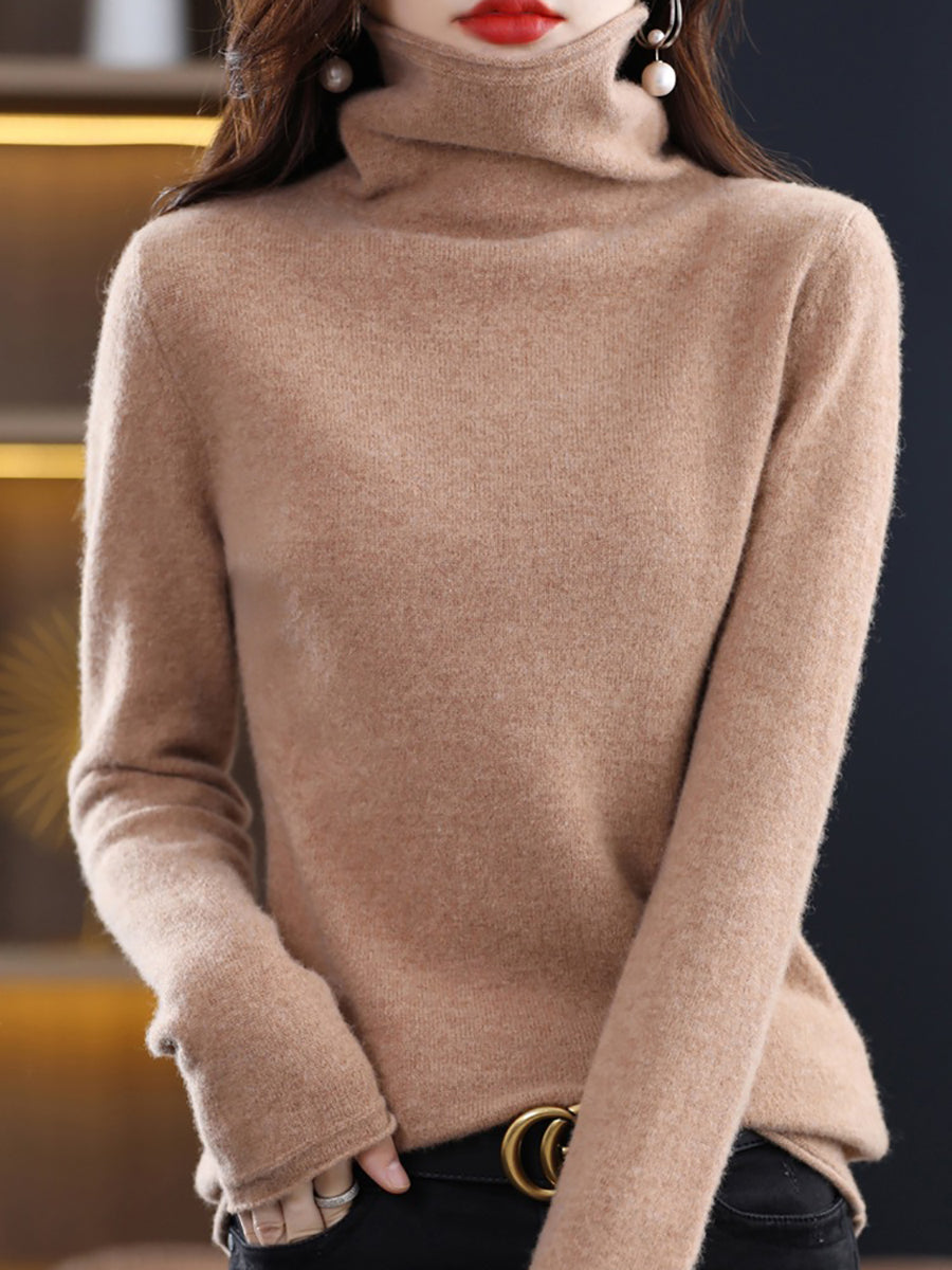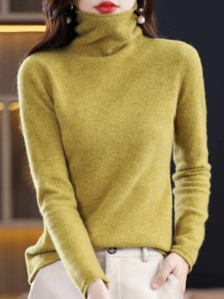 レディース 秋 ピュアカラー ウール タートルネック セーター