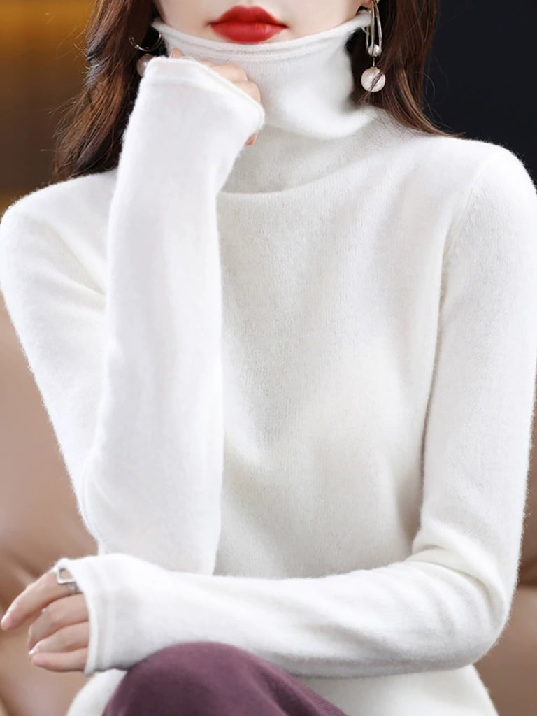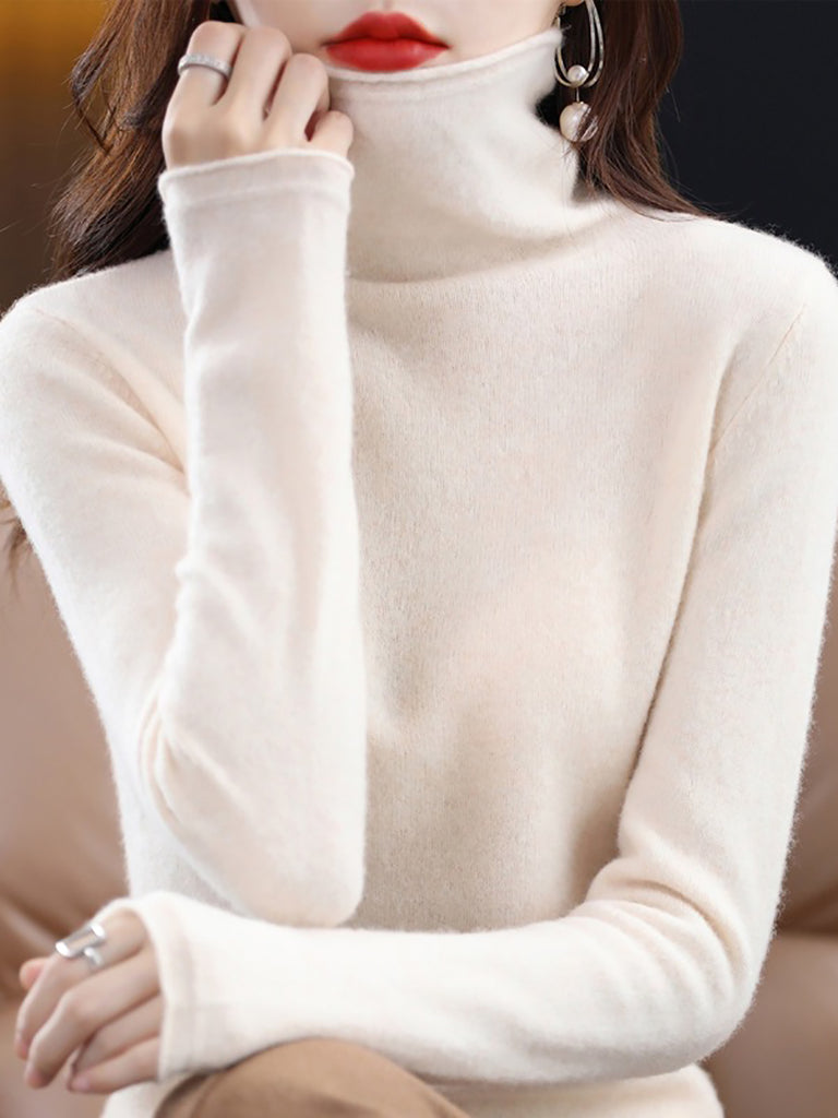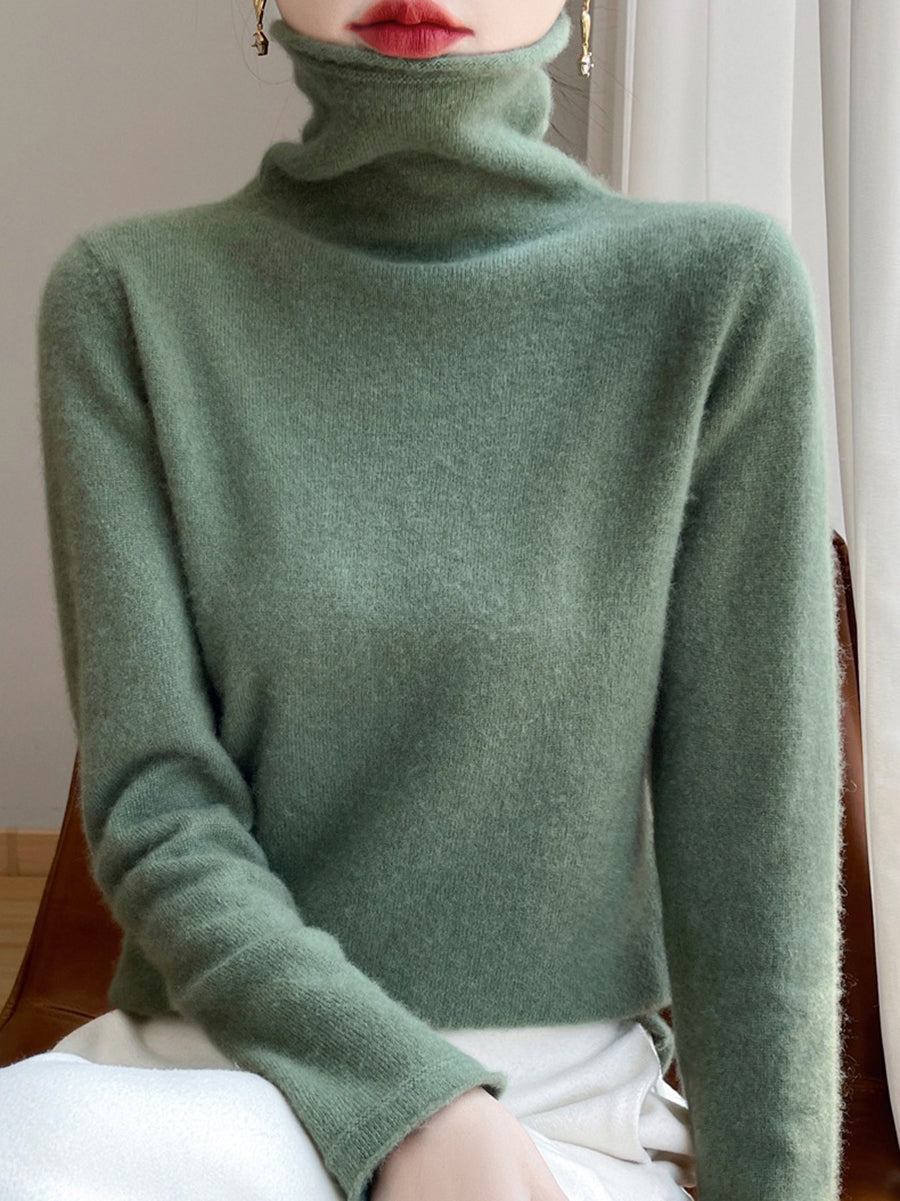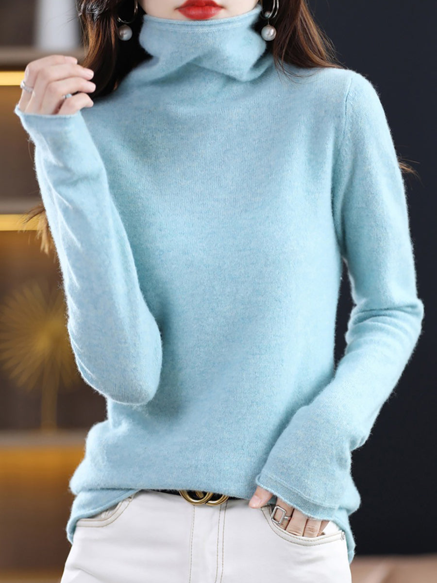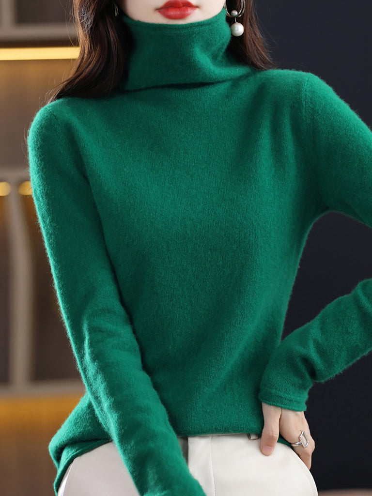 レディース 秋 ピュアカラー ウール タートルネック セーター