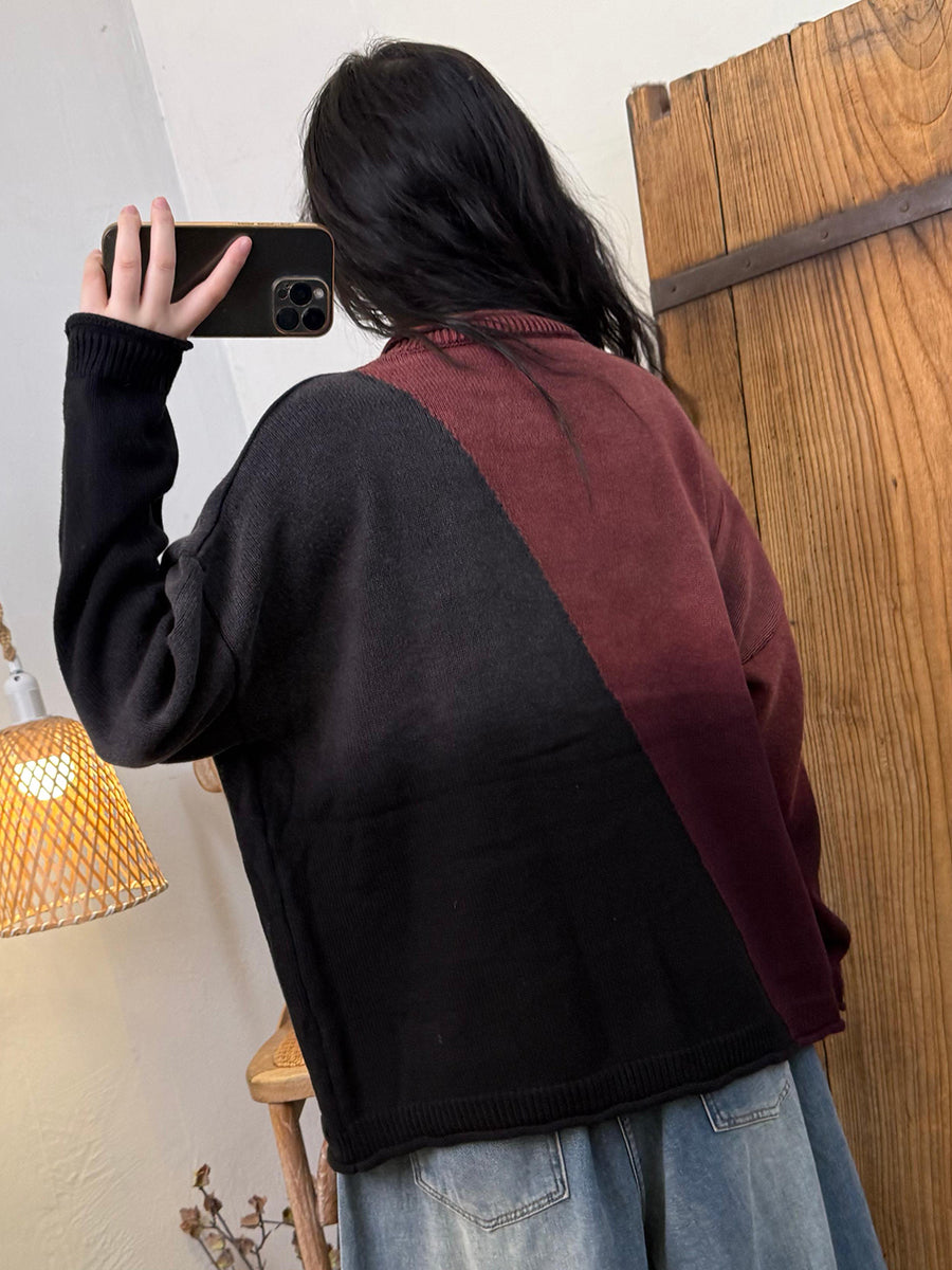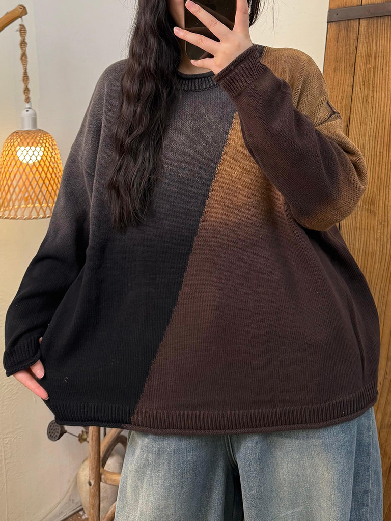 レディース 秋 レトロ カラーブロック ニット Oネック セーター