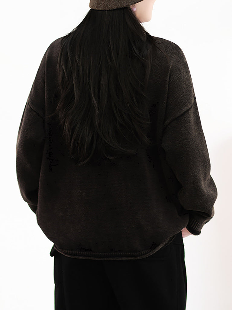 レディース 秋 レトロ パッチ スプライス ニット Oネック セーター