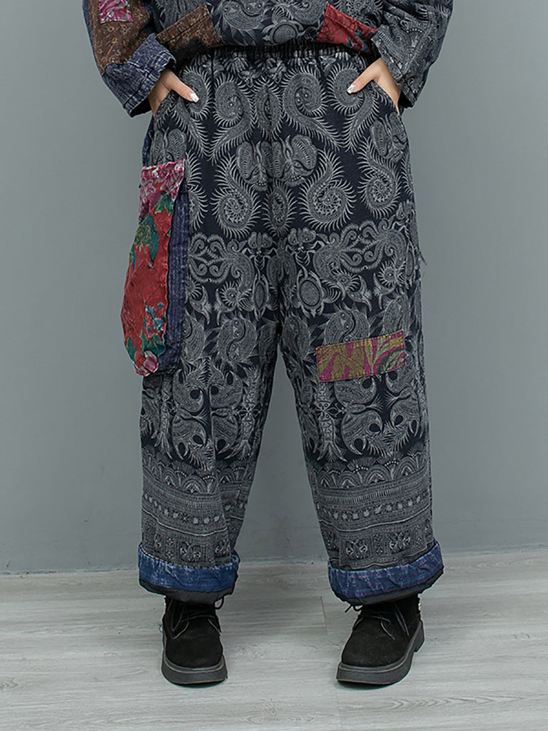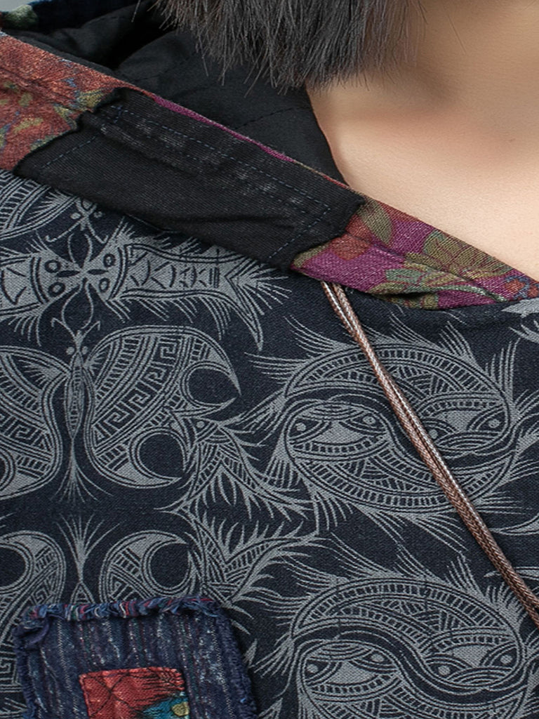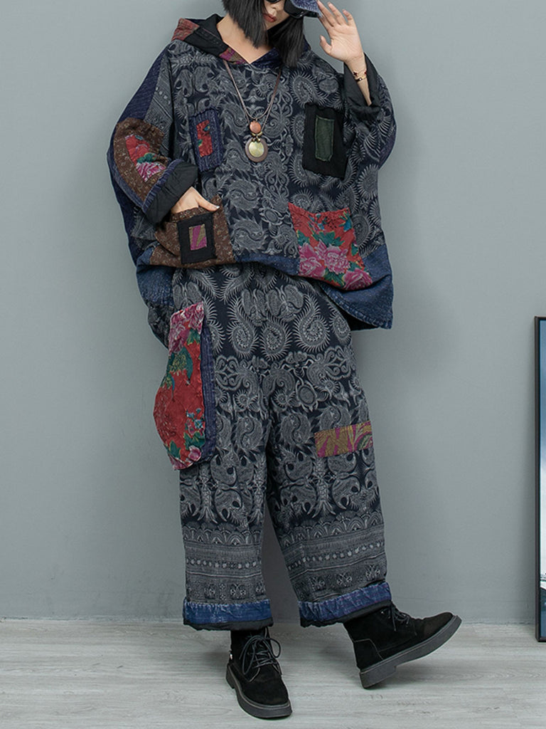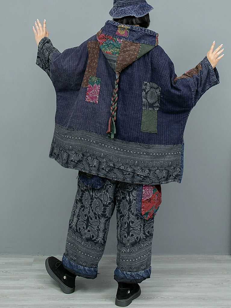 レディース秋レトロパッチワークリネンパッド入りスーツ