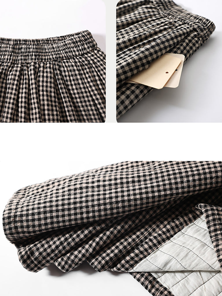 レディース 秋 レトロ チェック柄 Aシェイプ 100%コットンスカート