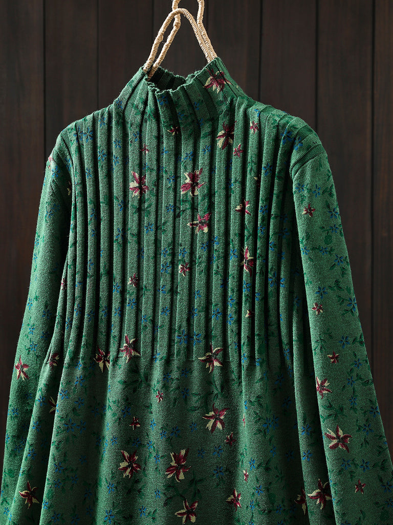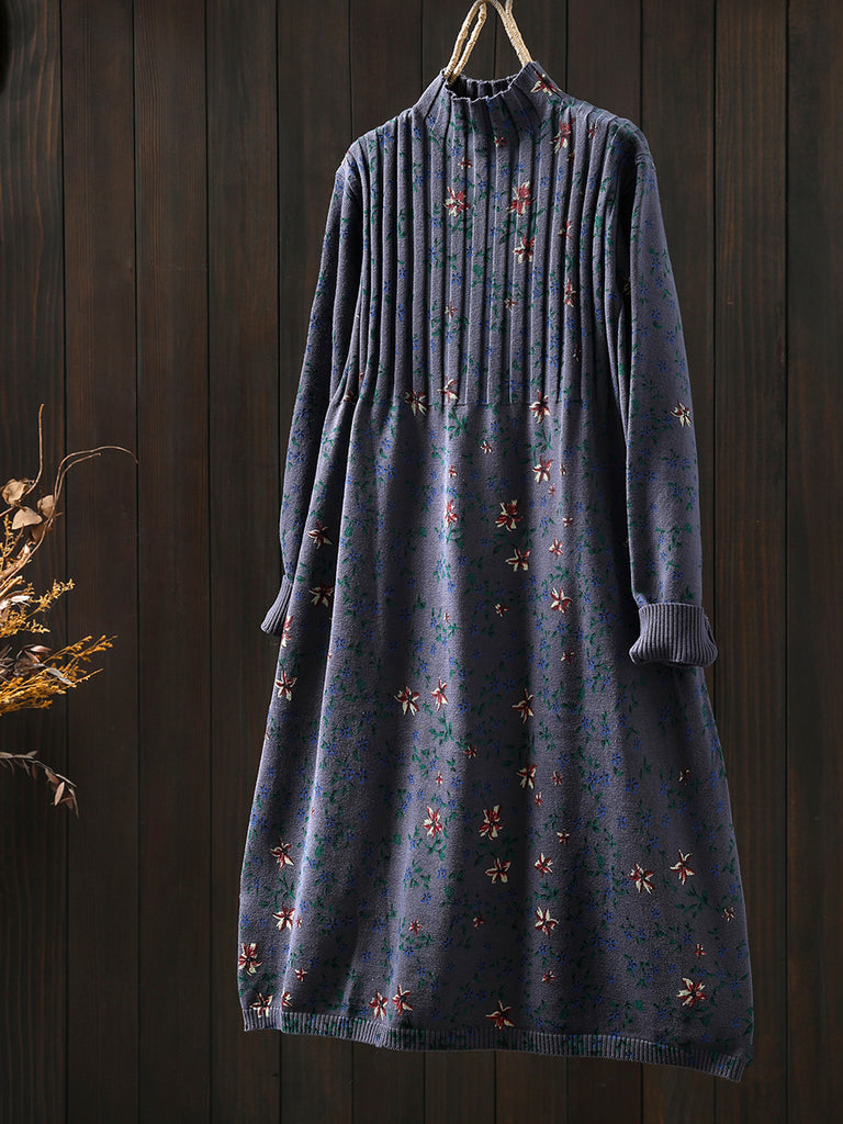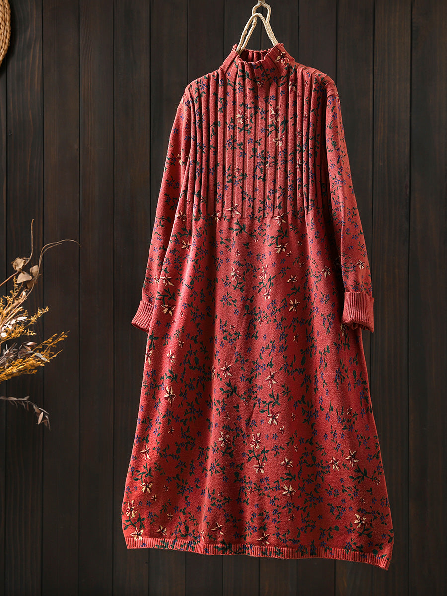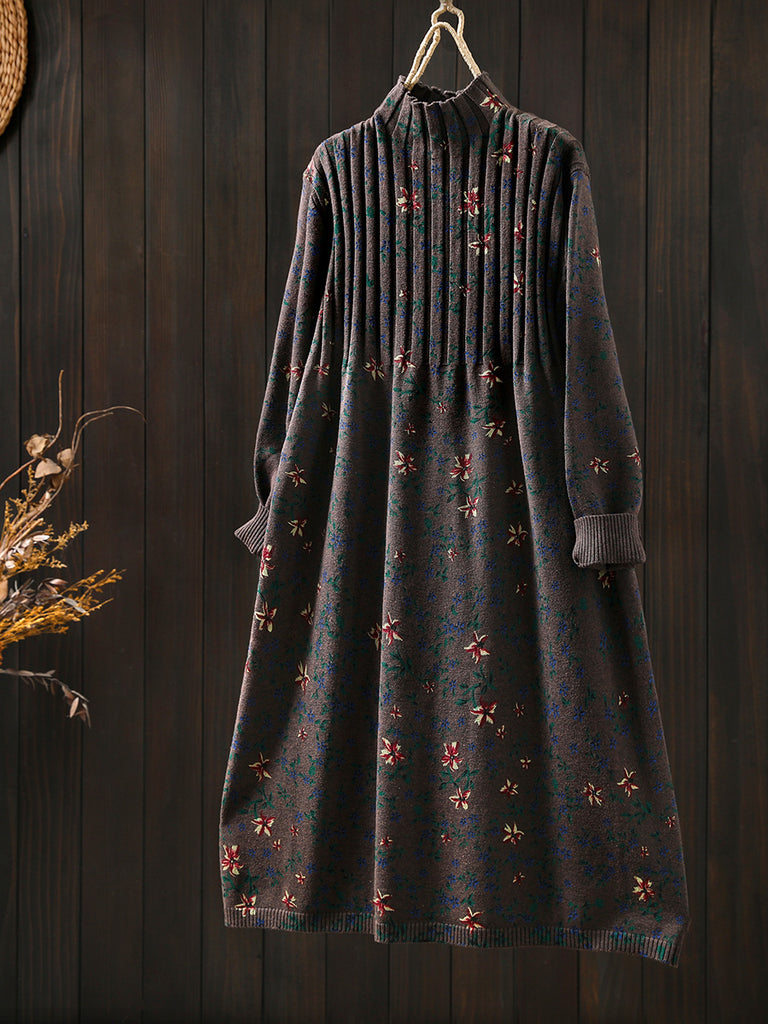 レディース 秋 ヴィンテージ フローラル ハーフタートルネック ニットドレス