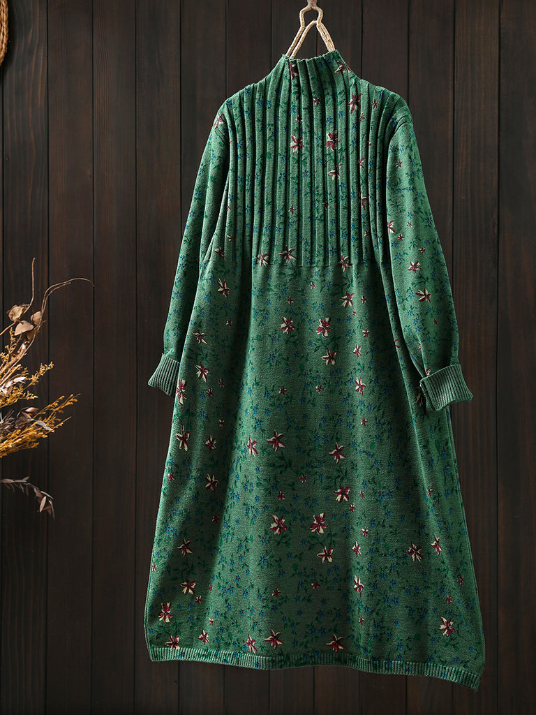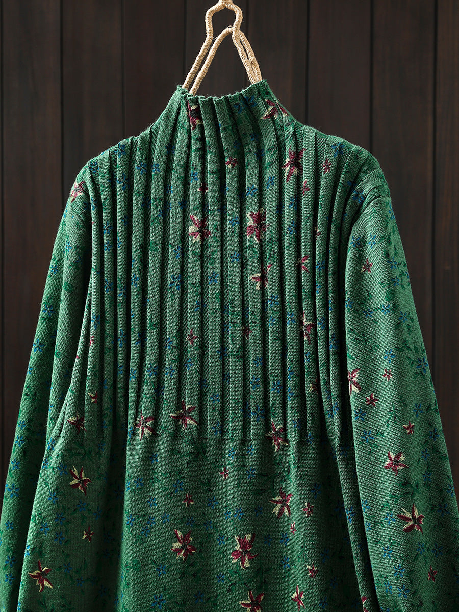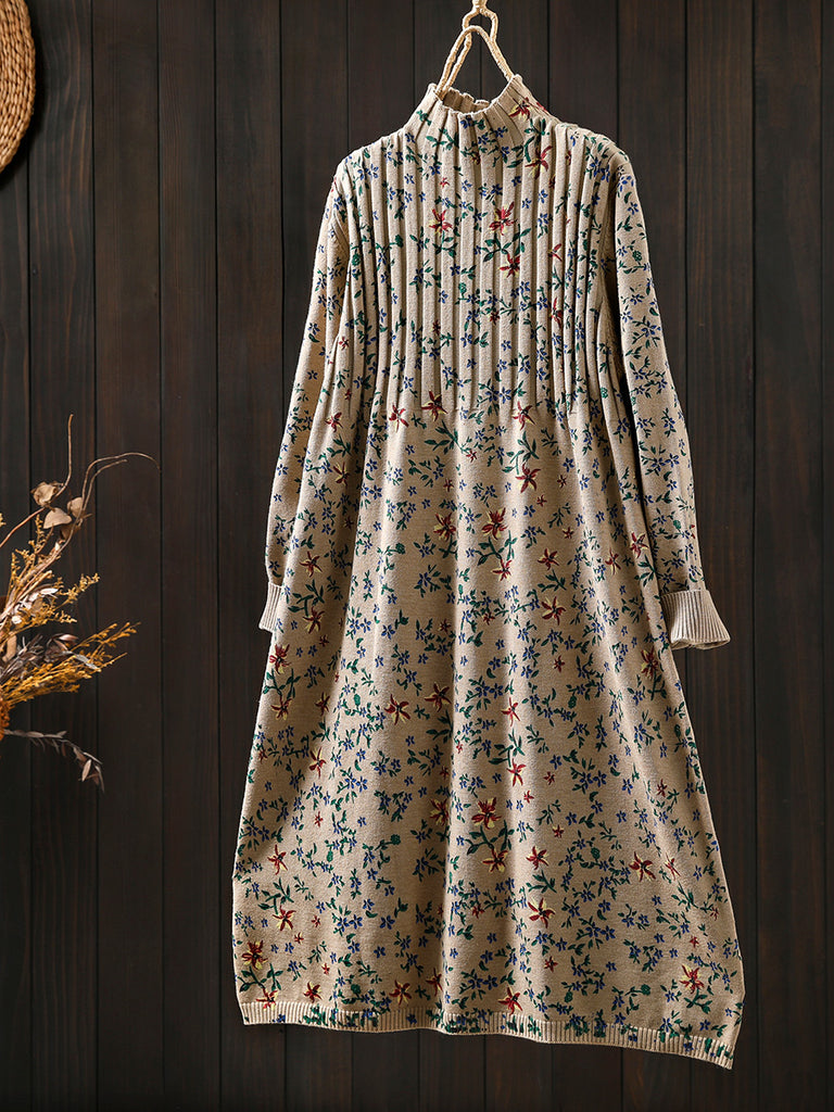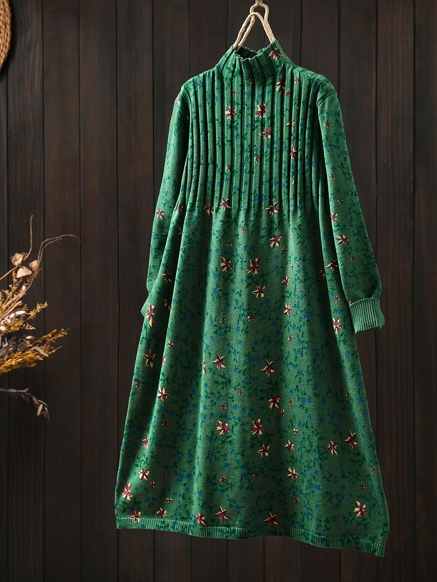 レディース 秋 ヴィンテージ フローラル ハーフタートルネック ニットドレス