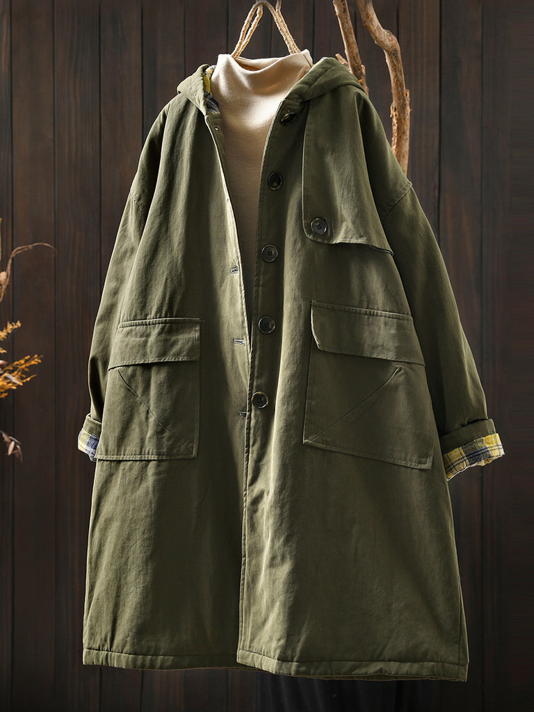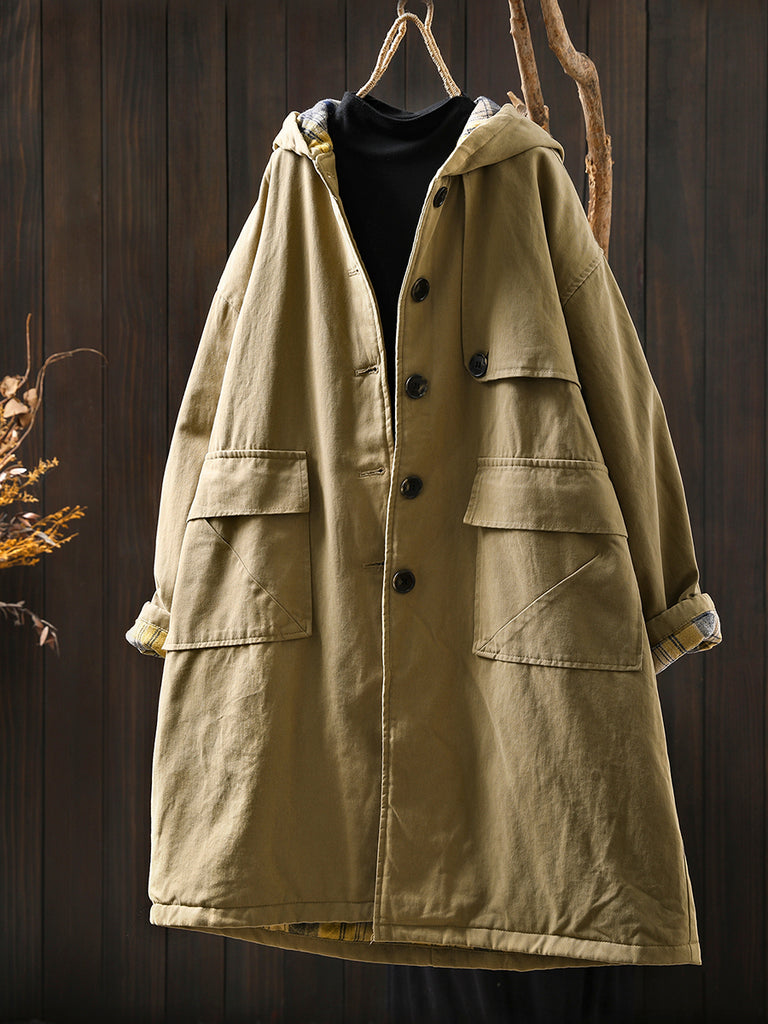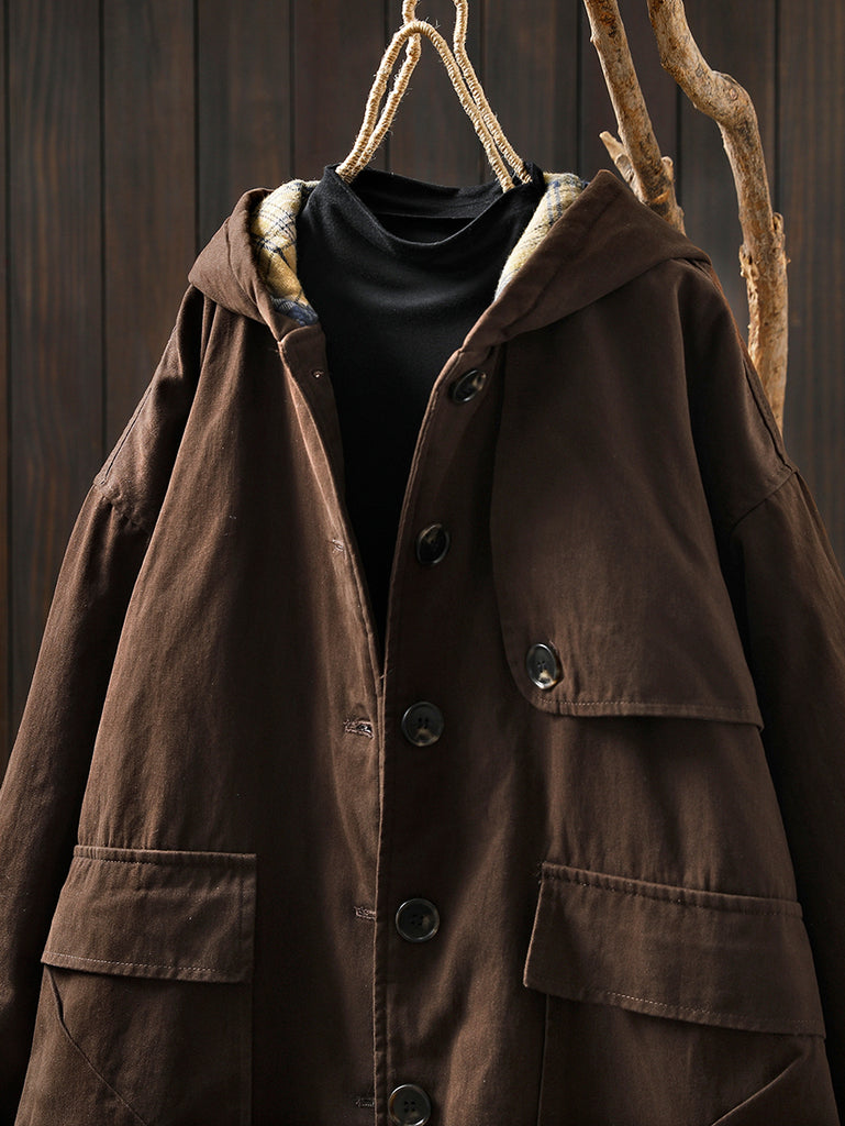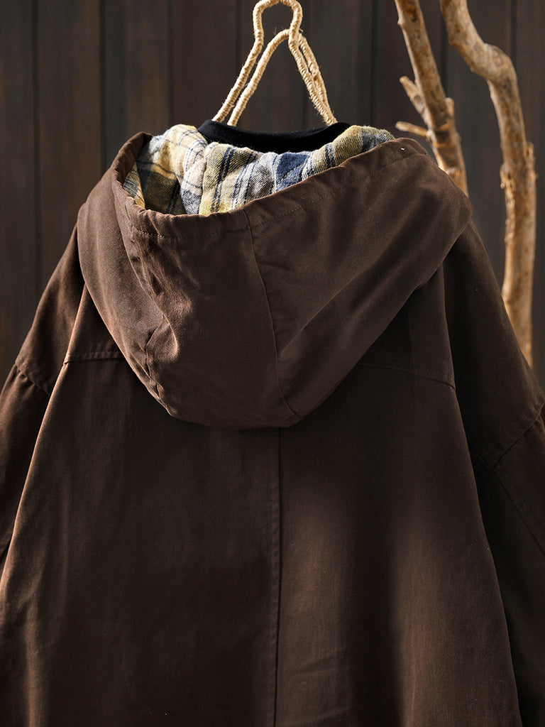 レディース 秋 ヴィンテージ ピュアカラー コットン フード付きコート