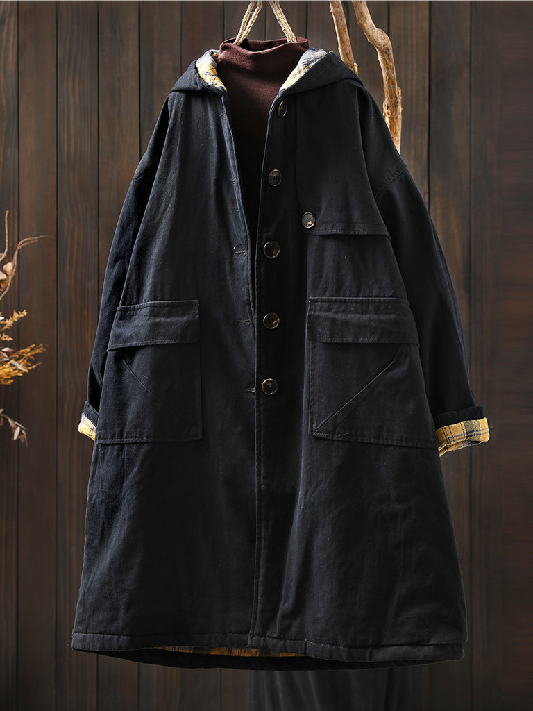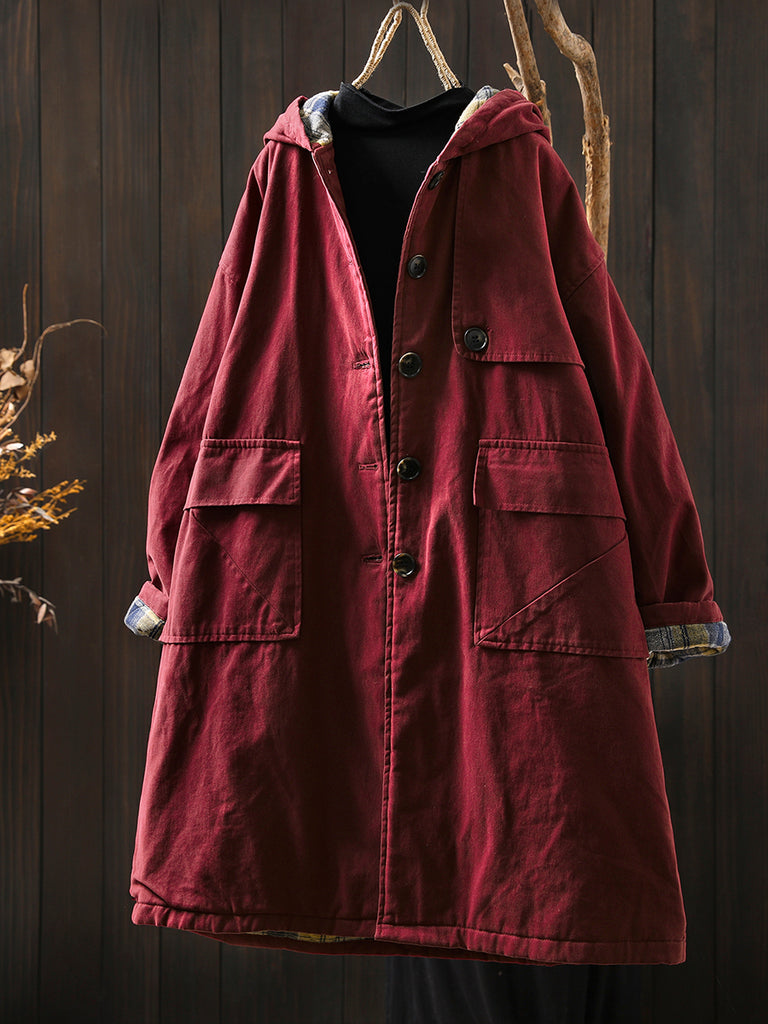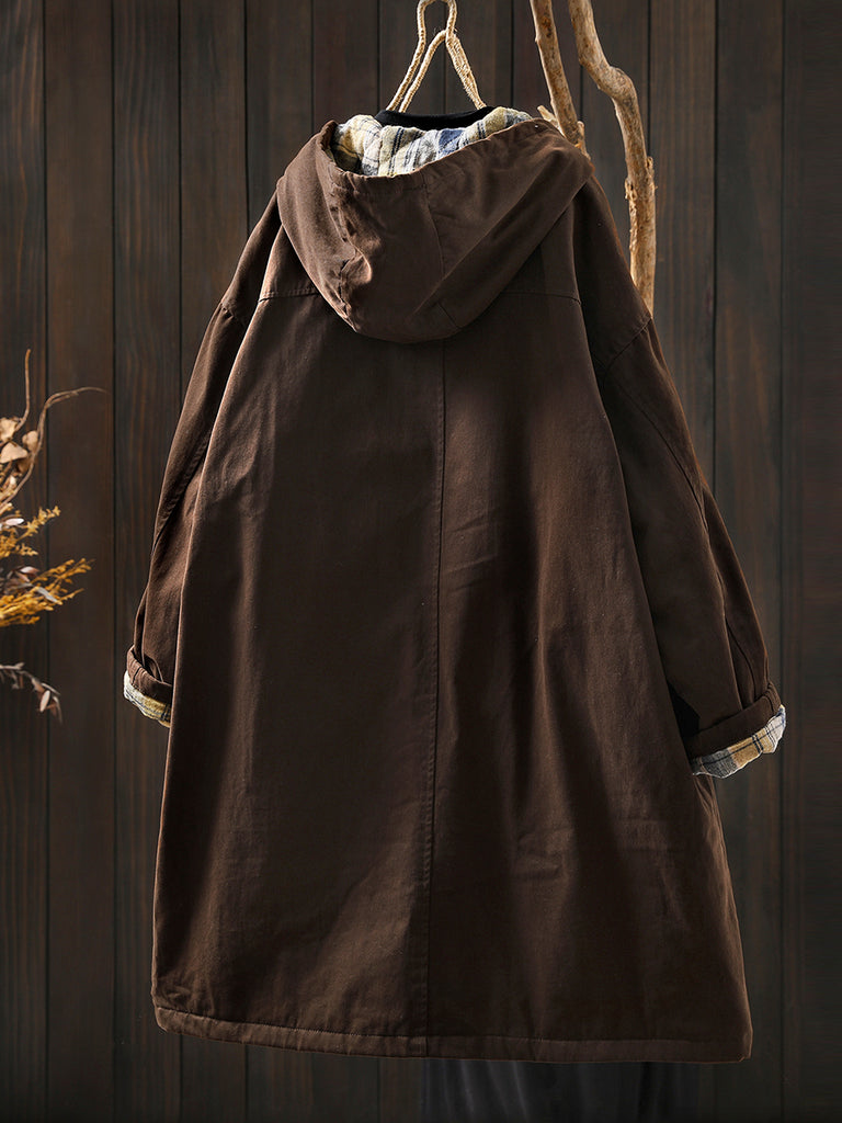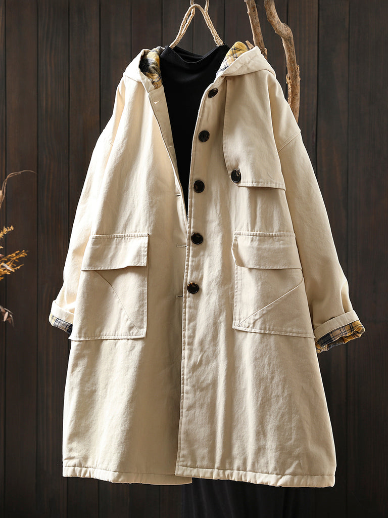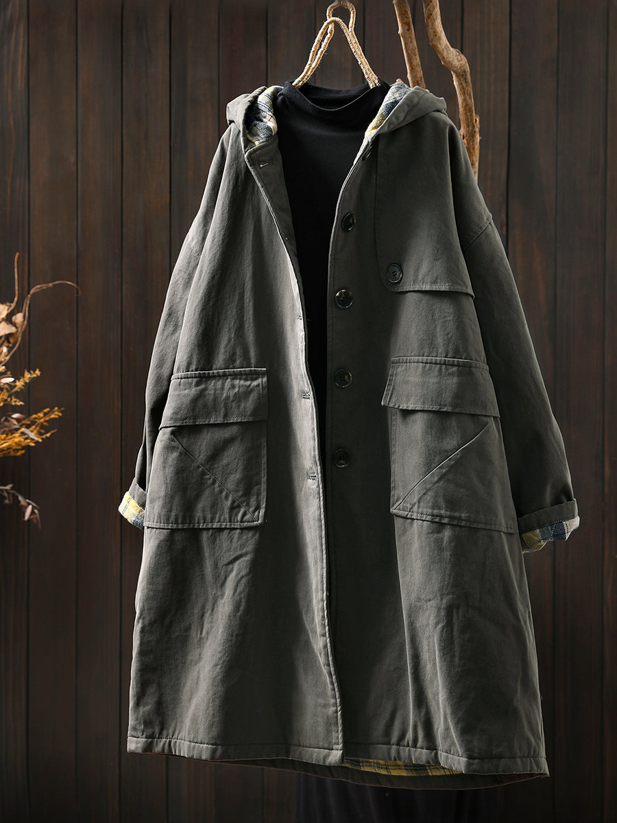 レディース 秋 ヴィンテージ ピュアカラー コットン フード付きコート