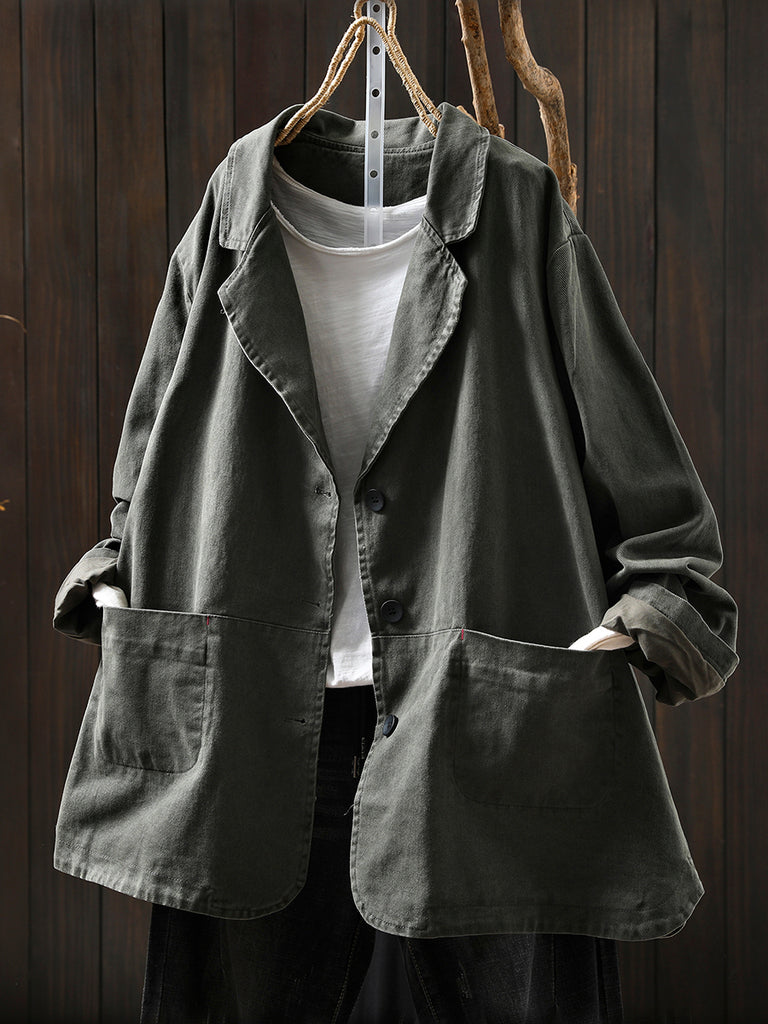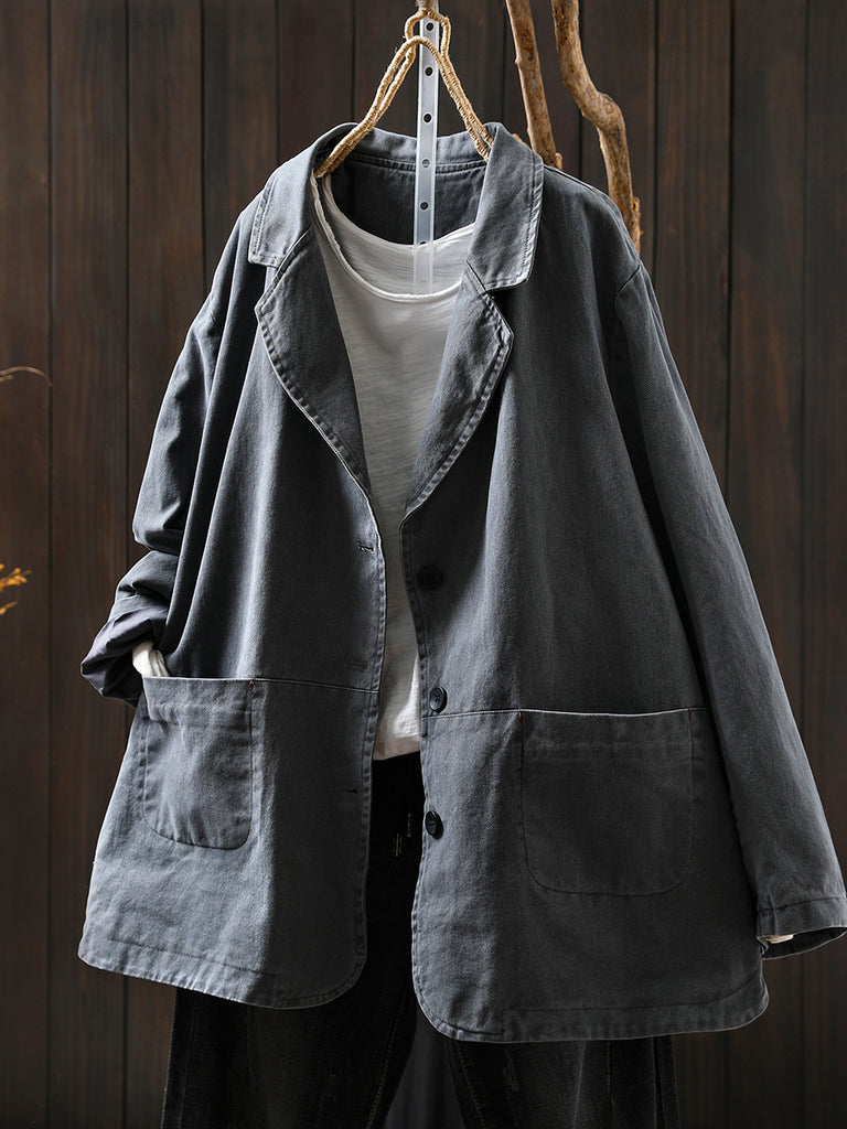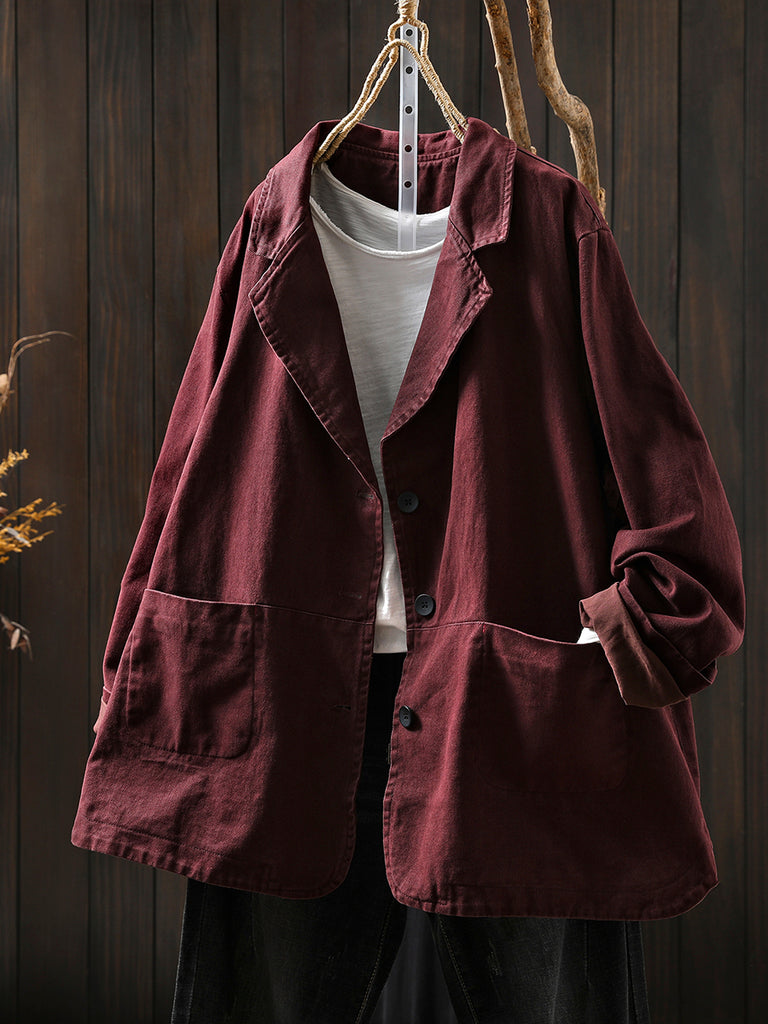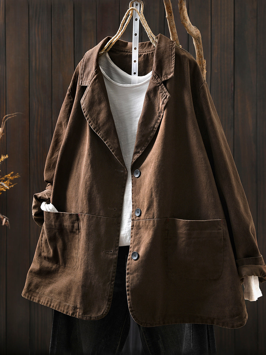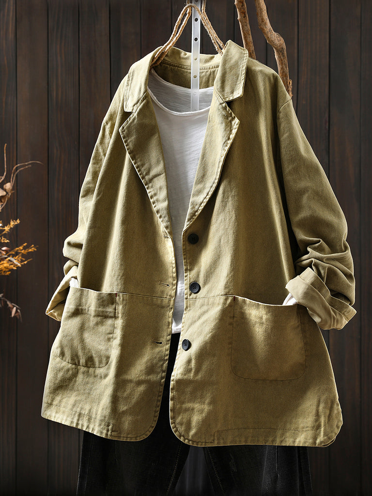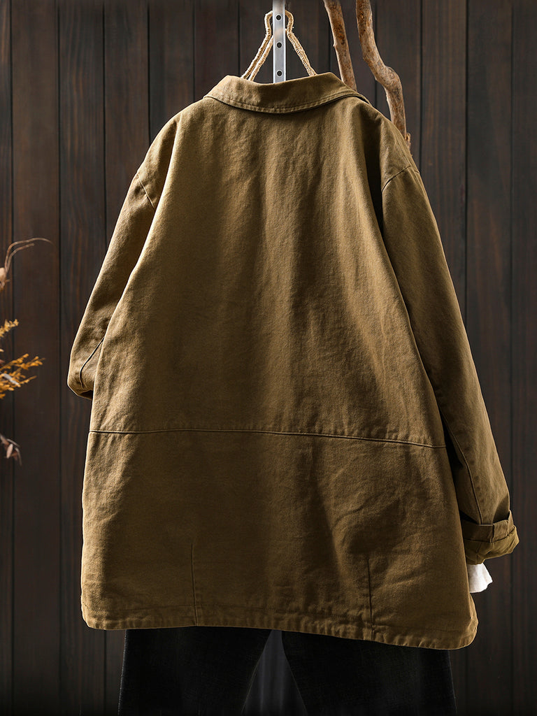 レディース 秋 ヴィンテージ ピュアカラー コットン ジャケット