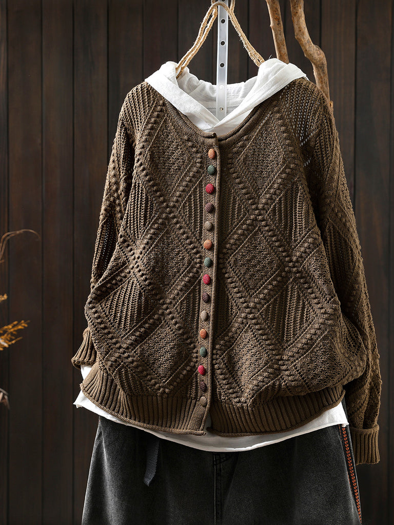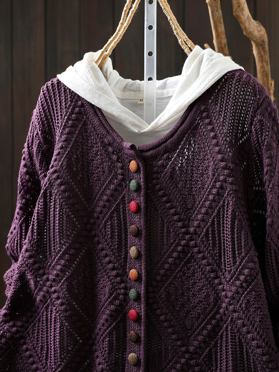 コットン45%、アクリル55%の混紡素材を使用したニットセーター。花柄とOネックが特徴です。アーティスティックなスタイルのラグランスリーブは、春と秋に最適です。