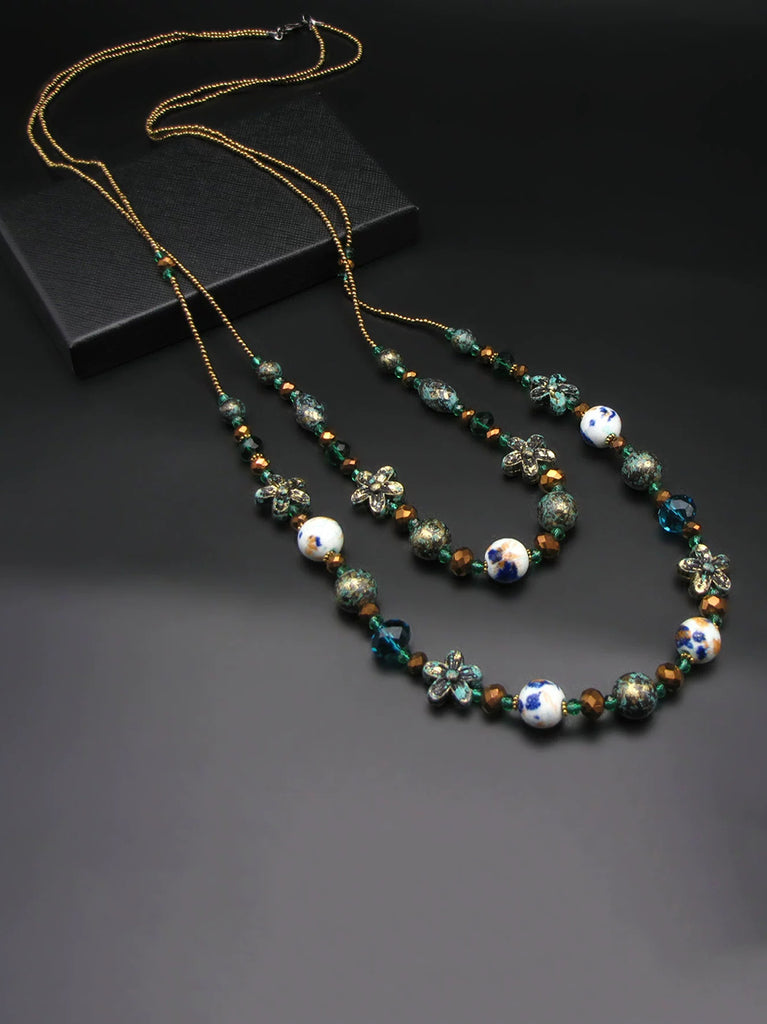 レディース ボヘミアビーズ セラミック織り セーターネックレス