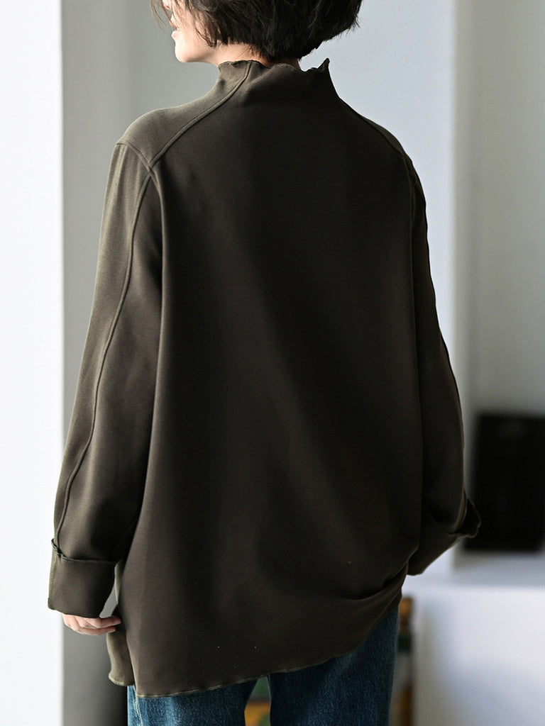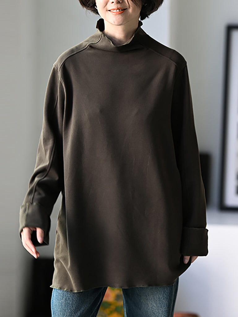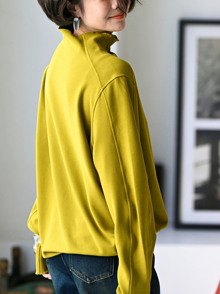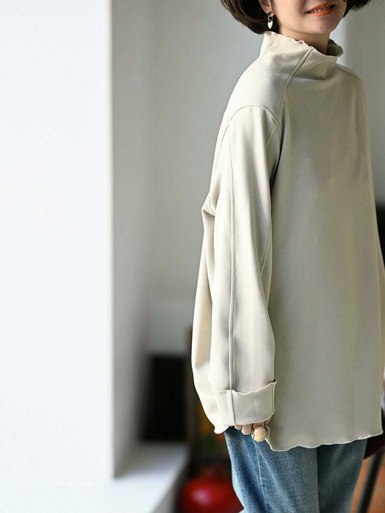 レディースカジュアル秋ピュアカラータートルネックブラウス