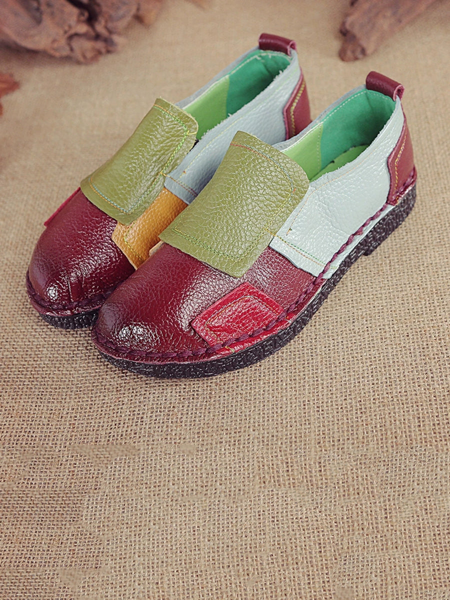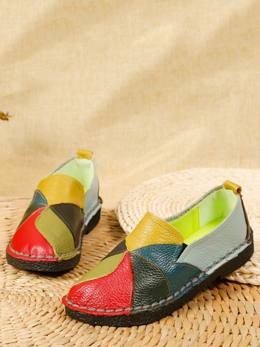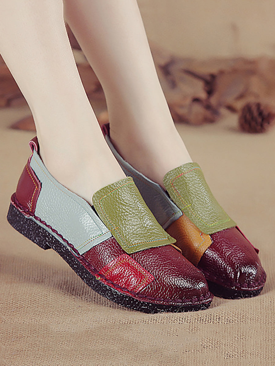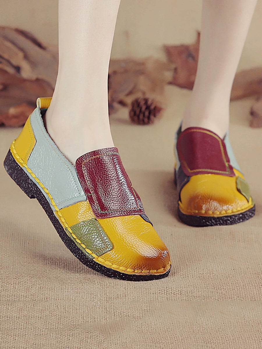 レディース カジュアル カラーブロック レザー フラットシューズ