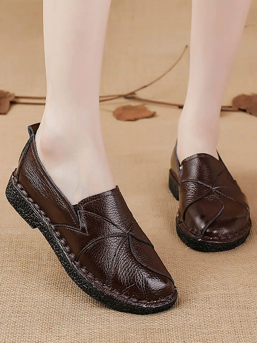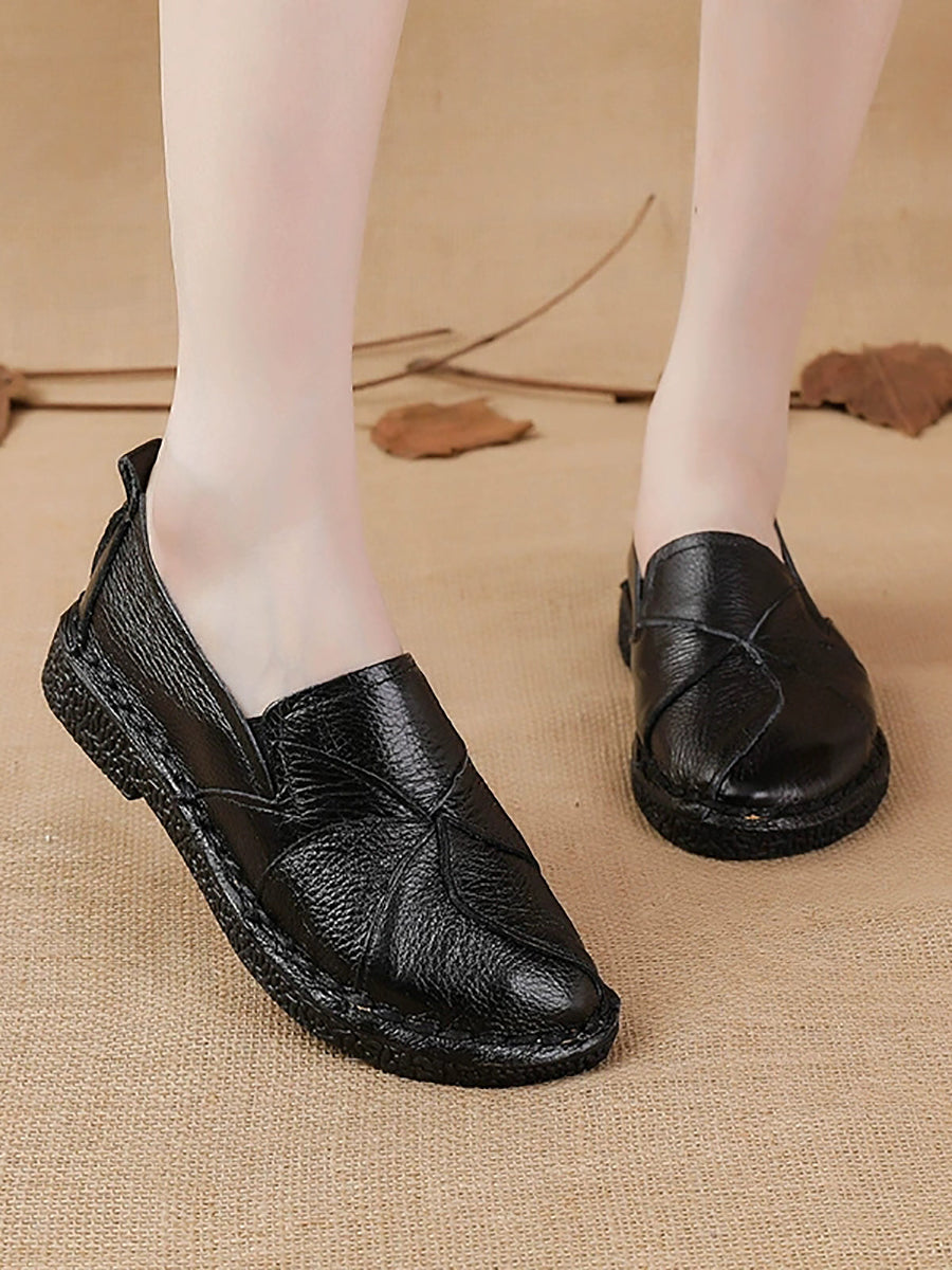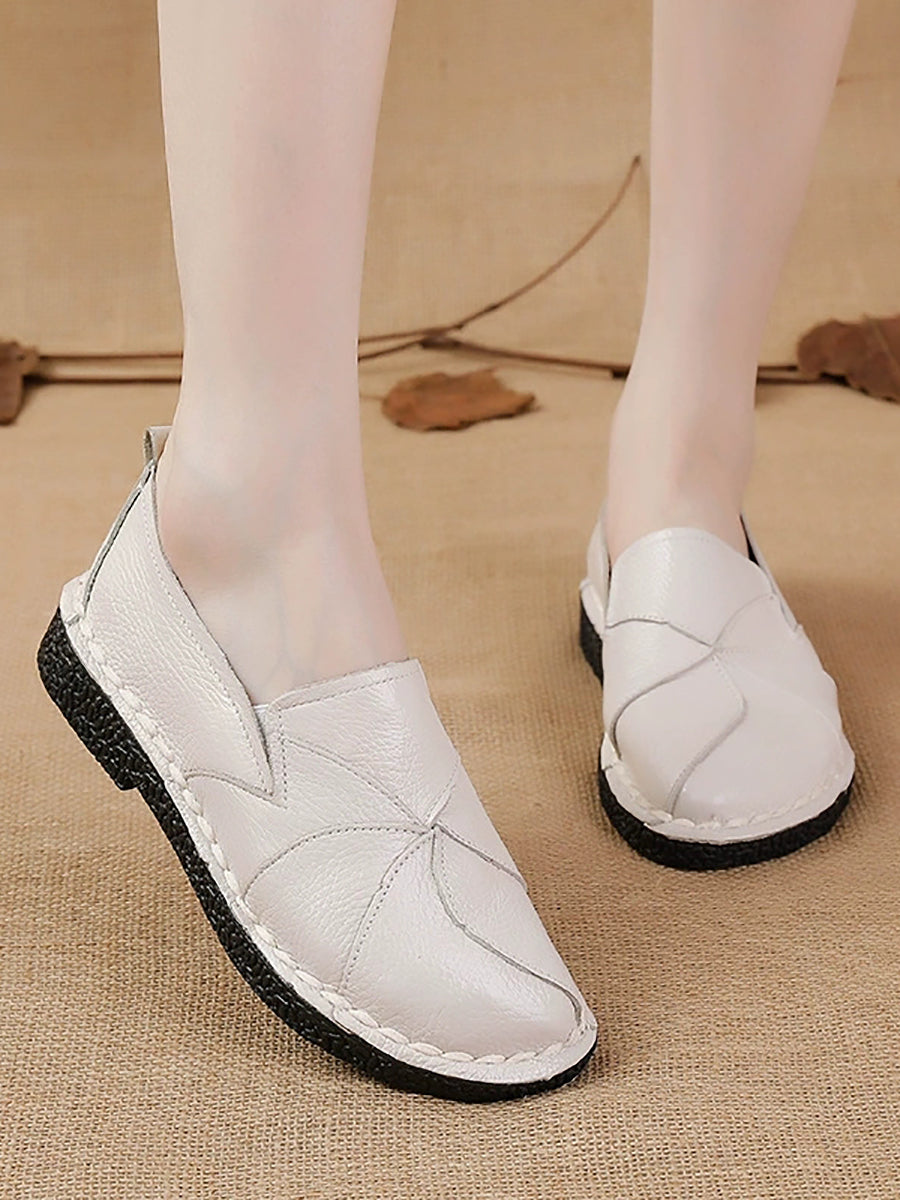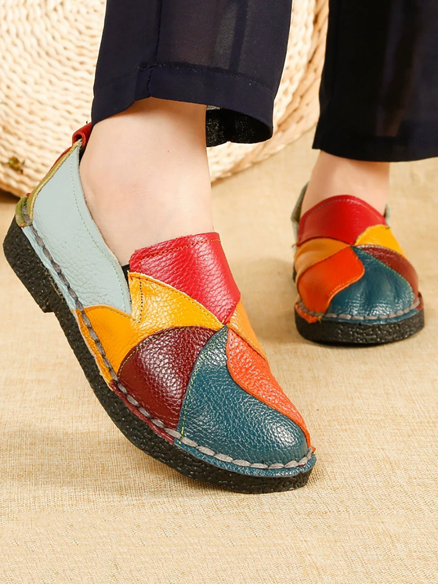 レディース カジュアル カラーブロック レザー フラットシューズ