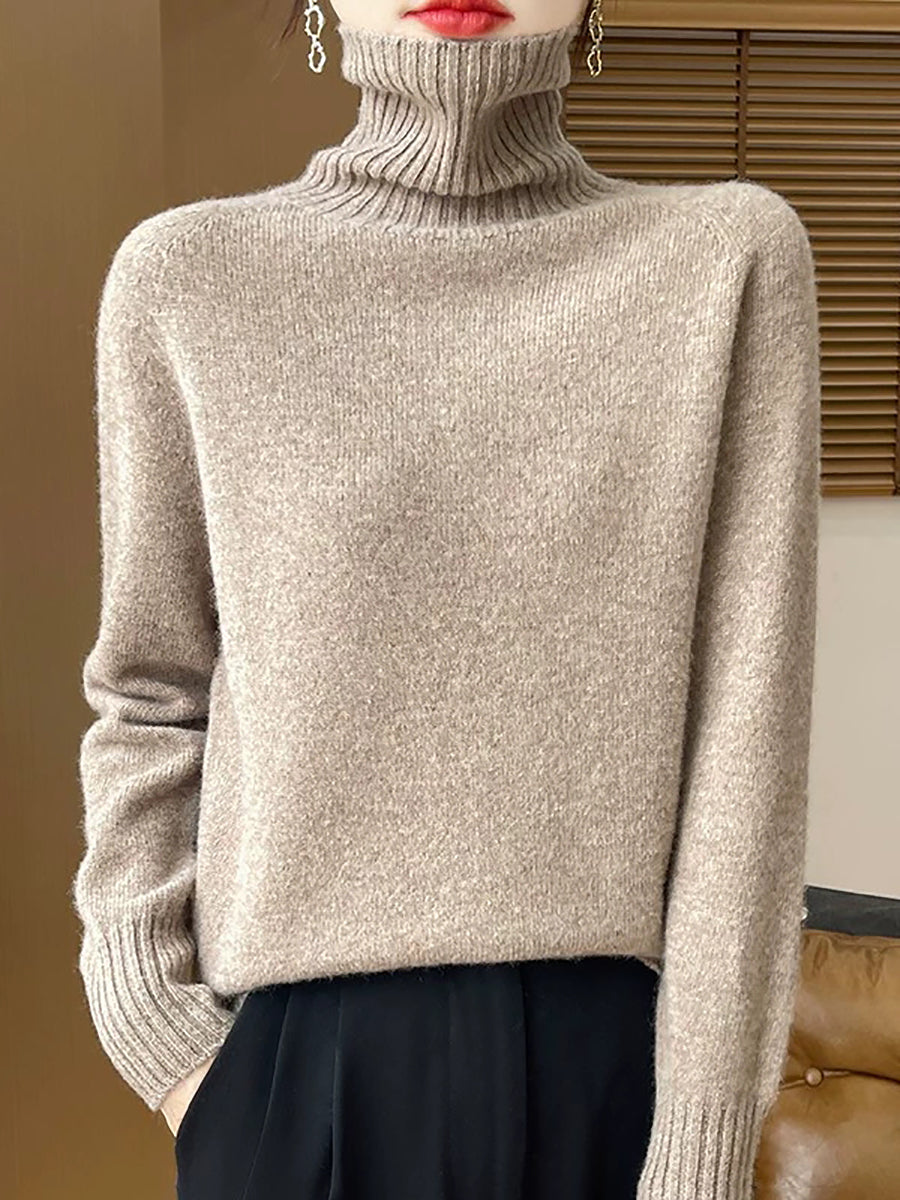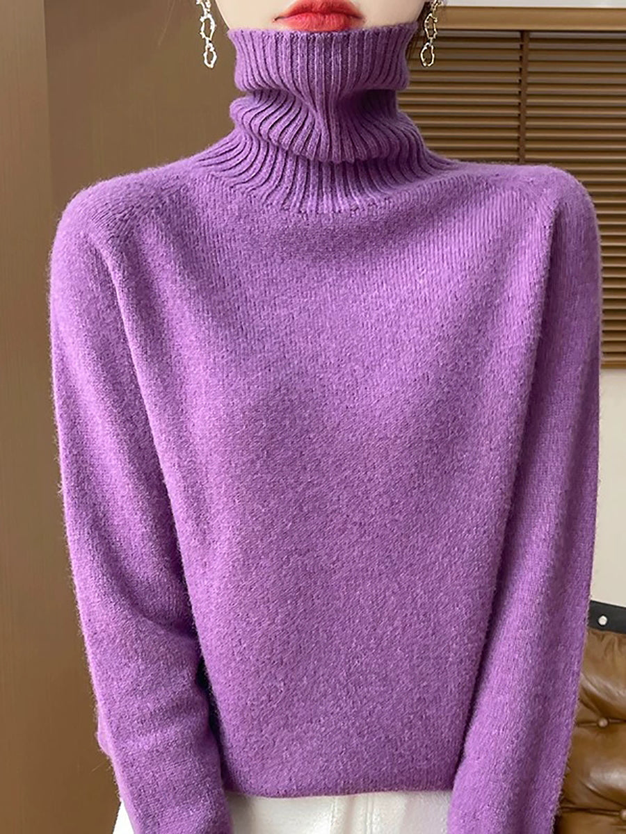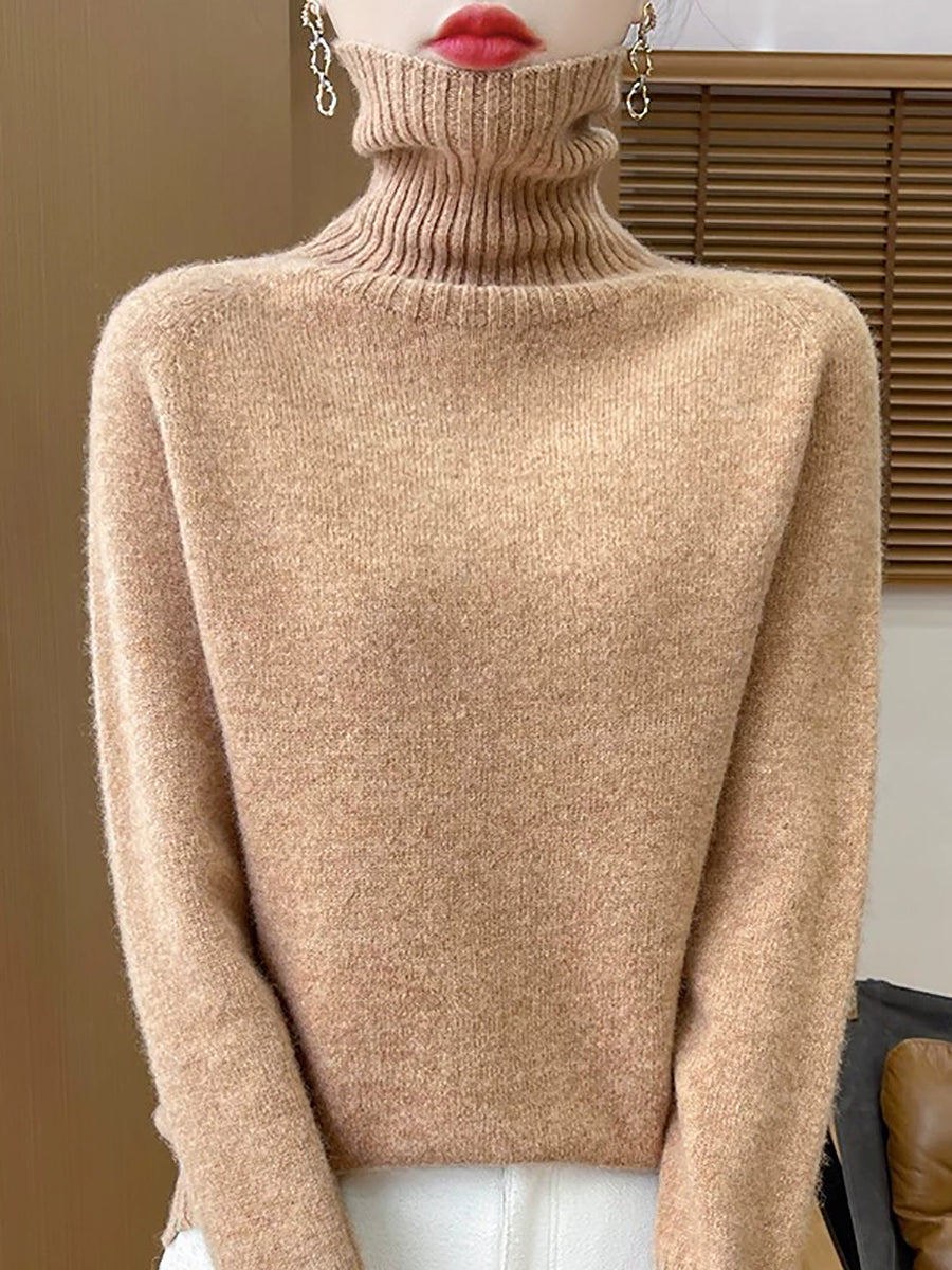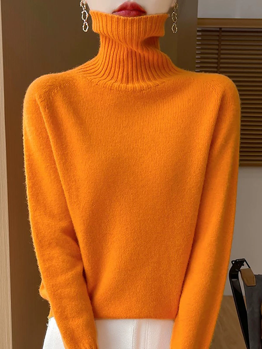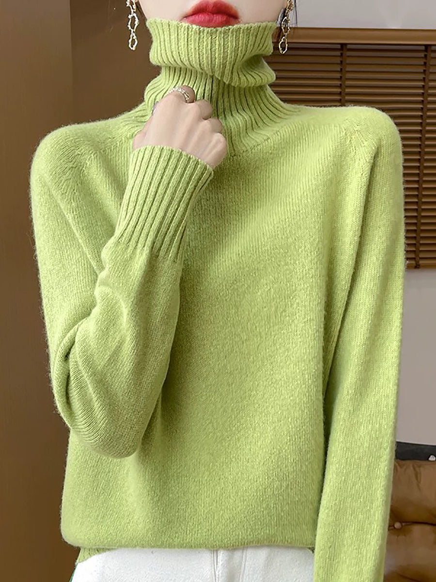 レディース カジュアル 春 ピュアカラー タートルネック セーター