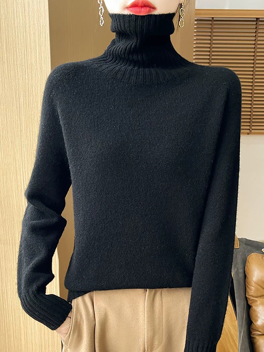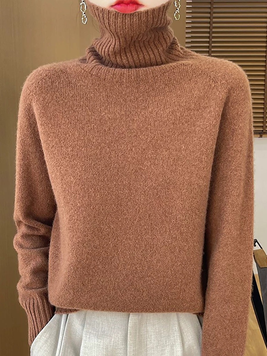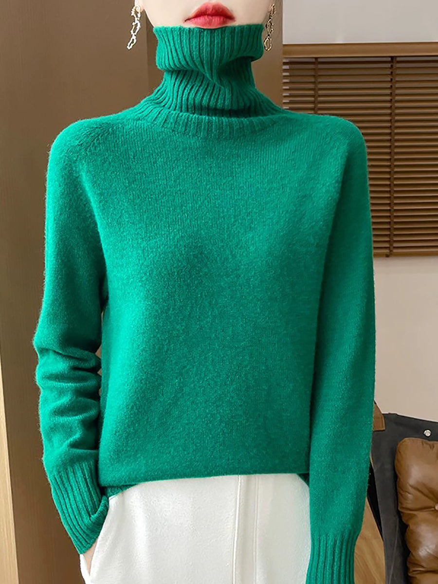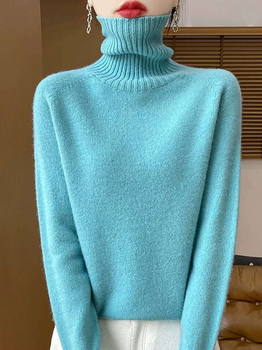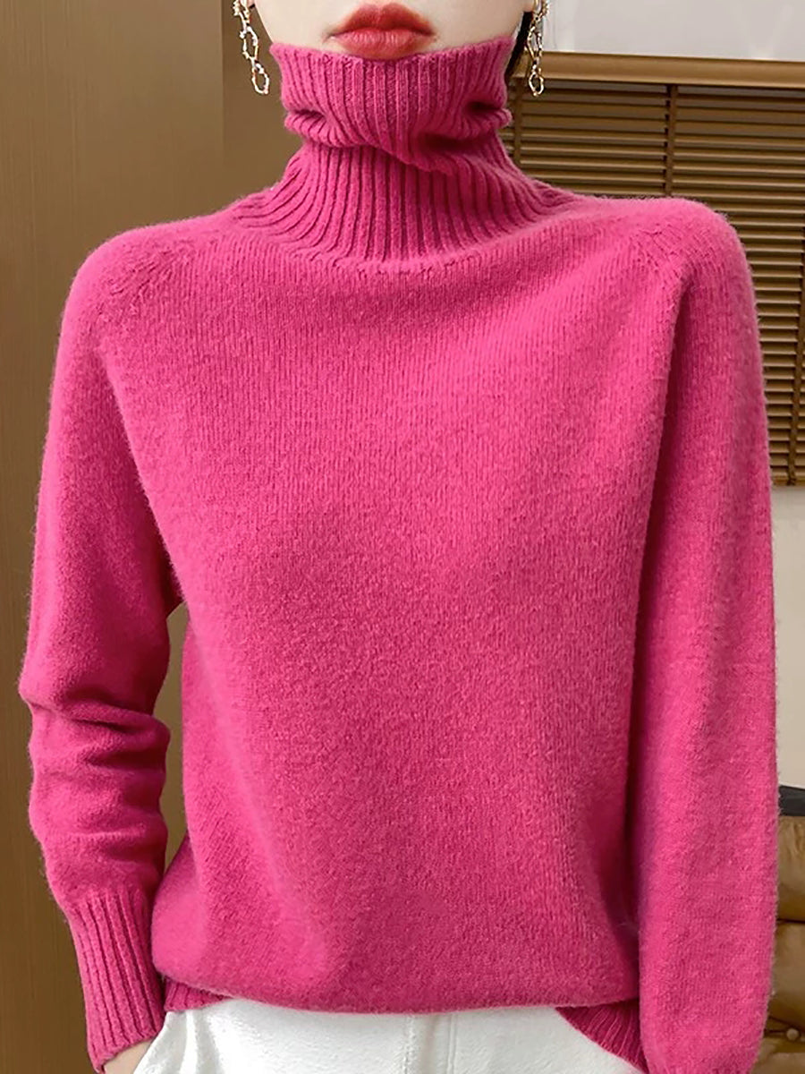 レディース カジュアル 春 ピュアカラー タートルネック セーター