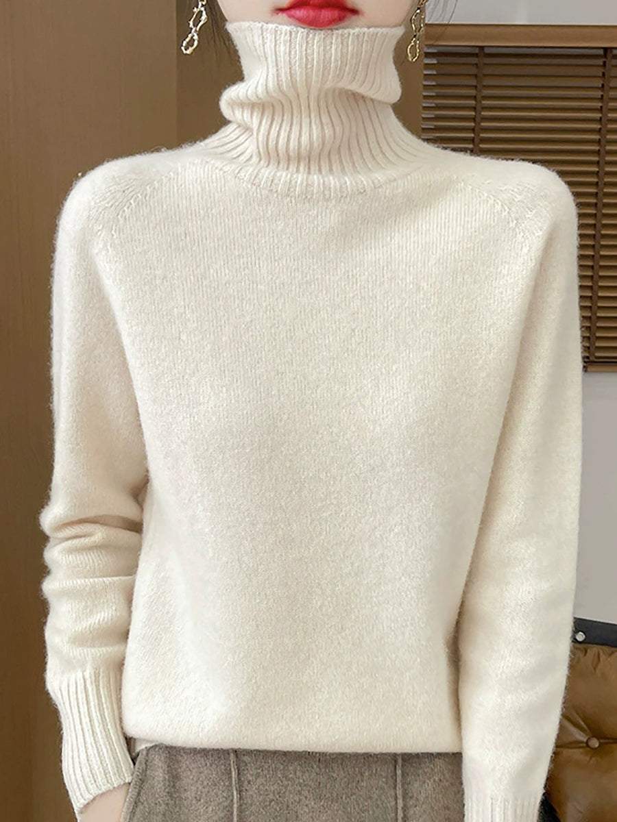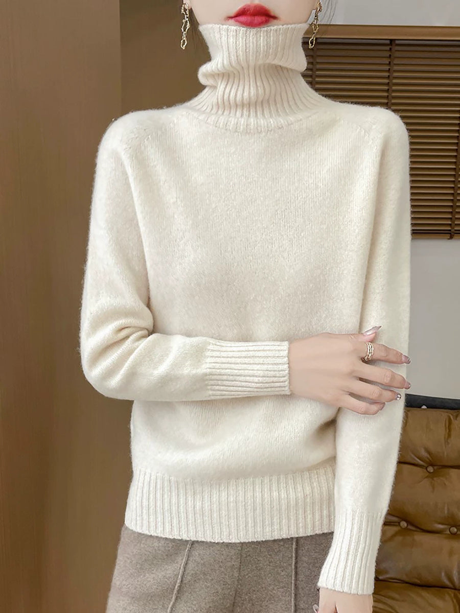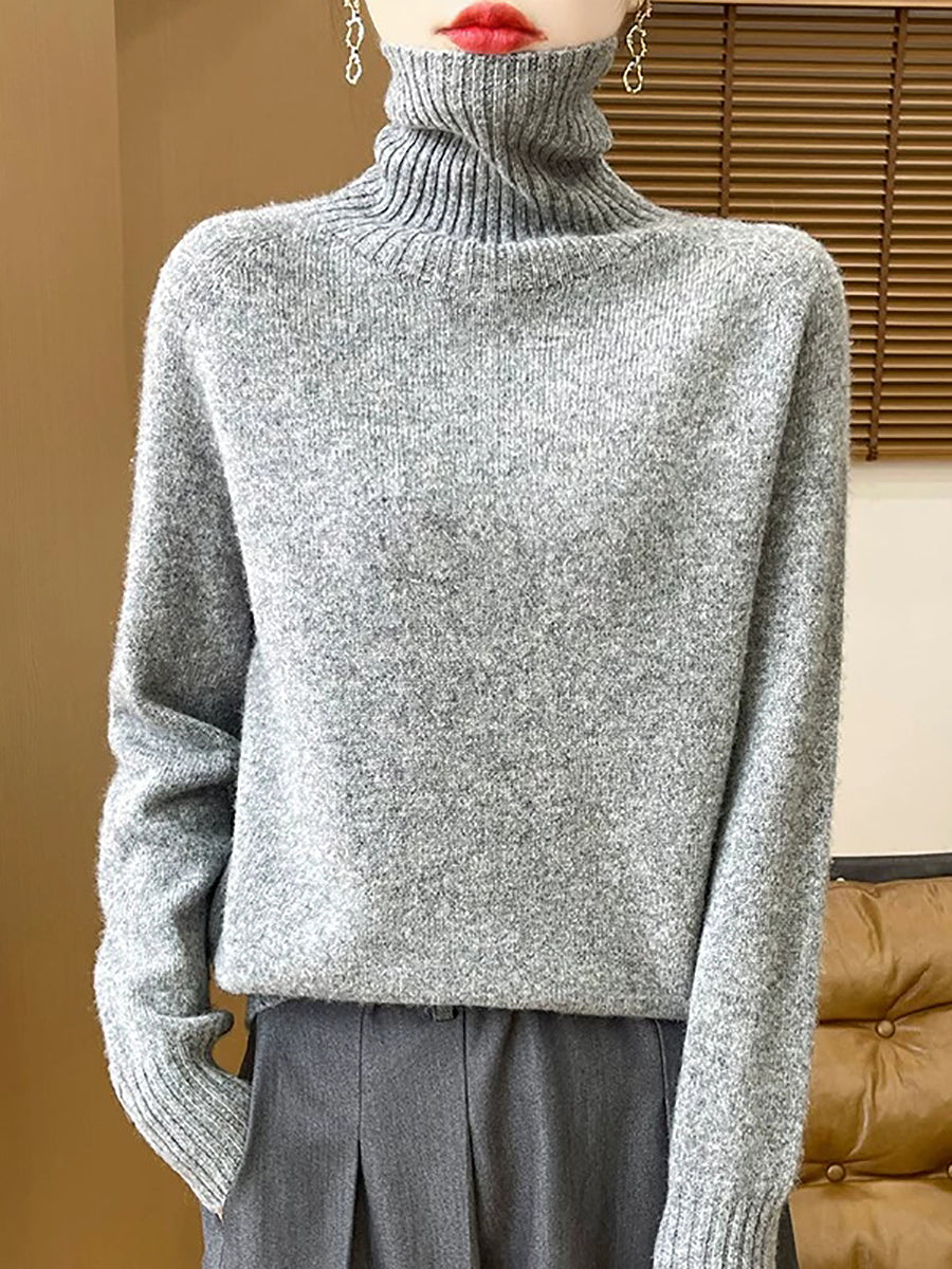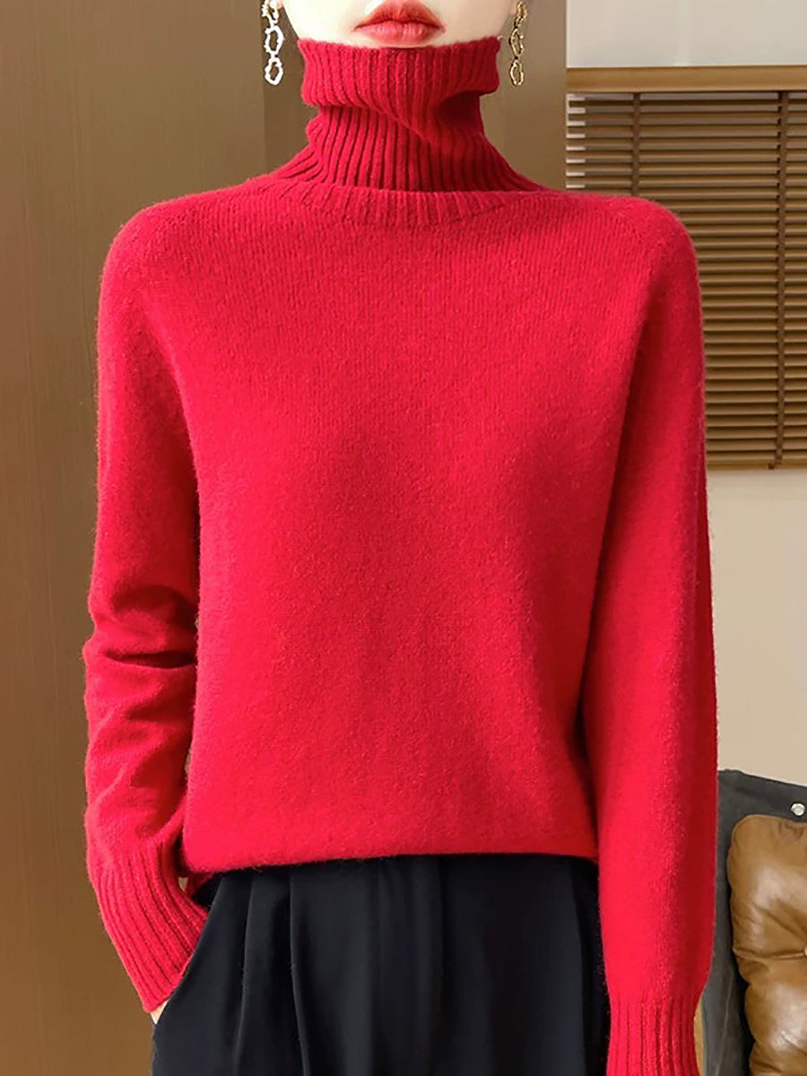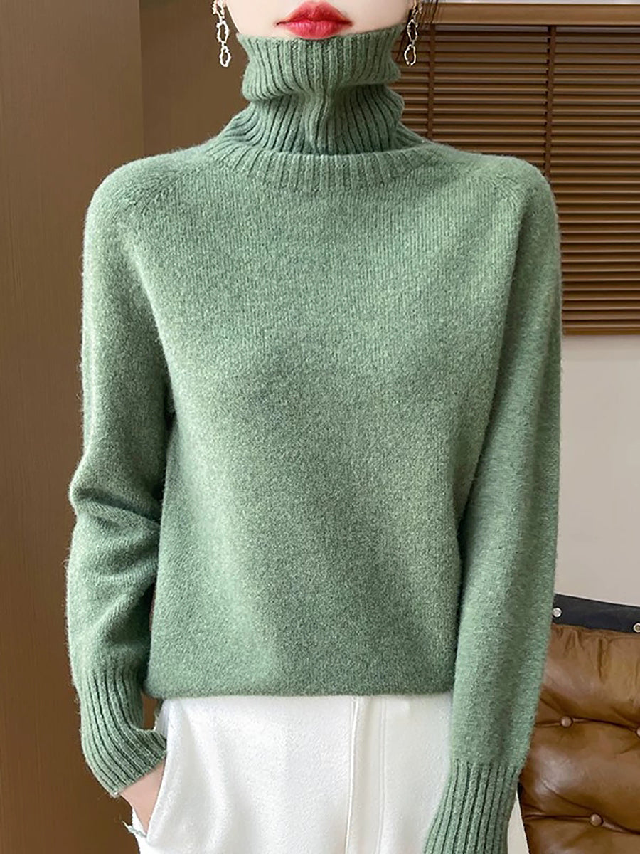 レディース カジュアル 春 ピュアカラー タートルネック セーター
