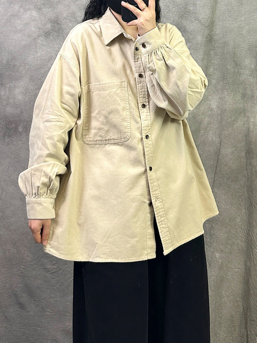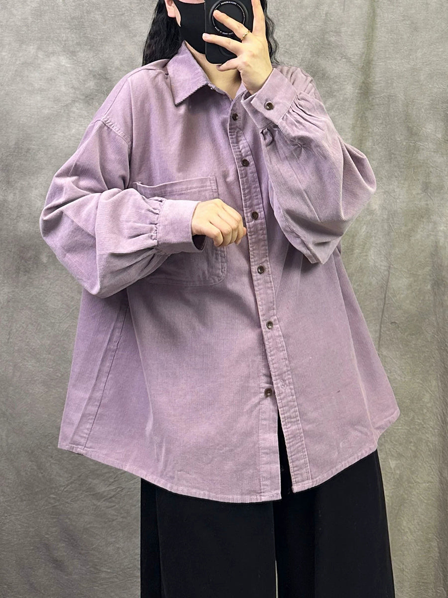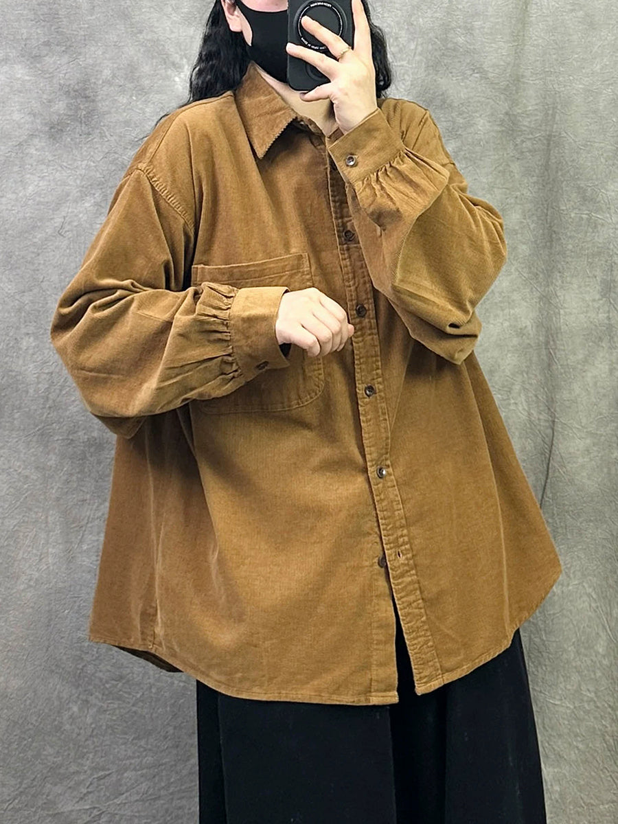 レディース レトロ 春 ピュアカラー コーデュロイ シャツ