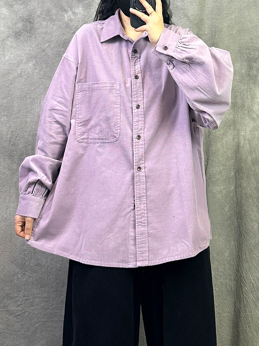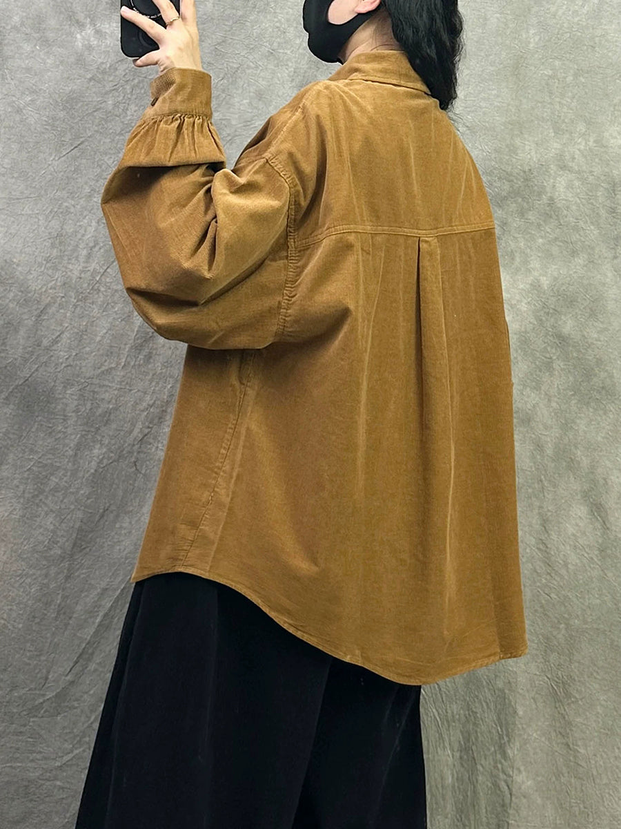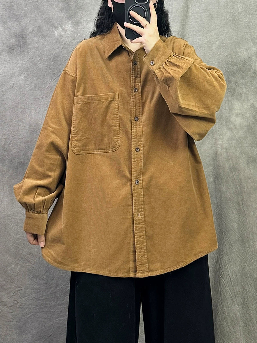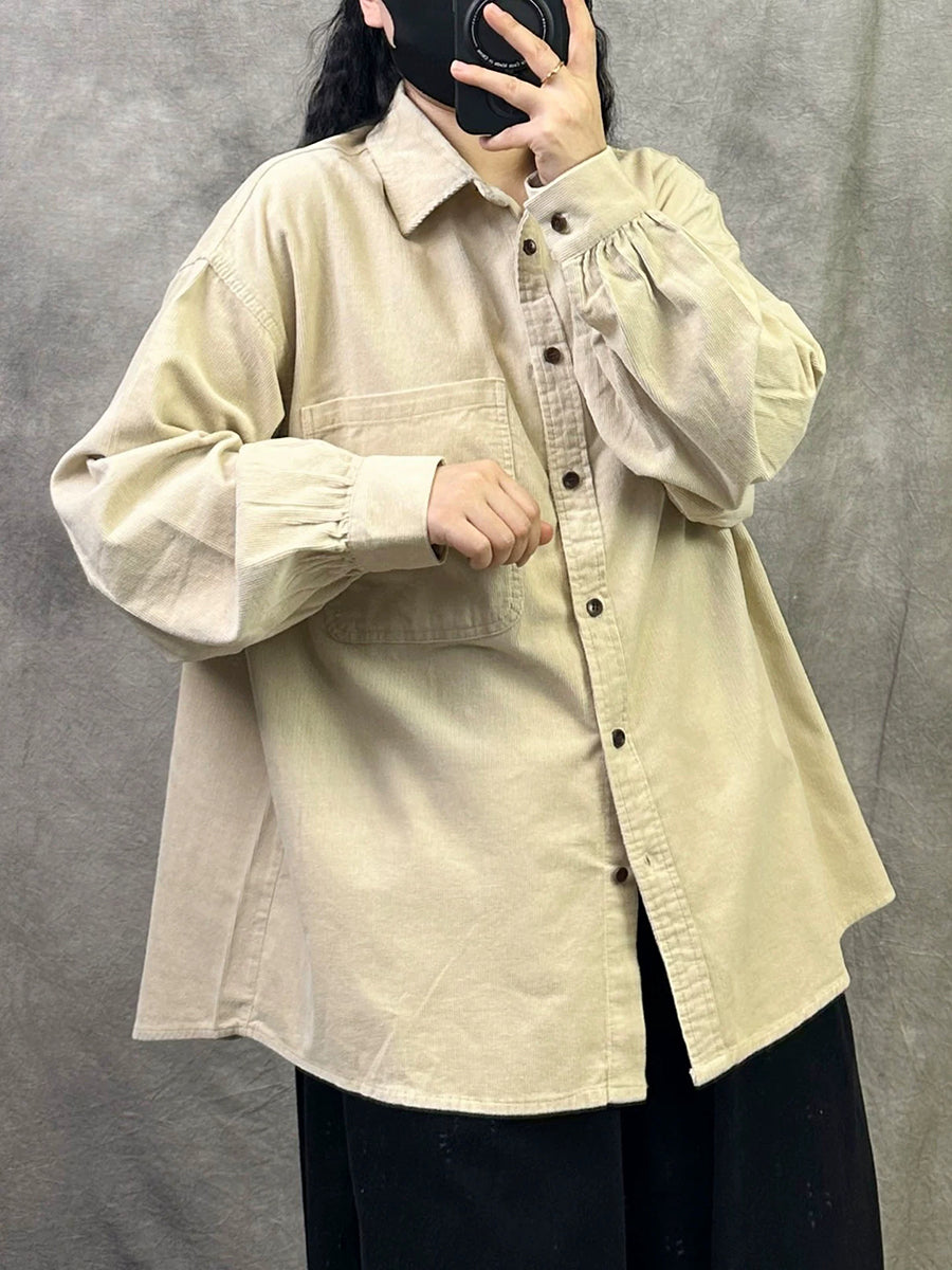 レディース レトロ 春 ピュアカラー コーデュロイ シャツ