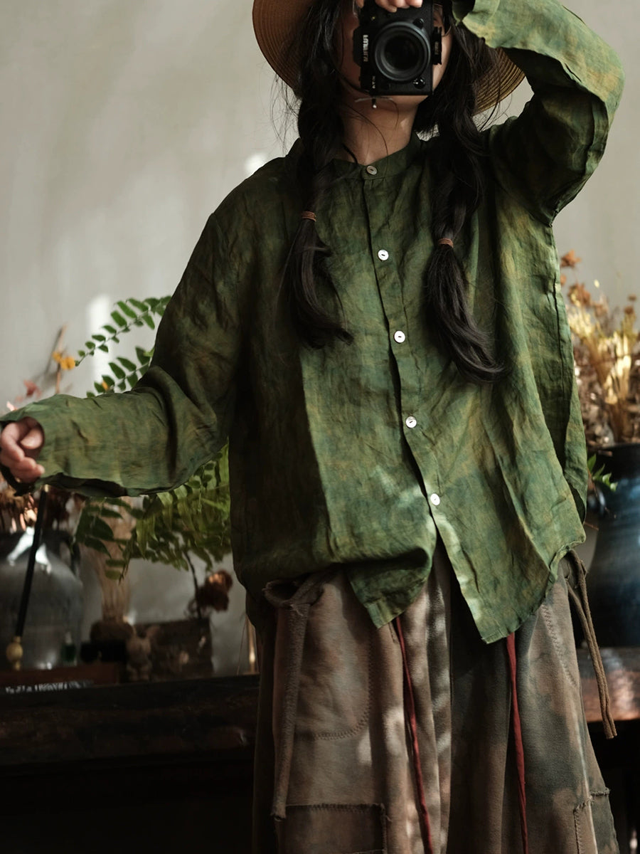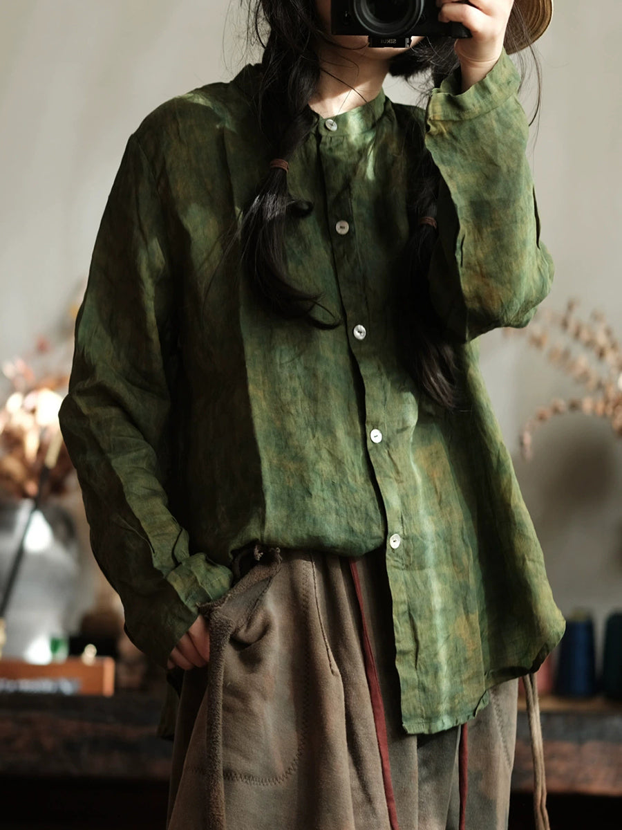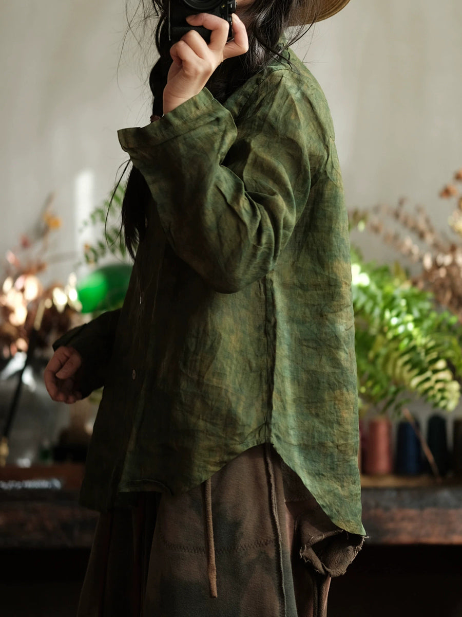 レディース レトロ スプリング タイダイ ラミー シャツ