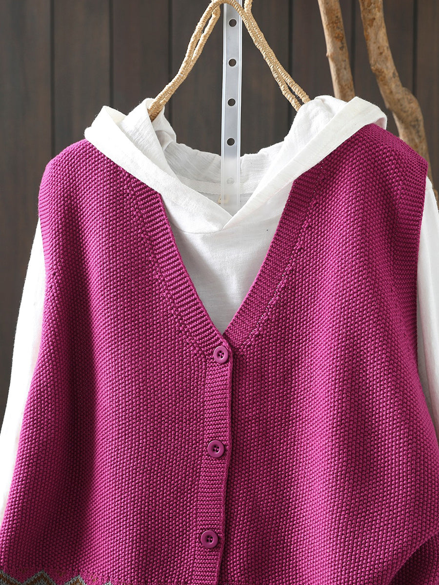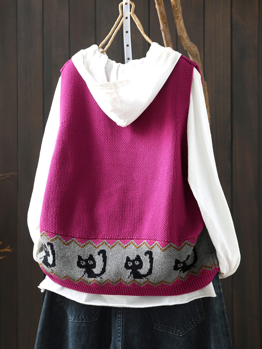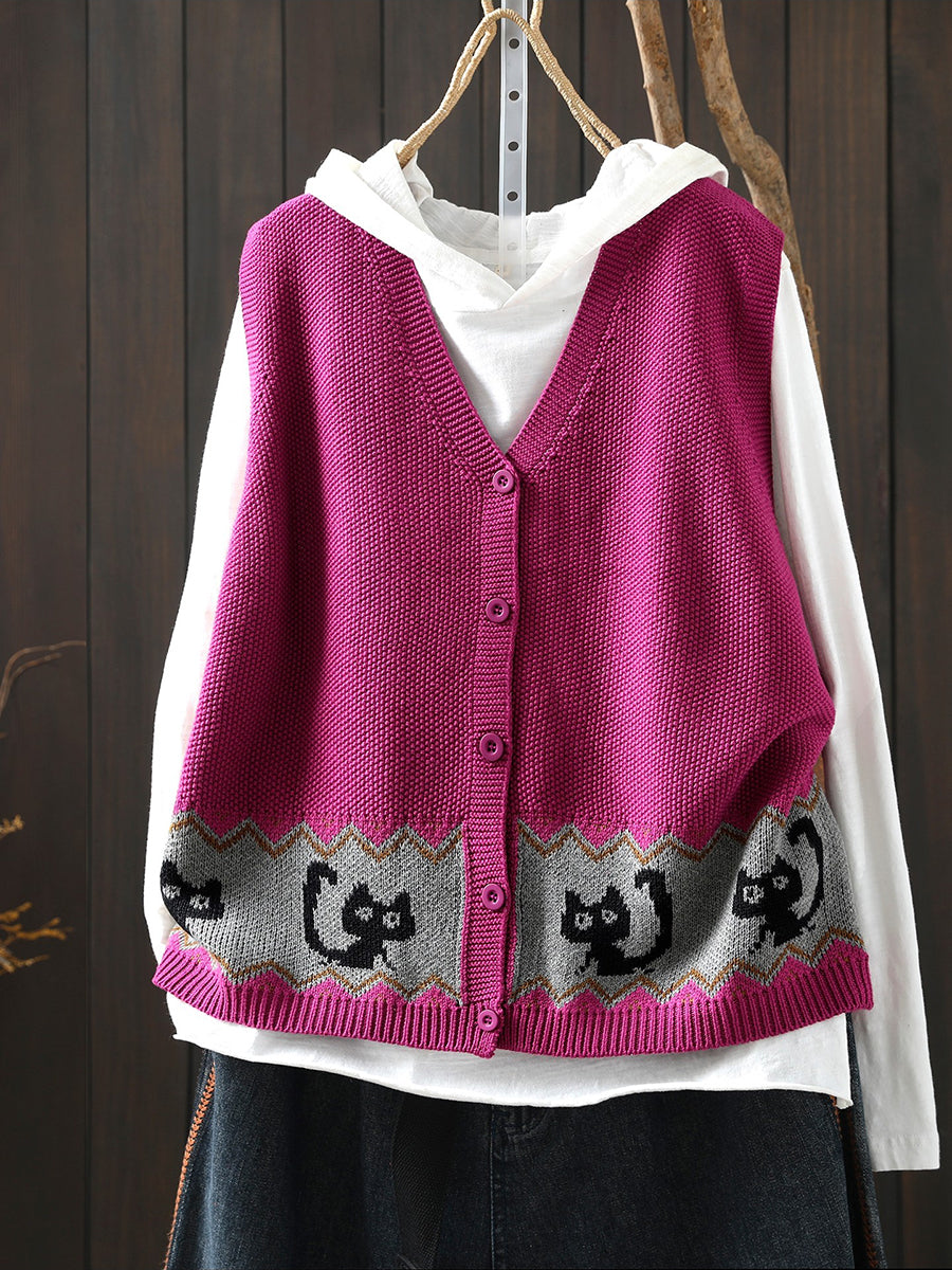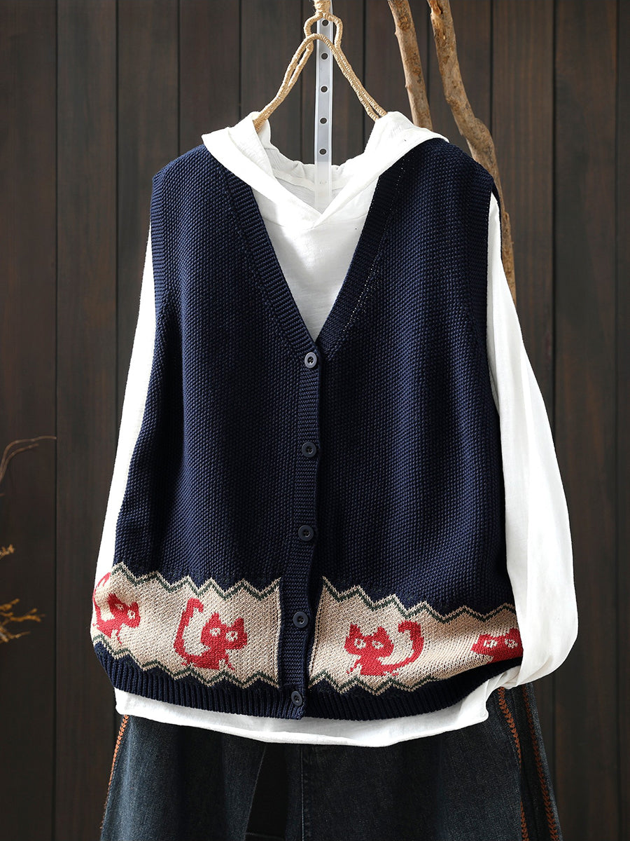 レディース 春 アーティスティック キャット ニット Vネック ベスト