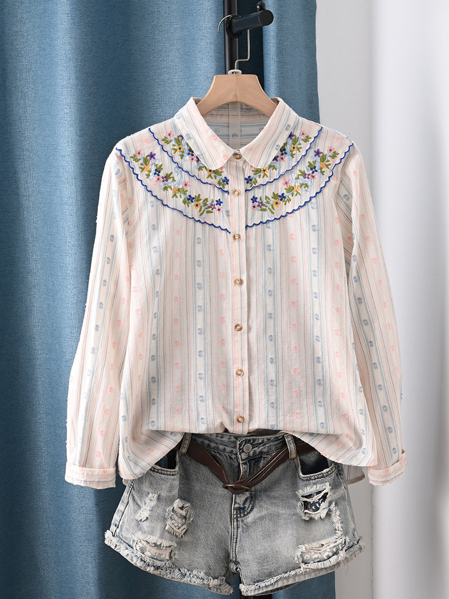 レディース 春 アーティスティック 刺繍 100%コットン シャツ