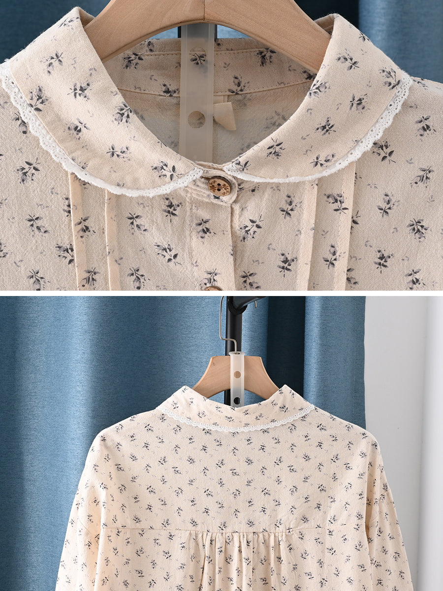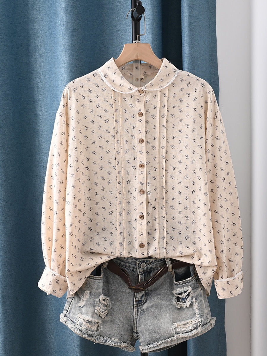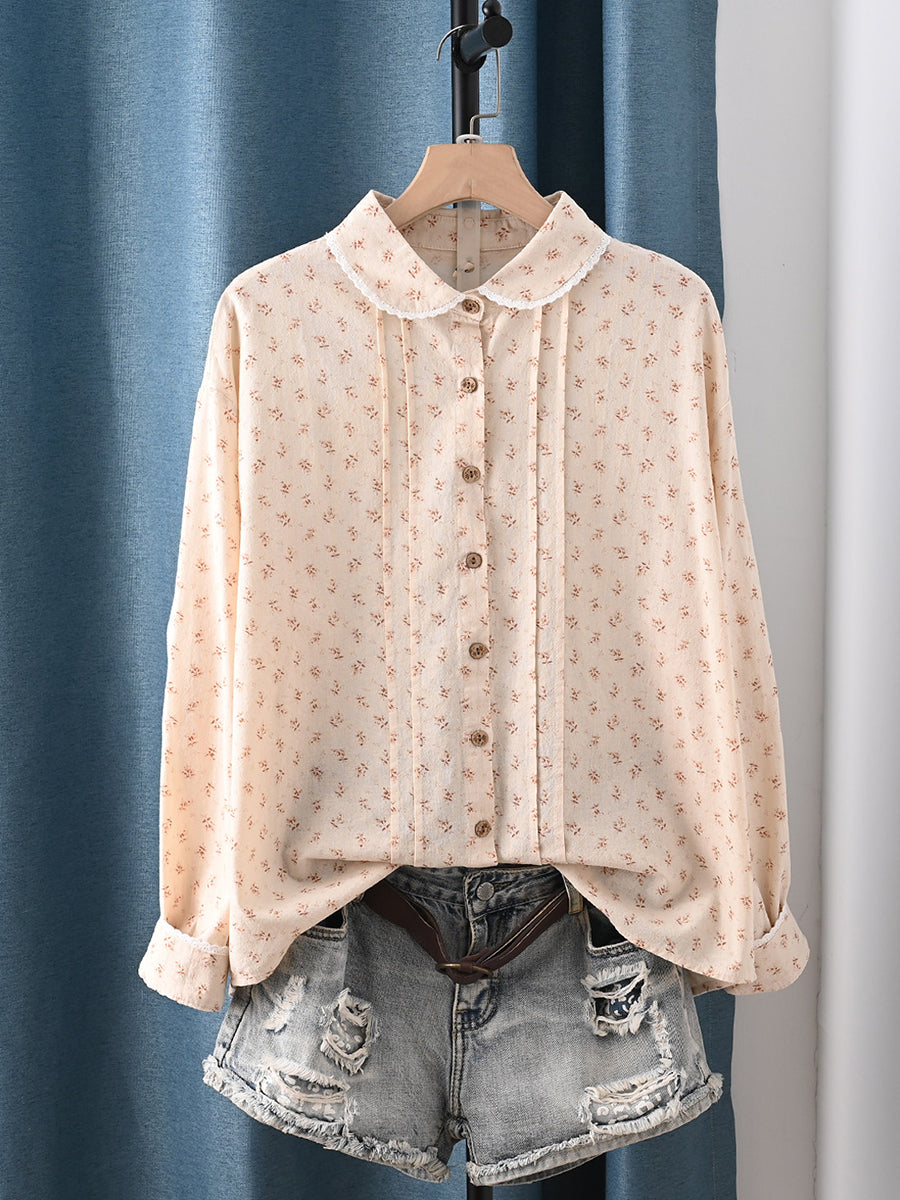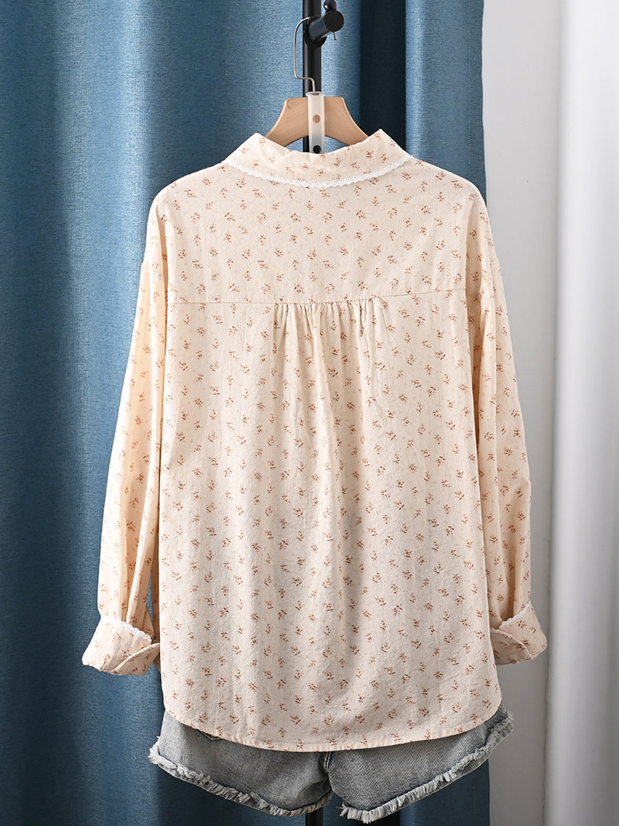 レディース 春 アーティスティック 花柄 100%コットン ターンダウンカラーシャツ