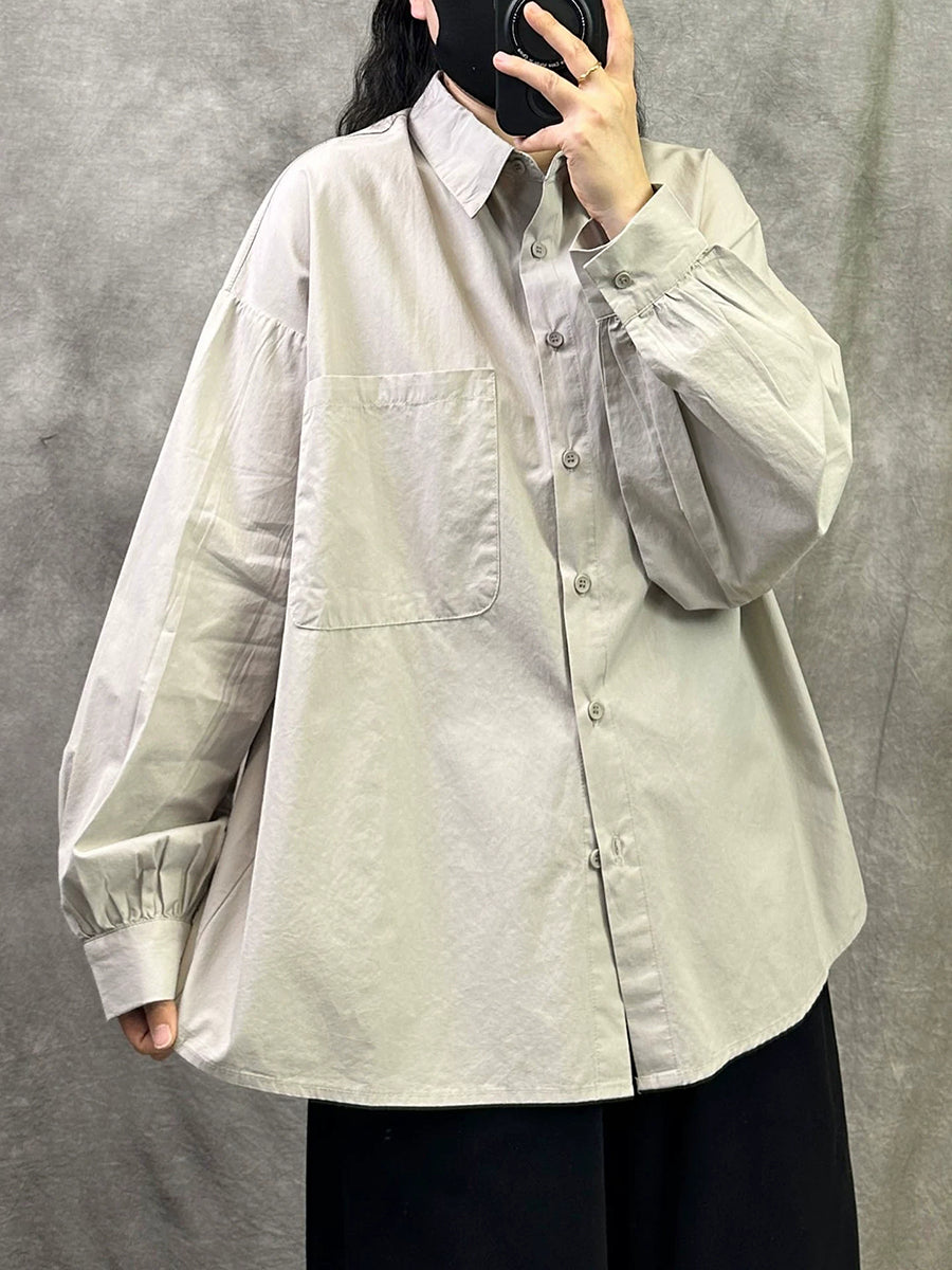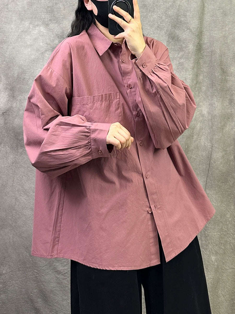 レディース 春 アーティスティック ピュアカラー コットンシャツ