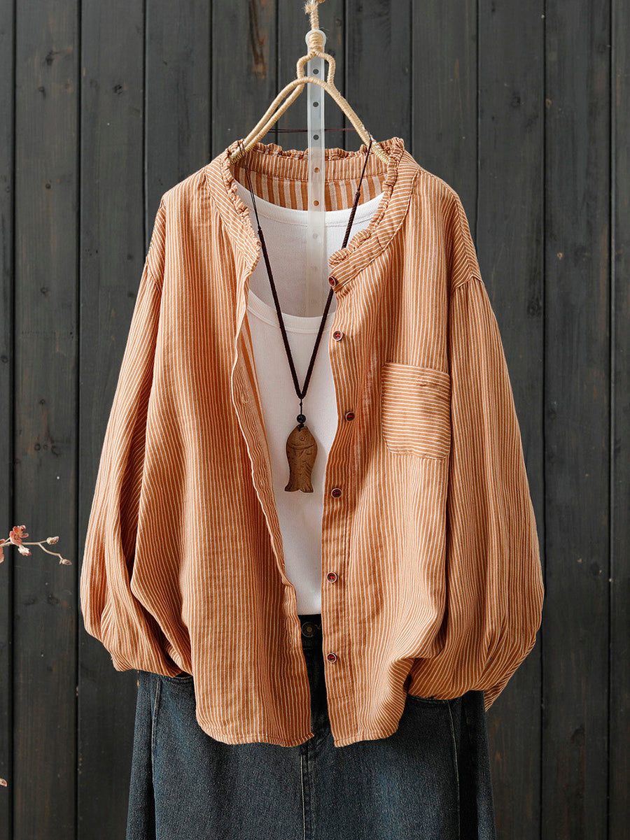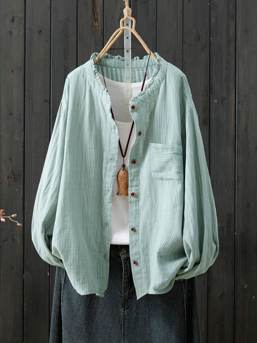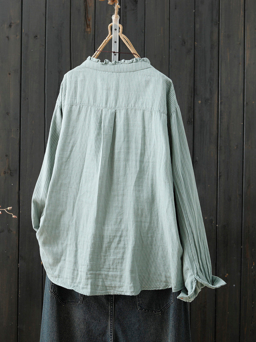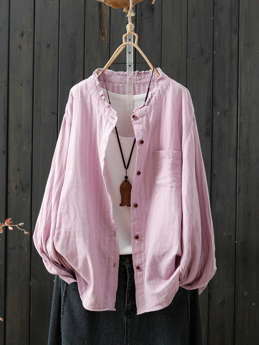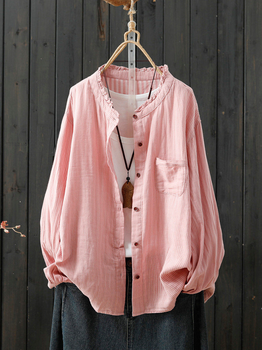 レディース 春 アーティスティック ストライプ 100%コットンシャツ