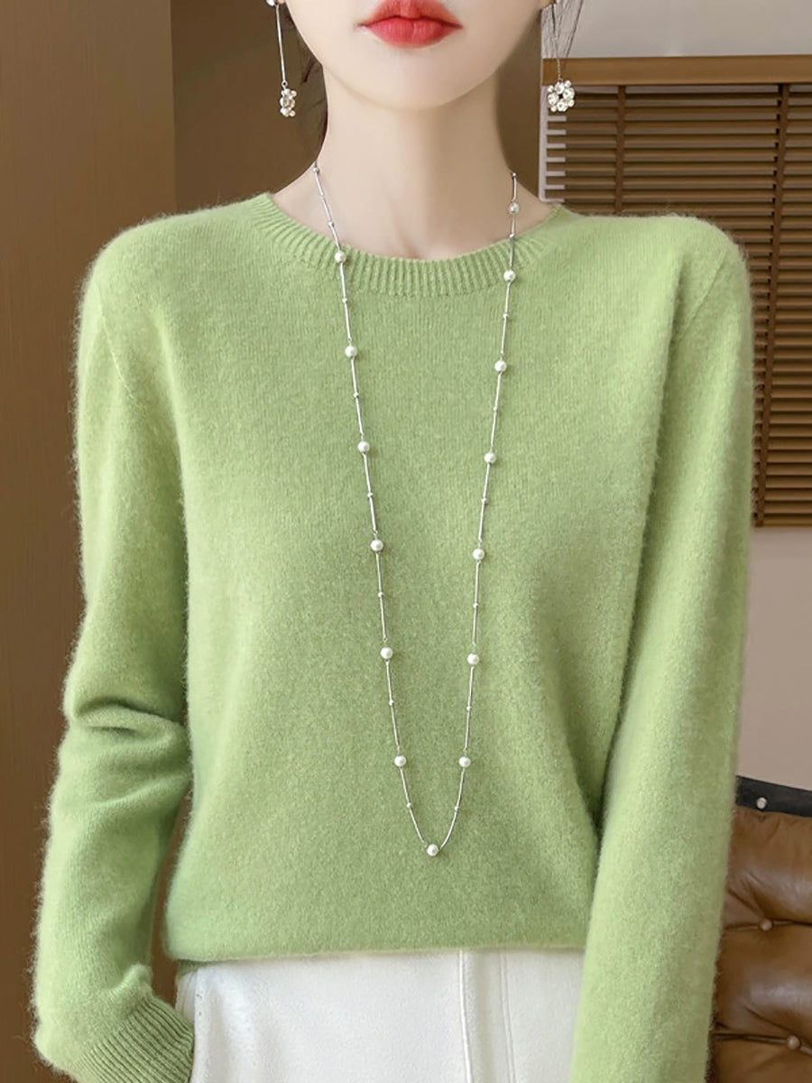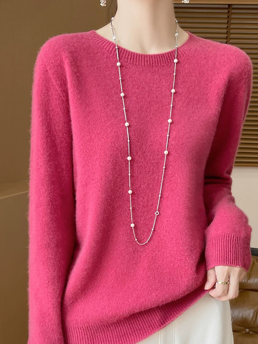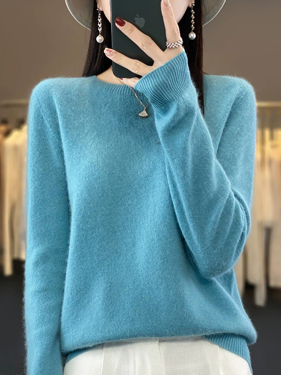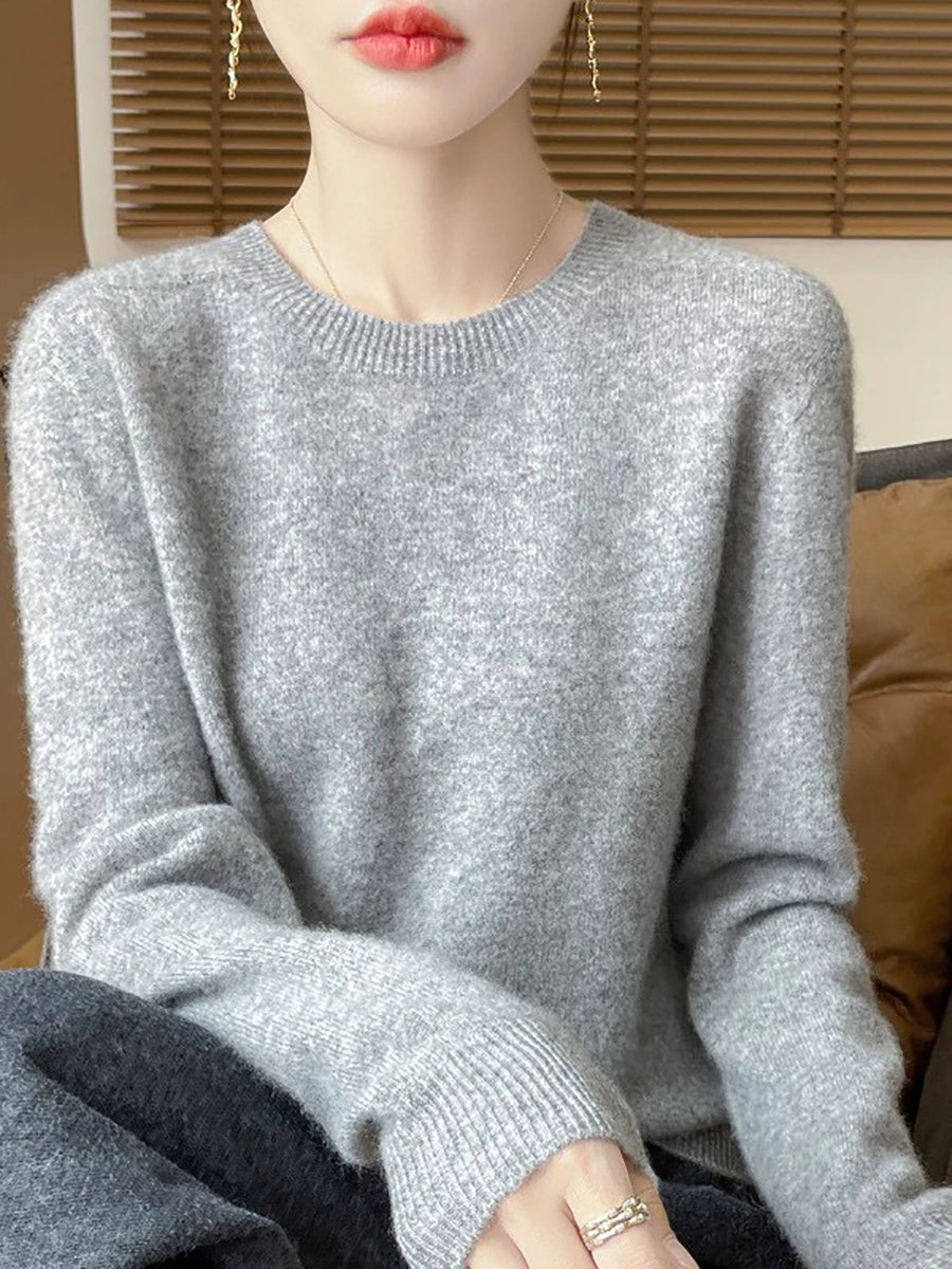 レディース 春 カジュアル ピュアカラー Oネック セーター
